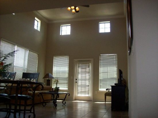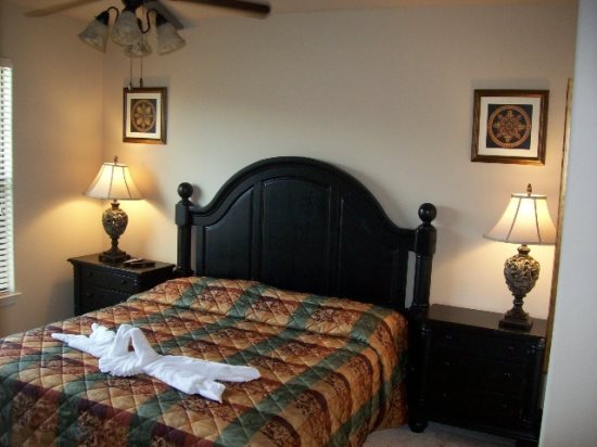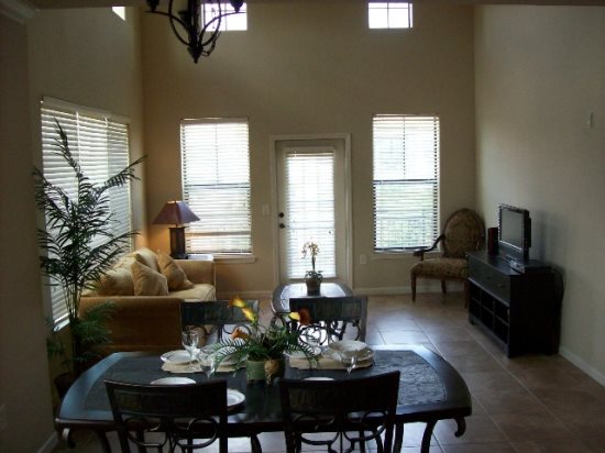 Enjoy this Beautiful third floor unit with Vaulted ceiling. Very limited number of units with vaulted ceiling and wrap around balcony. This beautiful condo offers 2 master bedrooms.The first bedroom has a King size with a Flat Screen TV and cable service. The second room has a Queen size bed and the third room has 2 Twin size beds. The kitchen has been fully supplied with all items required to cook meals during your stay. There are several restaurants in the area if you choose to go out for the night. All appliances are included; washer, dryer, stove, oven, refrigerator, dishwasher and also small appliances like toaster, blender, kettle, can opener, flat iron and more items to accommodate your needs. Bella Piazza offers excellent amenities for every family!! The pool and water play ground for the kids are perfect for the adults and little ones looking to have fun. If you need to check your e-mail you can use the business center and if you like to keep in shape even during your vacation, you can use the fitness center. Take advantage of our concierge service program; we can have a grocery package placed at your villa prior arrival, deliver flowers to your significant other along with tons of other services.
