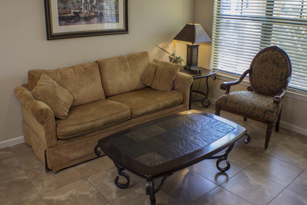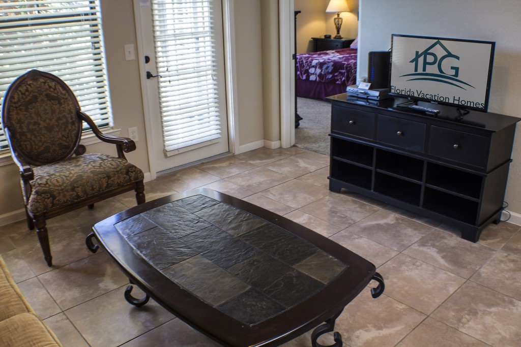 This 2 bedroom / 2 bathroom second-floor condo is located within the beautiful resort community of Bella Piazza. The condo is ideal for the discerning guest and is beautifully furnished and benefits further from having crown moulding throughout. It includes a fully-equipped kitchen with tiled floor and granite kitchen tops. There is even a granite bar top with 2 attractive bar stools, a formal dining area also tiled with seating for 4 and a tiled living room with ceiling fan with lights, a 26" flat-screen TV with DVD player, a coffee table, 3-seat sofa that can be used as a sofa bed and an easy chair with a side table as well. It even has a lovely view of the resort facilities. There is a covered patio area leading out from the living room with 2 upgraded chairs and a side table, which also has a great view of the resort facilities. The bedrooms consist of a master bedroom with king-size bed, ceiling fan with lights, 2 bedside tables with lamps, a chest of drawers, a 26" flat-screen TV, a closet with sliding mirrored doors and direct access to the covered patio. The master also has a gorgeous en-suite bathroom with tiled floor, an oval-shaped bath, a separate shower cubicle, toilet and his n' her vanities with marble tops. The second bedroom has a two twin beds, a ceiling fan with lights, dresser, 2 bedside tables and a closet with sliding mirrored doors. It also has an en-suite bathroom with bath with overhead shower, single vanity with marble top, toilet and tiled floor. There is also a closet with a washer and dryer for your convenience. This truly elegant property will sleep up to 8 people.