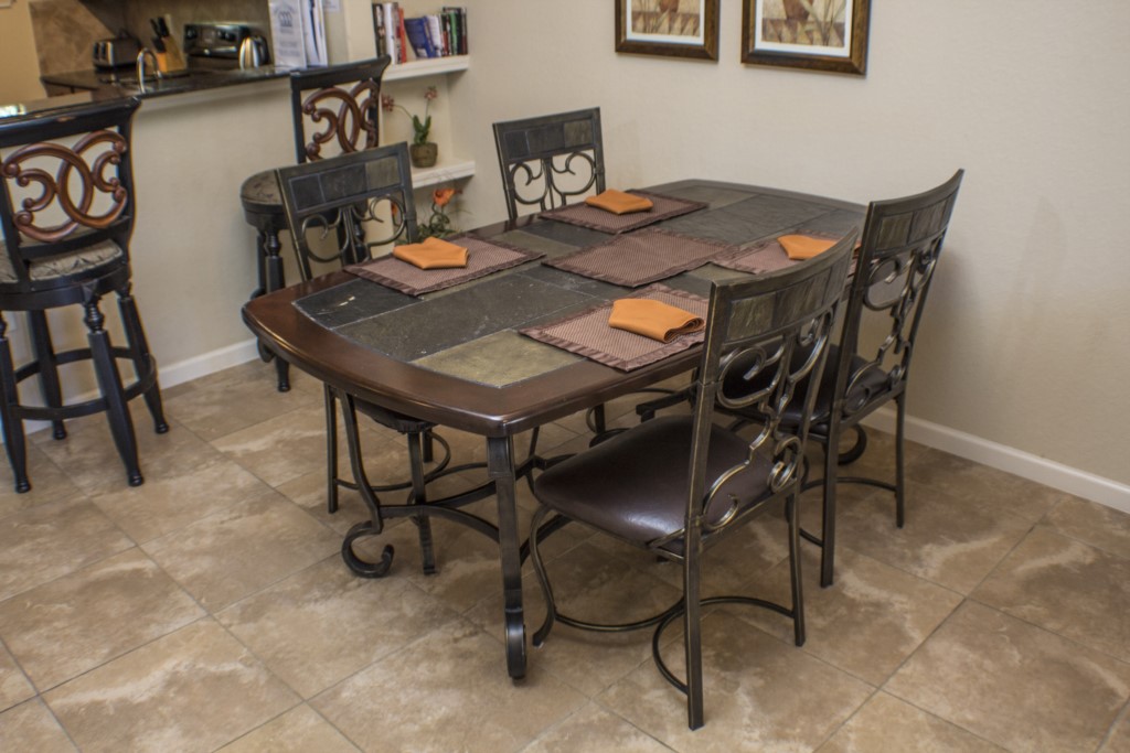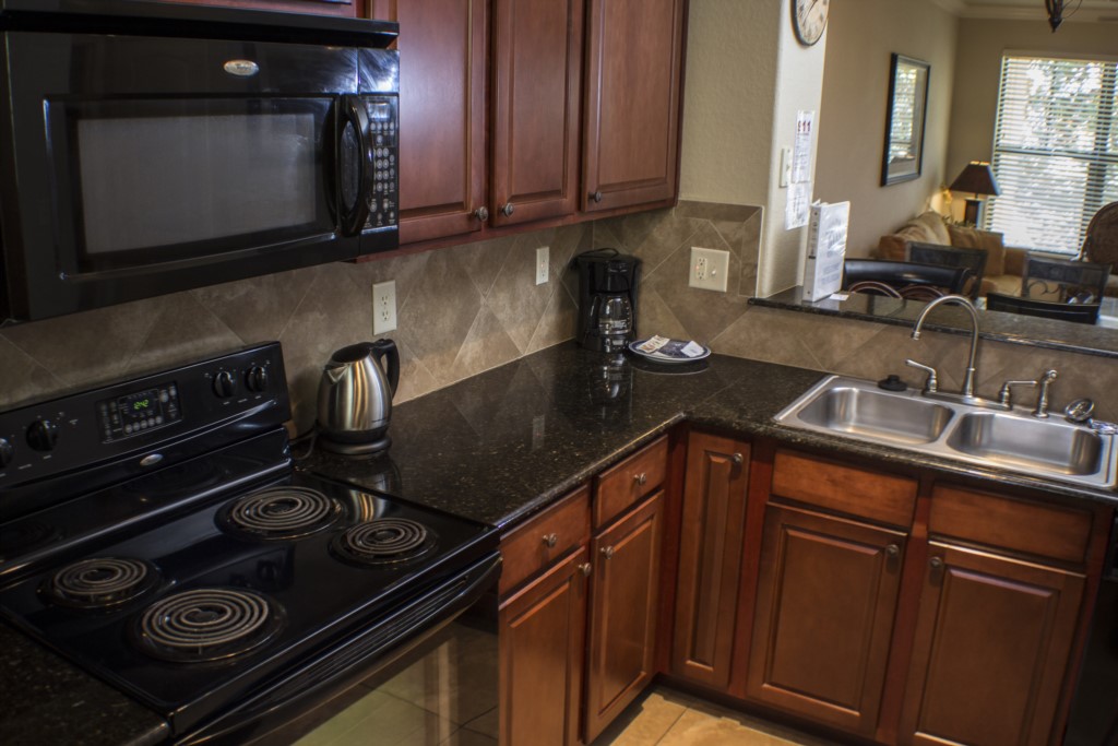 The condominium buildings have Mediterranean accented architecture with tiled roofs while inside you will find granite countertops in the kitchens and bathrooms, upgraded porcelain tile floors throughout the entryway, kitchen, dining area, living area and bathrooms, wood-grain cabinets and raised breakfast bar in the kitchens. There is also crown-molding in the kitchen, living and dining areas.