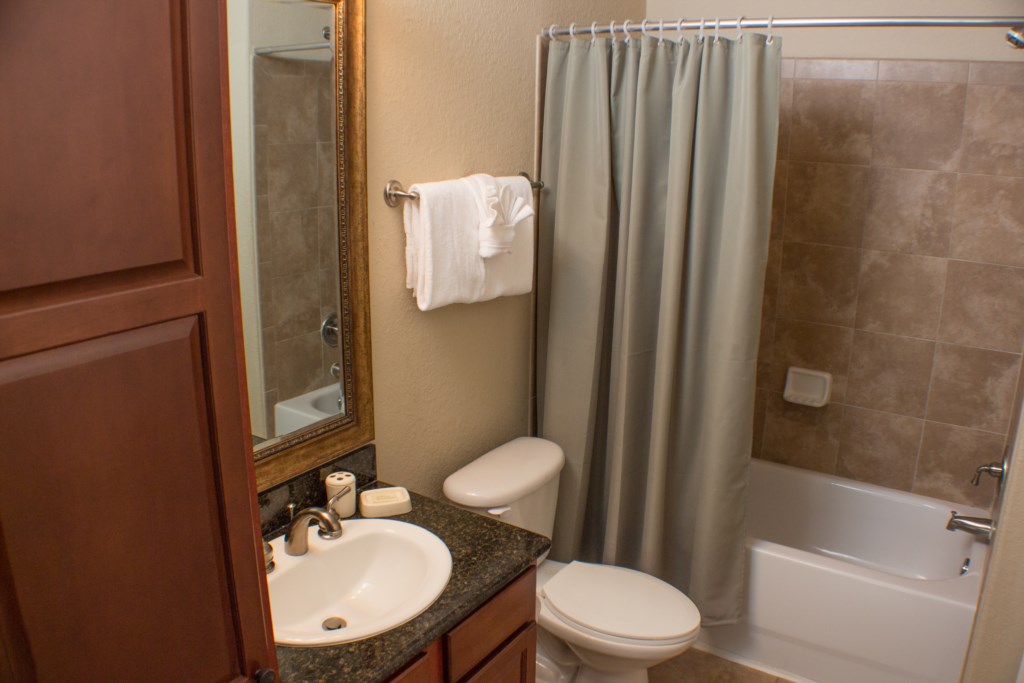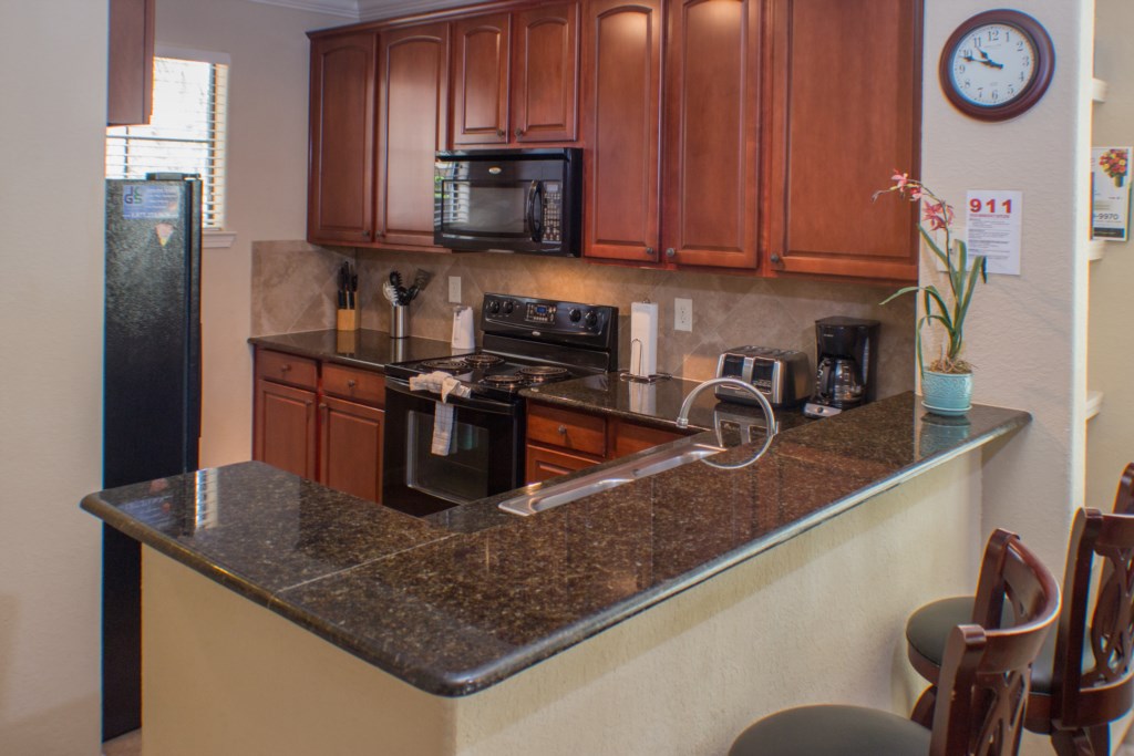 The condo has 2 large bedrooms, one of which has a king-sized room and the other a queen-sized one. Both rooms are fully kitted out with all the necessary bedroom furniture and have their own private en-suite bathrooms. This convenient vacation abode also boasts a large closet area where you’ll find a washing machine and dryer for your laundry purposes.