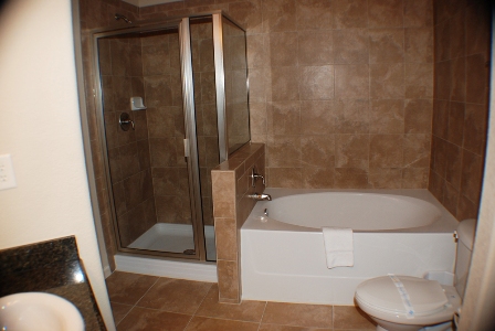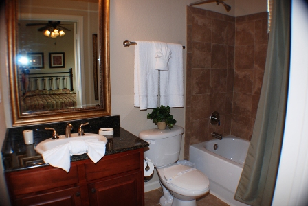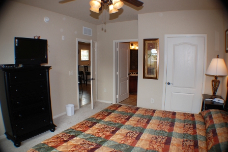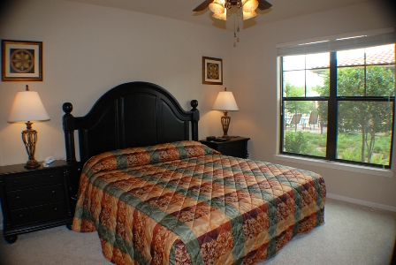 The master bedroom is impressive and has a king-size bed with matching furniture. It boasts a beautifully tiled en-suite bathroom which has a deep tub, a separate walk-in shower, and his and her vanities that have marble tops. The next biggest bedroom has a comfortable queen-sized bed with matching furniture. This too has an en-suite, but with a single vanity instead of a double one. The third bedroom is a twin room, which is perfect for younger members of the family. All rooms have ceiling fans to keep you cool during the summer months.