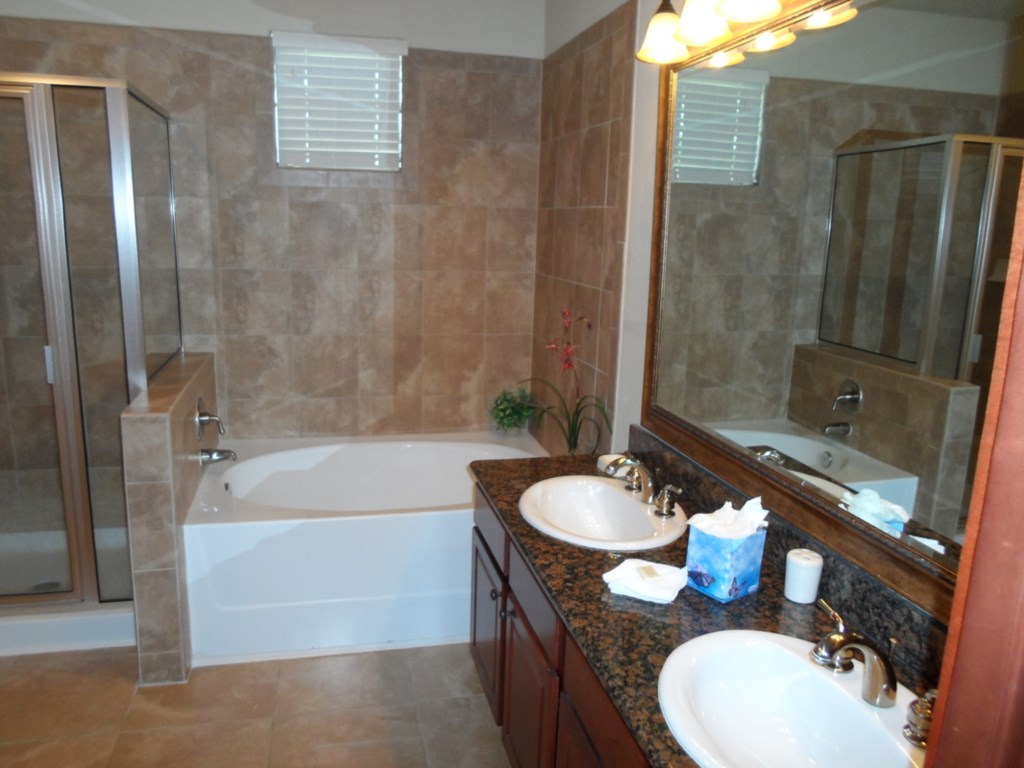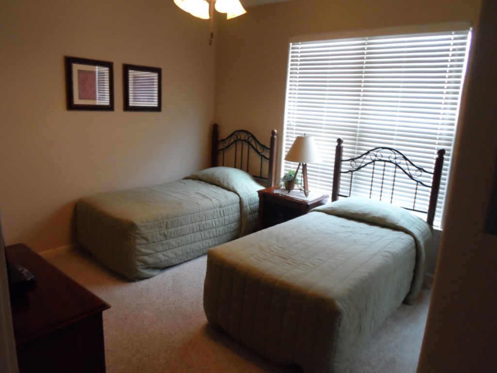 The master bedroom is comfortable and has a beautiful king-size bed. You’ll be able to entertain yourself in your room with your own 26” flat screen TV and DVD player. Wooden furniture adorns the room and there’s a large walk-in closet that has sliding mirror doors. You’ll always be able to have your own privacy with your own private en-suite bathroom that has a large tub to relax in, a shower, a WC, and his and her vanities with smooth marble tops. The second master bedroom is also beautifully furnished and it’s very similar to the master room. It too has a flat screen TV, beautiful furniture and a large wardrobe. Additionally, it has its own bathroom, but instead of having a double vanity, it has asingle one. The third bedroom has twin rooms, and this sunny room would be ideal for younger family members. Although it doesn’t have an en-suite, it does have direct access to the communal bathroom in the hallway.