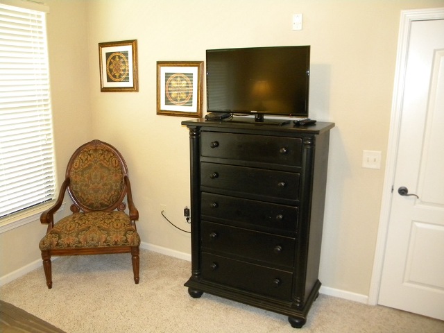 The living room is well lit by the large windows that let in the natural light. It has a grand feel to it, especially with its large leather rustic-looking couch. There’s also a second couch that’s also a pull-out sofa bed. There’s a large TV and a DVD player located in the living room for your entertainment, and throughout the home, there’s also a high-speed internet connection, ensuring you’ll stay in touch withthe outside world.