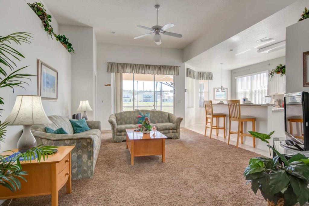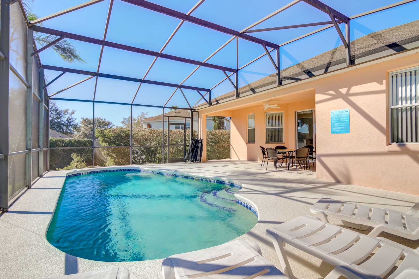 Just through the sliding glass door in the living room, you will find the picturesque pool area; screened in to keep the Florida bugs out. There are no rear neighbors, and the pool faces to the east, which provides you with a beautiful view of the sunrise. It's the perfect way to enjoy your morning coffee or tea. There are 4 sun loungers for relaxing in the sun, and a table with 6 chairs situated under the covered lanai.