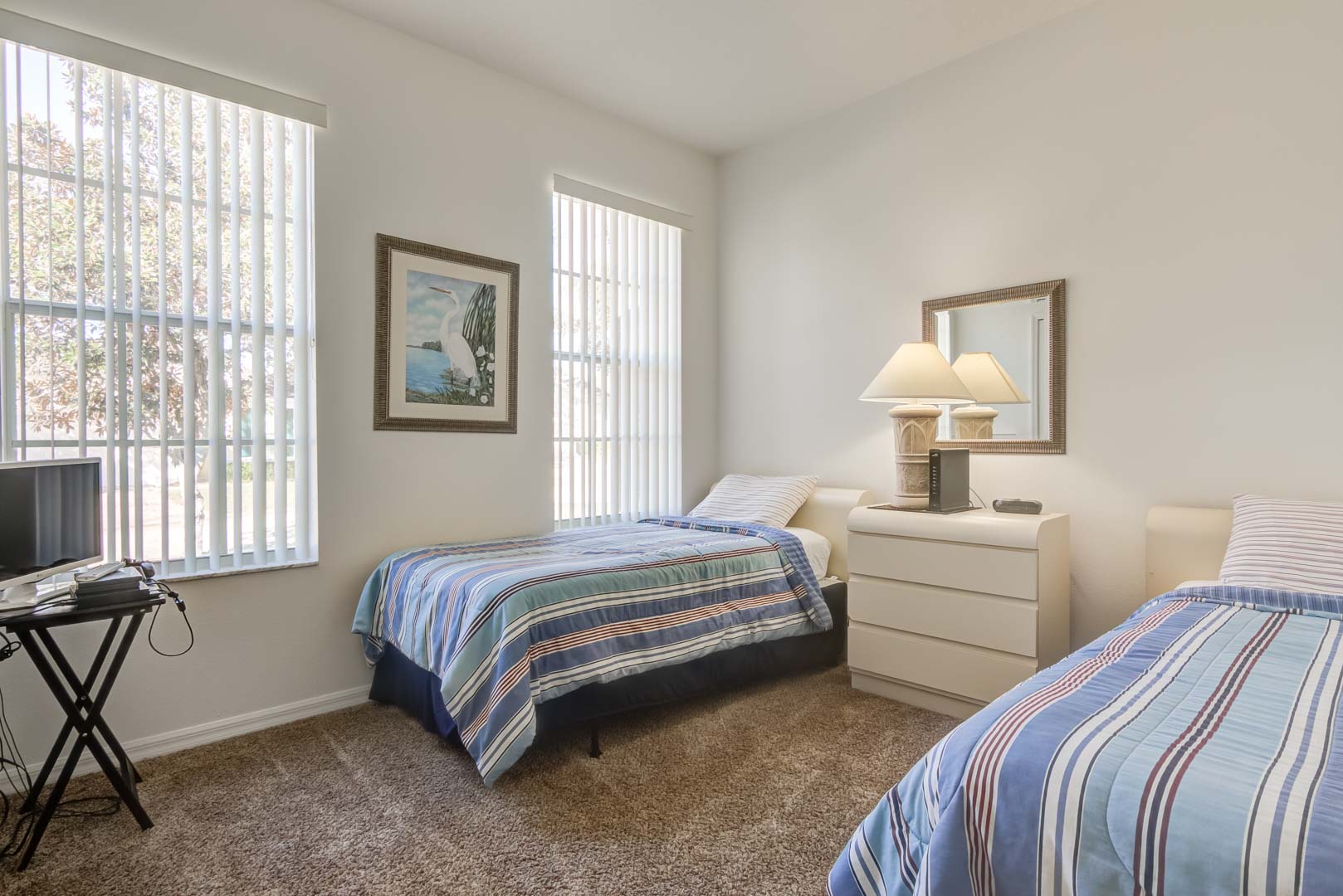 The master bedroom has a comfortable King size bed and its own private en-suite bathroom with walk-in shower and garden tub. The second bedroom has a Queen size bed. It does not have a private en-suite, but the second bathroom is located just outside the bedroom door. The third and fourth bedroom both have two twin beds and a Jack & Jill bathroom (a shared bathroom). All bedrooms have their own TV.