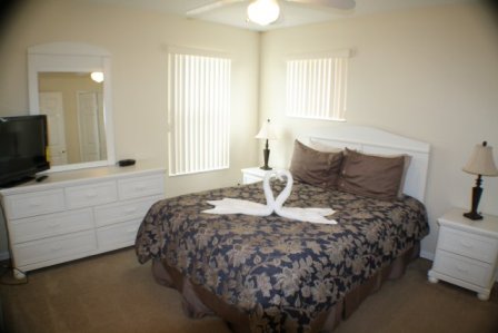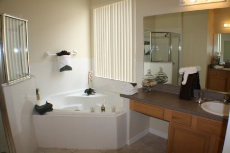 This home has been well thought out and has been tastefully designed. The light sunny home is decorated in whites, creams, and beiges, giving it a real beach feel to it. In total there are 3 master bedrooms. One has a king-sized bed and this can be found on the ground floor. The other 2 master rooms have queen-size beds and can be found upstairs. The 2 other bedrooms are twin rooms and share a communal bathroom. The master king size room has its own large en-suite bathroom, which has its own garden tub, a separate walk-in shower, a toilet, and his and her vanities. Each bedroom is decked out with its own flat screen TV, so there won’t be any arguments about who’s going to watch what.