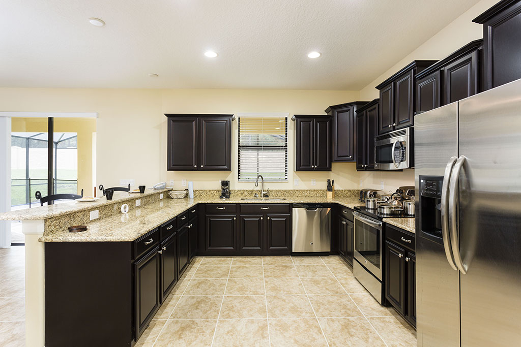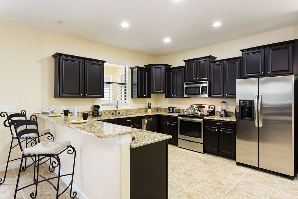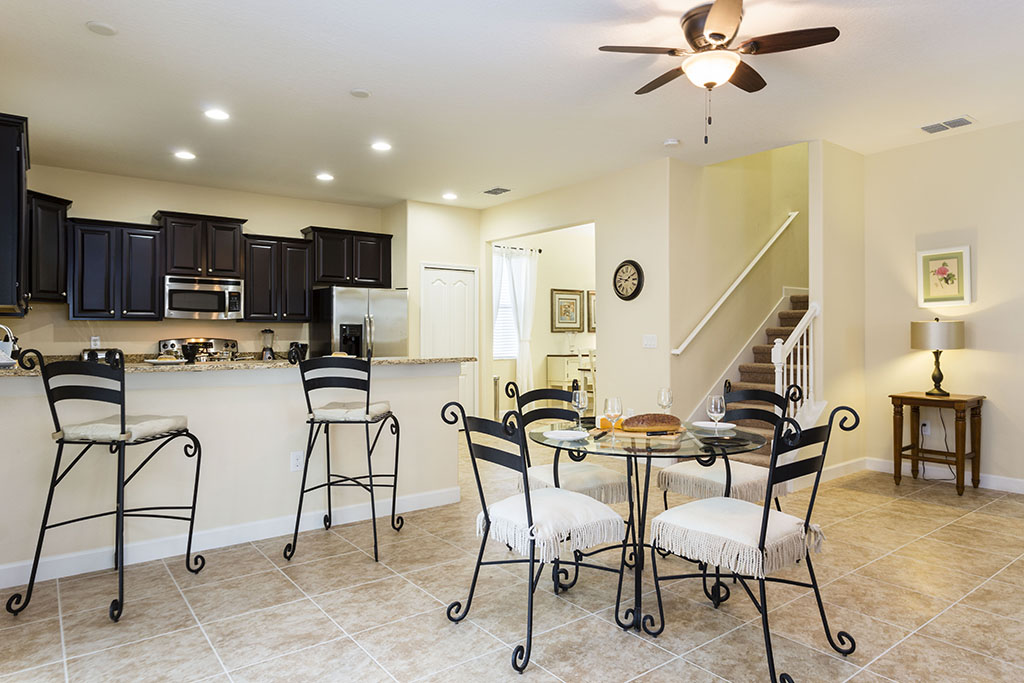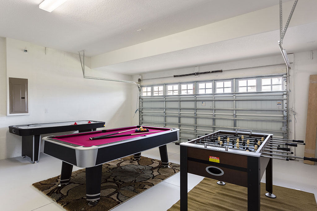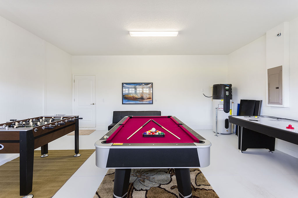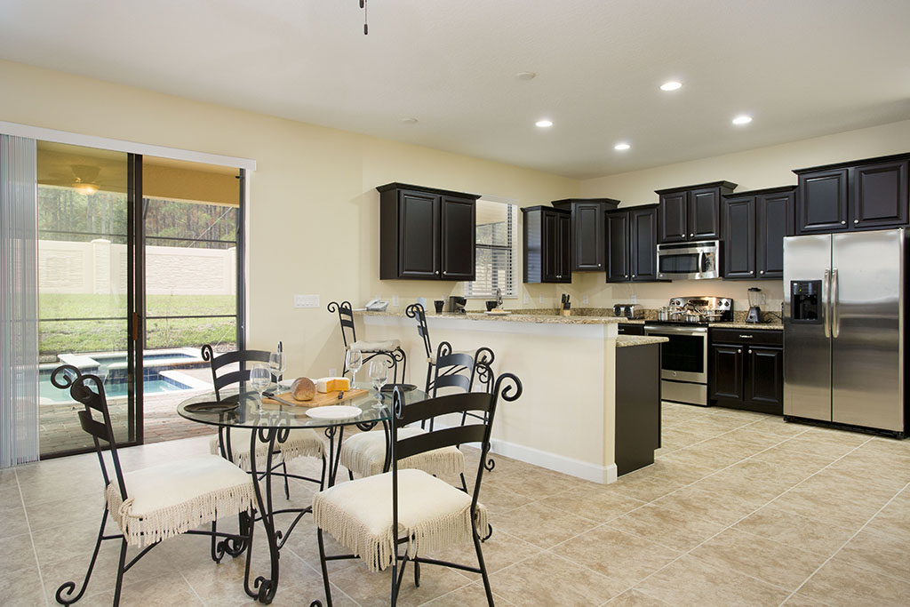 This beautiful purpose built vacation home has the enviable position within the the brand new resort of the Retreat at Champions Gate. The living area is open plan and extremely spacious incorporating the main family living area with oversized sofas for viewing of the large wall mounted TV, a dining nook, fully equipped kitchen with granite counter tops, stainless stell appliances and breakfast bar perfect for casual meals. Adjacent to the kitchen is the formal dining room where celebration diners can be presented and enjoyed. There is one bedroom on the ground floor, a kingsize master suite located at the front of the home. The games room will provide hours of fun and entertainment having comfortable seating, a pool table and air-hockey. Off the family room is bathroom with walk in shower and the added convenience of also opening onto the pool deck.