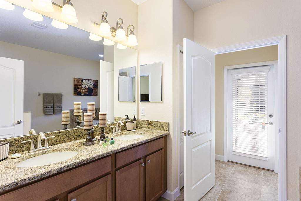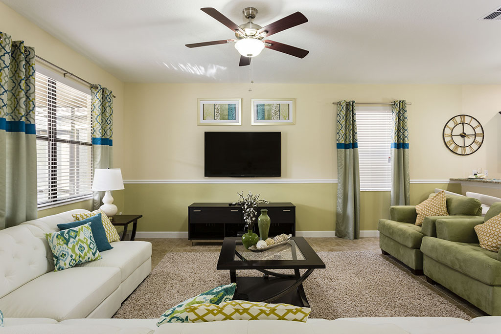 Of course, this is Florida, so the favorite spot will always be the luxurious pool deck or the covered lanai. If however, you prefer air conditioned comfort, you can relax and watch TV by the downstairs family living area, or also in the upstairs TV lounge in the upstairs loft. Movie fans also can head into the amazing 7 seat tiered cinema room to watch their favorite (free) movies or replay precious moments from your dream vacation!