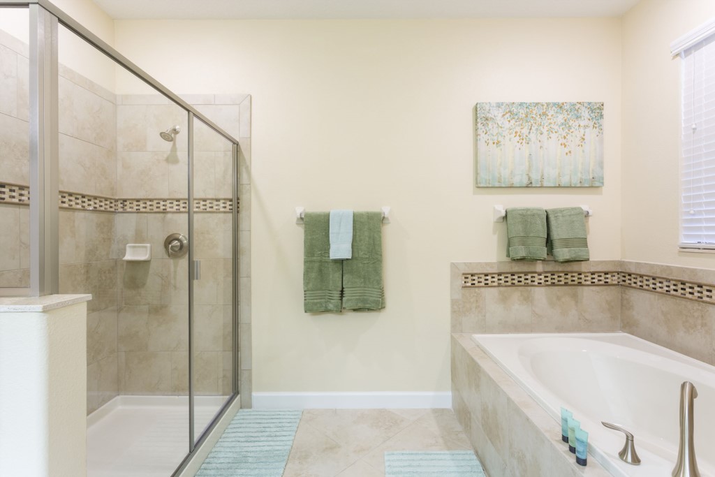 King sized bedroom with shower and bath