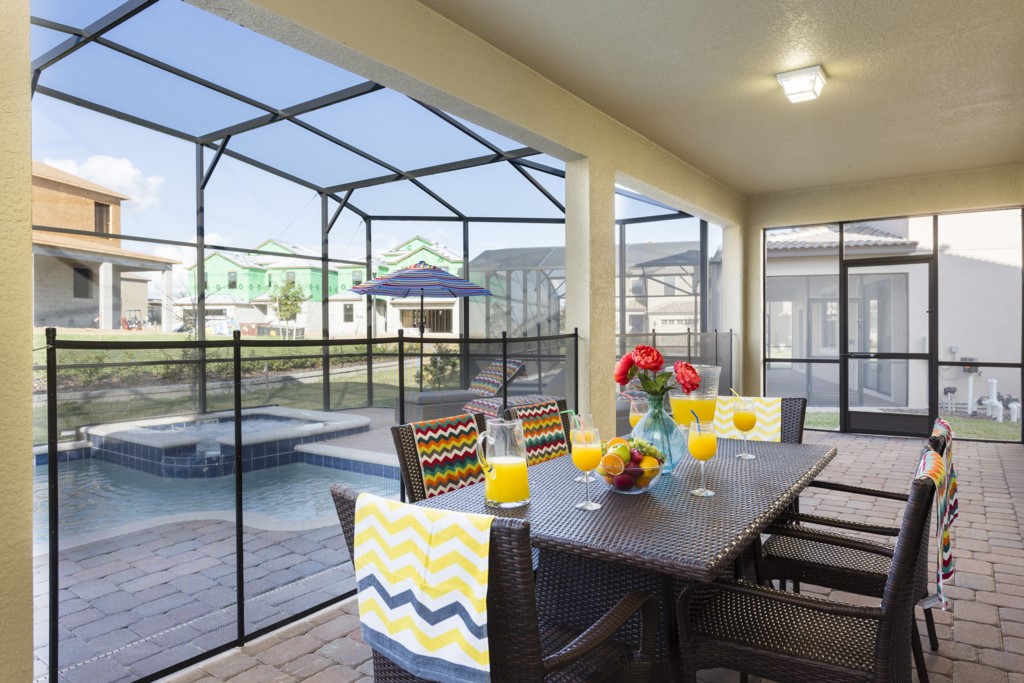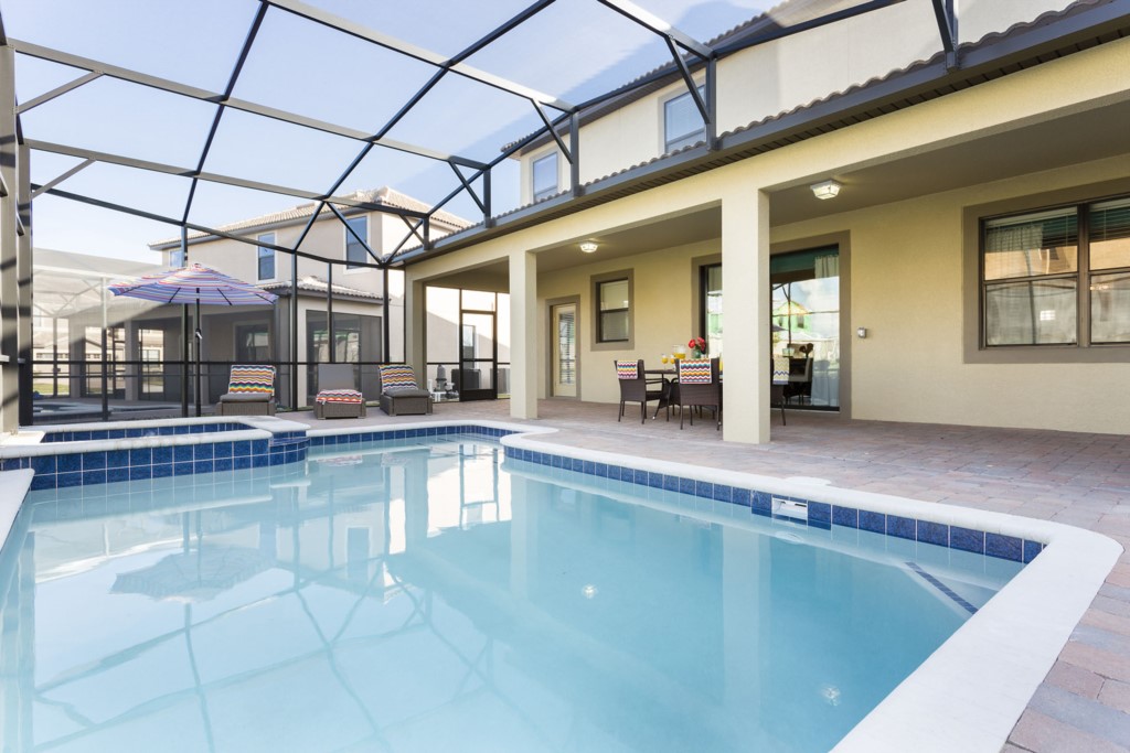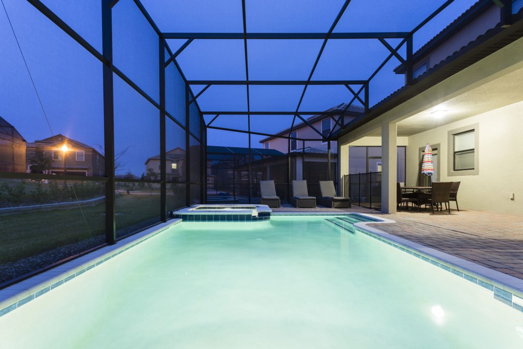 The pool area is screened, to help protect guests from any night time bugs as they enjoy every moment of their time in Florida.
