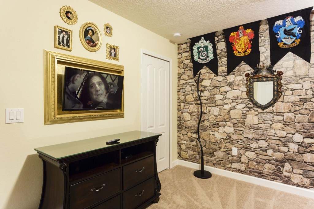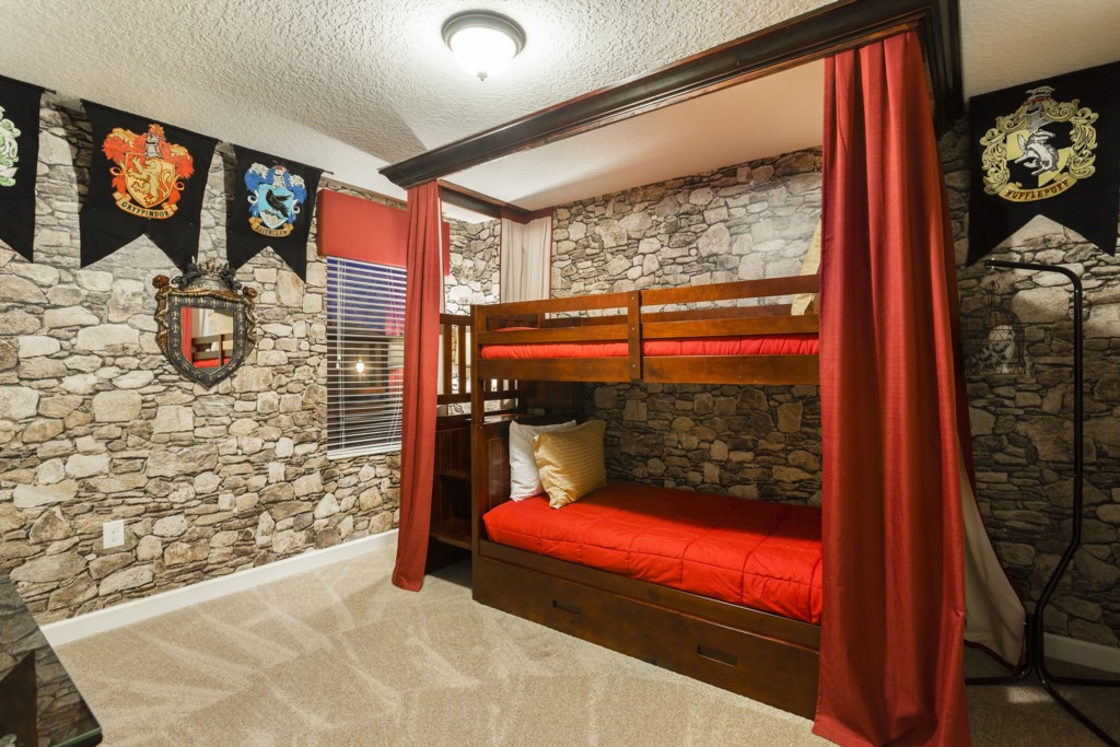 A Harry Potter themed Twin/Twin bunk room with an additional twin trundle bed (sleeps 3 in total)