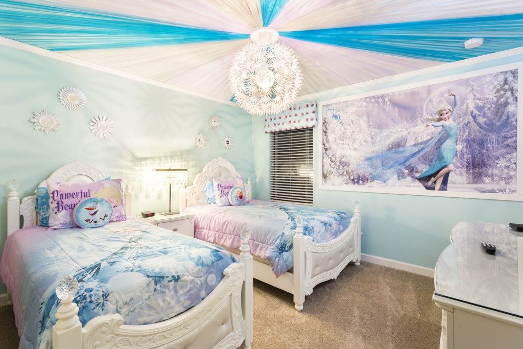 A frozen themed bedroom with a full and twin bed