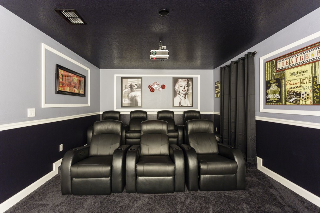 With a private screened pool complete with spa (optional heating) and a 7 seat tiered home theater plus excellent games room, your guests can enjoy fun after the theme parks whenever they wish.