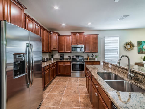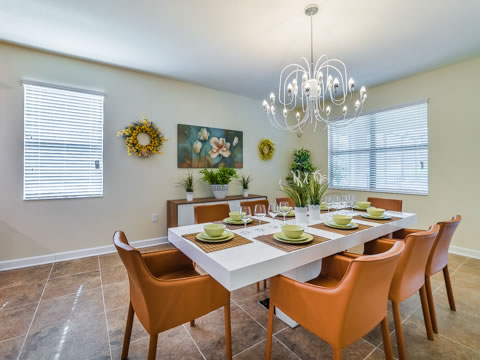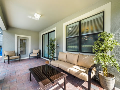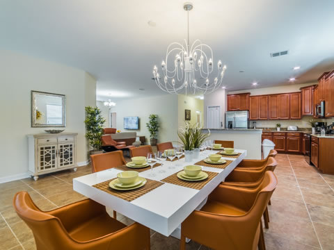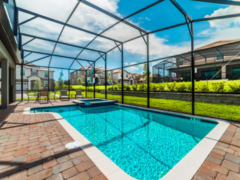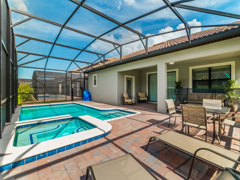 You can also dine outside on the back patio which overlooks both the pool and spa.The pool is the perfect place to cool off and the pool chairs are a great place to relax and lounge. Staying in Champions Gate also allows you full access to their wonderful amenities. This includes the Oasis Clubhouse which has a full gym, huge pool and lazy river as well as a movie theatre.