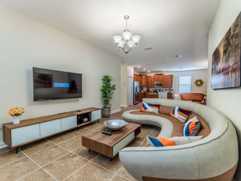 Perhaps one of the most impressive features of Champions Gate Resort is the 18-hole golf course with driving range and putting green. If golf is not your sport of choice however, Champions Gate Resort offers a whole host of other activities to keep you busy. These include 6 tennis courts (coming soon); volleyball courts; state-of-the-art gym, games room, children's playroom, sports hall and cinema. If that all sounds too much like hard work, you can kick back and relax around the resort's fabulous communal swimming pool. Much more than just a pool, this tropical paradise features a waterslide, lazy river, splash pool and hot tub. The pool is spaciously decked out with sun-loungers, tables and chairs and includes the use of cabanas or poolside beach huts for shade. A poolside tiki bar will keep you replenished with refreshments so you needn't stray too far from that famous Florida sunshine. Children will love the play pool with its splash park and aqua slide. A computer room and on-site shop are also available for your convenience with a good choice of shops and restaurants in the nearby area.