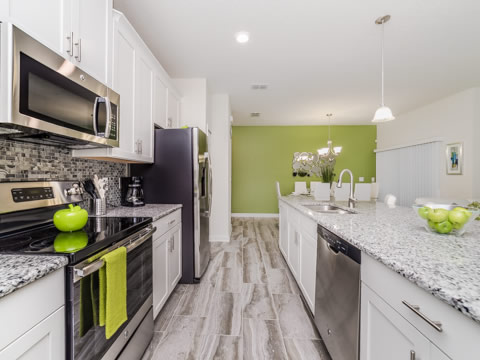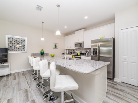 This spacious and luxurious 4-bedroom, 3-bathroom vacation home features two king bedrooms and two bedrooms with twin beds, a private pool with a screened-in lanai, a fully equipped kitchen, granite countertops, stainless steel appliances, TVs in every bedroom, and a bright & spacious open concept living area with a 55-inch plasma TV. This home away from home is luxury in every sense of the word. Perfect for vacation, there is plenty of sleeping and living space for your group or family. You will love the pool and lanai after a day adventure to one of our Central Florida attractions. We would love to talk to you so please don’t hesitate to call one of our reservationists who can answer your questions about the vacation of your dreams. To reserve, please call us today or book online. We are excited for your stay with us!