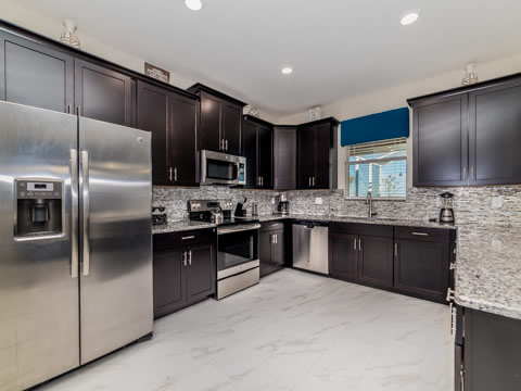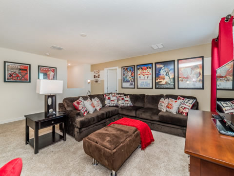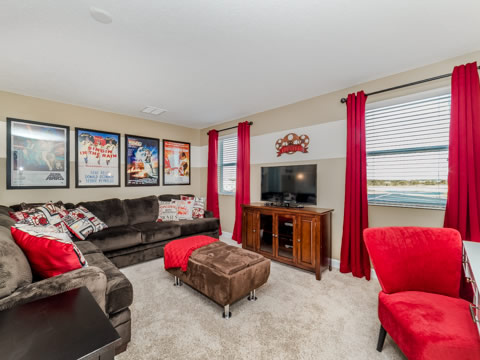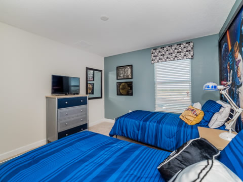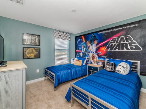 Welcome to this gorgeous 6 bedroom, 6 bathroom pool home that is sure to make your vacation special. Upon your arrival, you'll know that you are in for a great vacation! The tile roof and stone facade are eye catching and elegant. Achieving the Grand status, this home is professionally decorated with upgraded furniture and has a modern feel. The upgraded kitchen includes stainless steel appliances and granite counter tops. All of the bedrooms have special decorator touches and each offers a flat screen TV. The kids will love the Mickey or Star Wars themed bedrooms! For some family friendly competition, you will enjoy a game room, complete with billiards and air hockey. The over-sized pool and spa will provide hours of enjoyment for the entire family – especially after a day out in the parks or other Central Florida attractions. The screened in lanai and patio furniture offers poolside dining along with loungers for relaxing, tanning and enjoying our beautiful Florida weather. For your convenience, there is a full-size washer and dryer. And, so you can stay connected, this home offers FREE Wifi. Please call us today as we look forward to your stay with us!