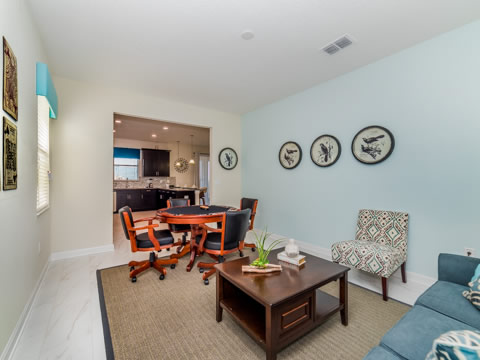 Perhaps one of the most impressive features of Champions Gate Resort is the 18-hole golf course with driving range and putting green. If golf is not your sport of choice however, Champions Gate Resort offers a whole host of other activities to keep you busy. These include 6 tennis courts (coming soon); volleyball courts; state-of-the-art gym, games room, children's playroom, sports hall and cinema. If that all sounds too much like hard work, you can kick back and relax around the resort's fabulous communal swimming pool. Much more than just a pool, this tropical paradise features a waterslide, lazy river, splash pool and hot tub. The pool is spaciously decked out with sun-loungers, tables and chairs and includes the use of cabanas or poolside beach huts for shade. A poolside tiki bar will keep you replenished with refreshments so you needn't stray too far from that famous Florida sunshine. Children will love the play pool with its splash park and aqua slide. A computer room and on-site shop are also available for your convenience with a good choice of shops and restaurants in the nearby area.