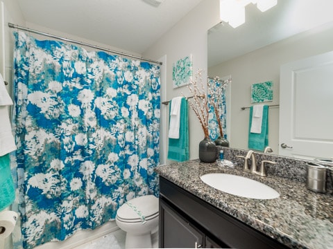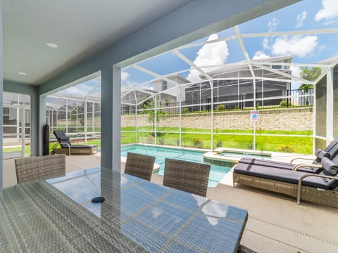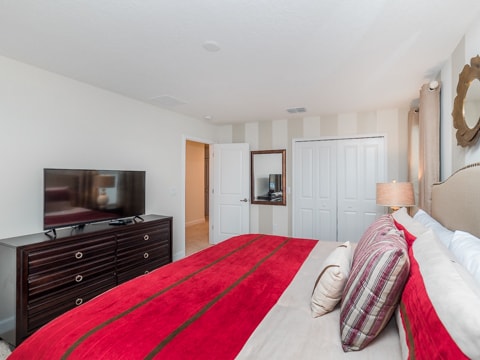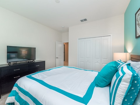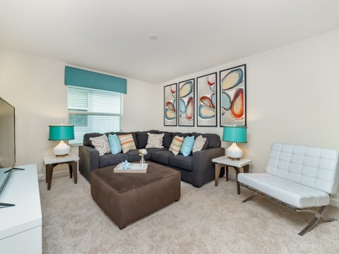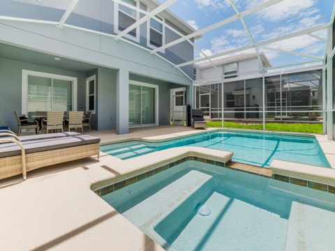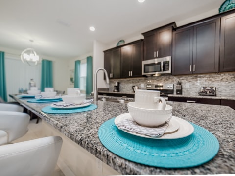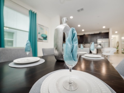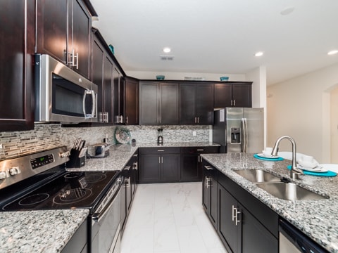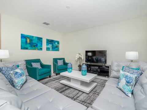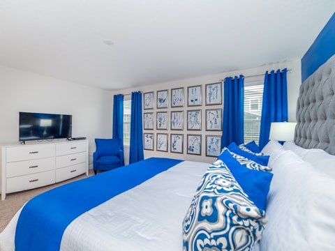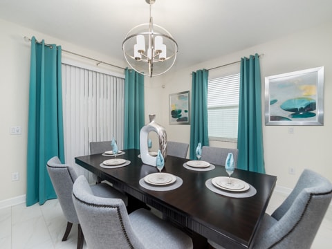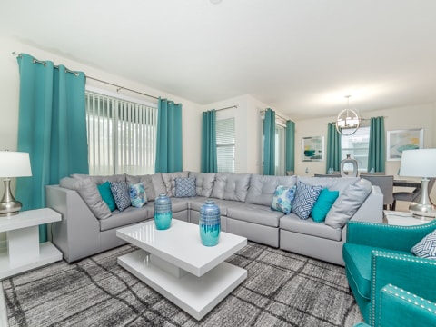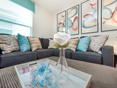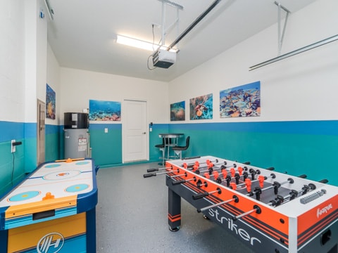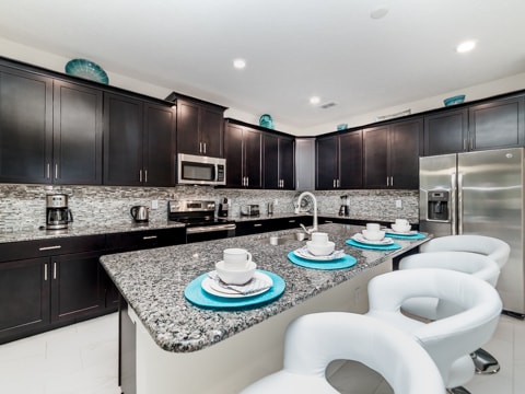 If you’re looking to escape your worries and go on vacation, then look no further than this gorgeous 6 bedroom, 5 bathroom vacation home located in Champions Gate. As part of the Grand Collection, this home is designed and decorated with luxury and convenience in mind. The light colors blended with cozy neutrals give you a sense of Florida and serenity. The living room is dawned with teal and turquoise furniture, a wraparound couch and chairs for sitting. The kitchen will make you feel as though you stepped into a food network set with it’s granite countertops, upgraded cabinets and appliances. The luxury of having a kitchen in your home means family meals and time spent together. The dining room and breakfast bar seat a total of 10. Heading upstairs, you are greeted by a sitting area with cozy couches, all situated around a flat screen. Sleeping up to 12 guests, this home offers 2 king bedrooms and 2 queen bedrooms. Also, this home has 1 bedroom with a twin and double as well as 1 bedroom with 2 doubles. With so many sleeping arrangements, everyone will have their own space. With a lot of guests means a lot of laundry. Luckily for you, this home has a full-size washer and dryer for you to use at your convenience. Free WiFi is also available throughout the house. This home has so much entertainment too! With a game room filled with foosball and billiards as well as a pool and spa out back, you are sure to spend hours here having fun. Book your stay today in this gorgeous home and let the vacation begin!