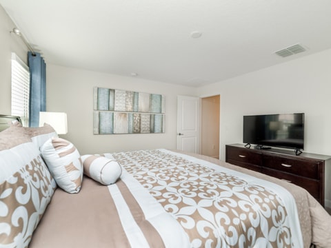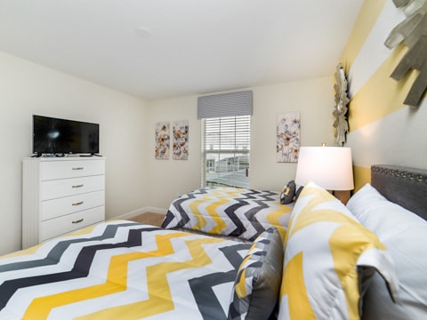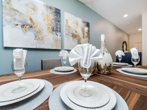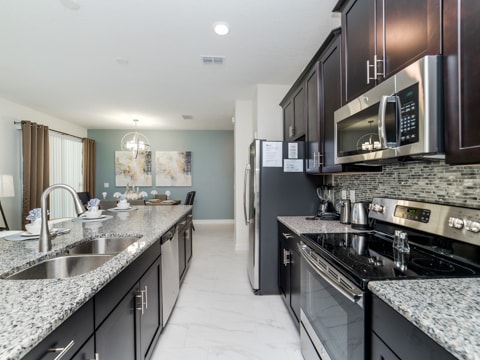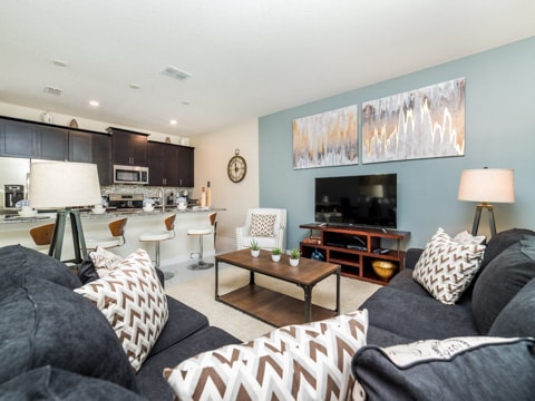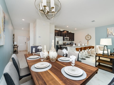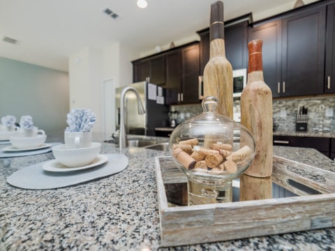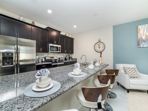 Beautiful weather, sunny days and this home located in Champions Gate await you and your guests for your dream vacation. Sleeping up to 8 with a total of 4 beds and 3 bathrooms, this home has all the amenities of home and all the luxuries of vacation. Step inside the living room and transport yourself to a cozy Florida getaway. A 55” flat screen, blu ray player and wraparound couch provide seating and entertainment for all. In the kitchen, luxury meets convenience - granite countertops, dark wood cabinetry and upgraded appliances all surround you. The breakfast bar or the 6 person dining room is the perfect place to enjoy your meals. On the main level, 1 bedroom is located with the other 3 upstairs. With 1 king bed, 1 queen bed and 2 bedrooms with 2 twins, there is plenty of space for all of your guests. The neutral colors throughout the bedrooms and home provide a relaxing vibe. With this house comes a washer and dryer as well as free WiFi for you to use at your convenience. Heading out back, there is a splash pool for you and your guests to cool off after a long day at the parks. Soak up the Florida sun all day or head to the Oasis Clubhouse. Free access is provided from check in until checkout. A huge pool, lazy river, movie theatre, gym and more are all free to use. Book your stay today at this gorgeous townhome!