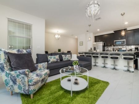 The perfect vacation home is waiting for you in the gorgeous resort community of Champions Gate! As a part of the Grand Collection, this home is all about luxury and opulence. With a professionally decorated interior, this home screams relaxation and comfort. To begin, the 4 bedrooms and 3 bathrooms provide space and privacy for your dream vacation. Sleeping a total of 12 guests, everyone is able to get plenty of rest. This home contains 1 king bedroom, 2 queen bedrooms and 1 bedroom with 2 twin bunks. The first floor to this home is all about family time and togetherness with an open concept living area. The living room has a 50’ TV, with a wraparound couch and extra seating for all of your guests - movie nights are perfect for this cozy area. The living room overlooks the kitchen which is detailed and luxurious. Granite countertops, stainless steel appliances and upgraded cabinetry outline the huge kitchen. The large island is ideal for serving buffet-style meals or serving breakfast at the bar. Enjoy your meals together at the dining table too. This home is all about making your vacation easy! With a washer and dryer as well as free WiFi for you to use, convenience is right at your door. Do not forget about the pool outside on the back patio. Swim all day in your own private pool and lay out in the bright Florida sun. If that isn’t enough, try the massive Oasis Clubhouse complete with a pool, restaurant and so much more! Book your stay today and enjoy the endless hours of fun that this vacation home has to offer.