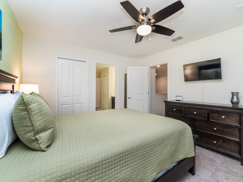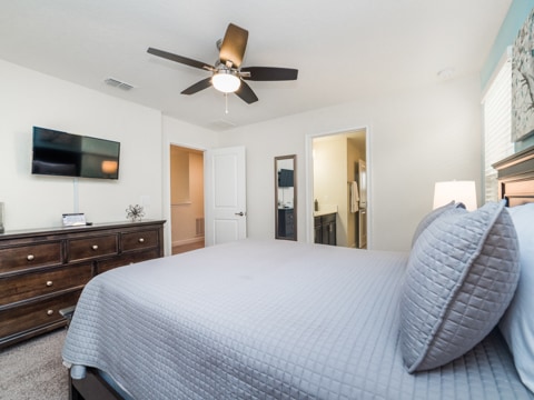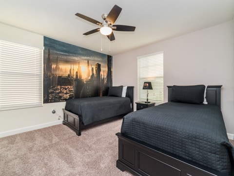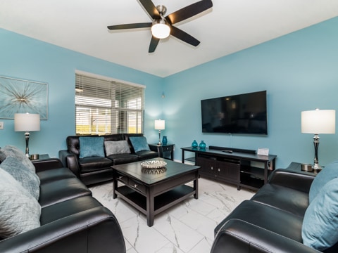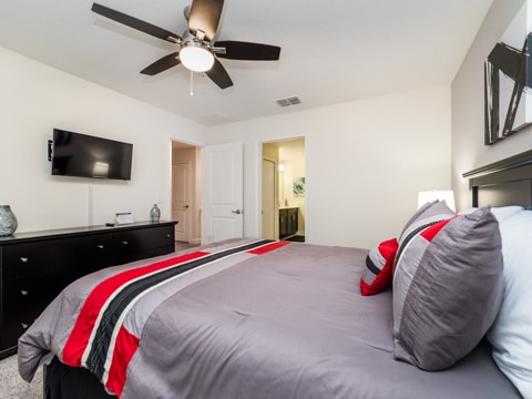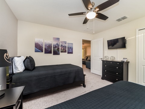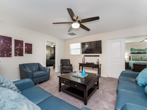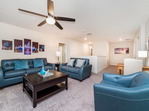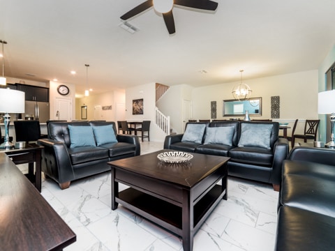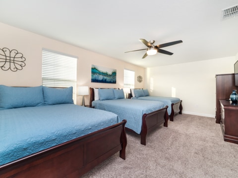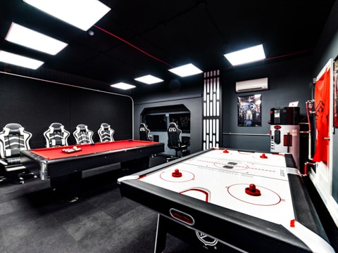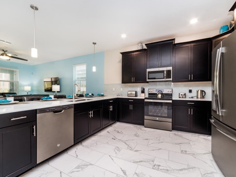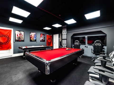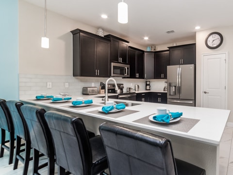 Gear up for an incredible vacation when staying in this gorgeous home. Located in the gated resort community of Champions Gate, this vacation home is like no other. Sleeping 19 to 22 guests, 9 bedrooms and 5 bathrooms round out this home. As a part of the Grand Collection, this home has been expertly designed with you in mind. Every detail is thought out for maximum style and comfort. To begin, the 9 bedrooms in this home are all about comfort. Each room follows a neutral color scheme which means relaxation. This home has 2 bedrooms with king beds, 4 bedrooms with queen beds and 2 bedroom with 2 twins. The last bedroom has 3 full beds which are perfect for the kids in your family. Next, the living spaces are all about togetherness. The 65” flat screen TV, along with the 3 leather couches provide space and comfort to hang out. Close to the full kitchen, the open floor concept allows there to be conversation always happening. The kitchen is all about convenience. Stainless steel appliances, dark wood cabinetry and granite countertops make it feel large and luxurious. The kitchen lets you cook up anything at a moment's notice. Enjoy a full meal or even snacks here and there! Enjoy all meals together in the dining room. Entertainment is also important while you stay at this house and that is why there is no shortage of that. The pool and spa provide hours of endless entertainment while you swim and splash all day long. Free WiFi is provided throughout the home so you can always stay connected. Do not forget about the incredible game room which boasts billiards, air hockey, four 50'' flat screens with two PS4's and two Xbox Ones. If you are looking for a home filled with entertainment and more, then look no further! Be sure to book this Champions Gate home on your next trip to Orlando.