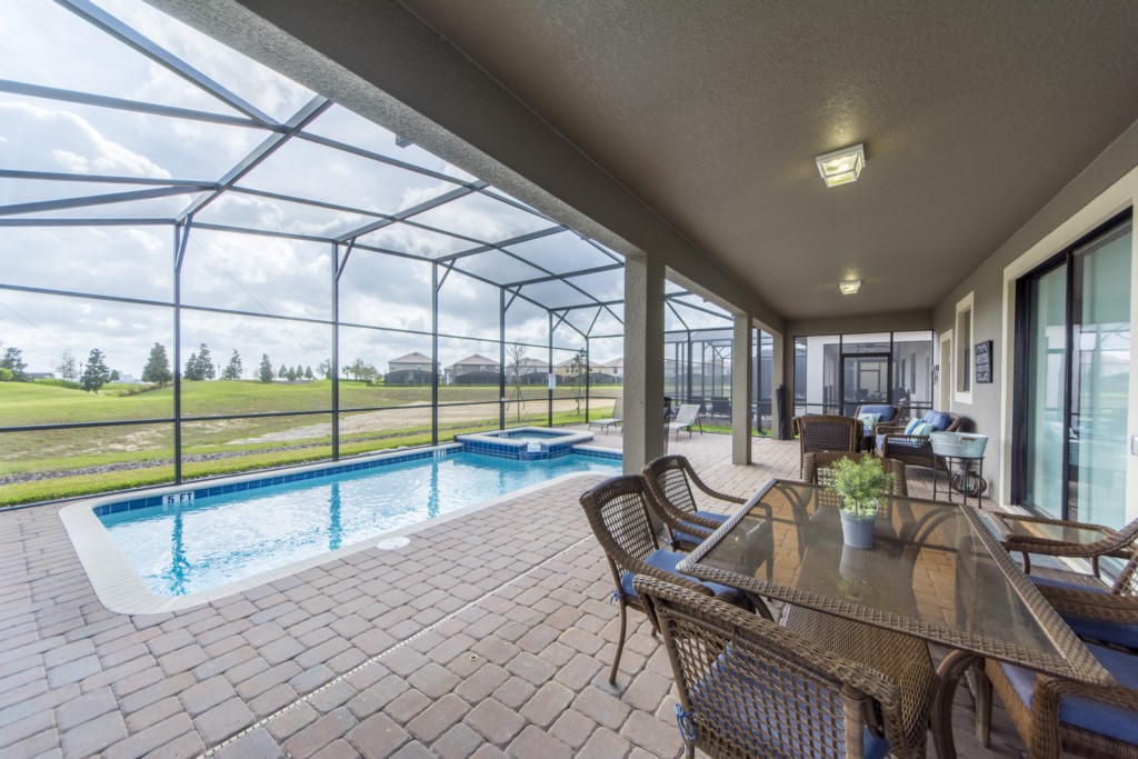 Enjoy an incredible view of the golf course from the game room while relaxing in air-conditioned comfort. Looking to relax and unwind? Enjoy the spacious screened in pool area.