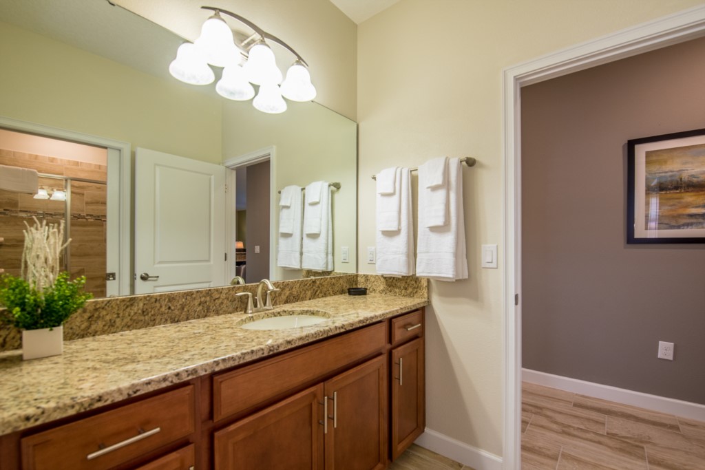 This 4 bedroom, 3 bathroom home has all the comforts of home and more. This beautiful rental home has a stunning brick facade and stylish tile roof. Once inside, the exquisite leather furniture package and professional decor will help ensure you have the vacation of a lifetime.