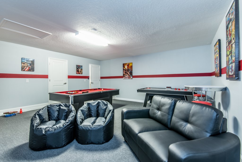 Make the most out of your vacation, the home also has large sotting area upstairs with large LCD TV for those days where you just want to stay in and enjoy this fabulous home. Catch up on your favorite movies whilst lounging on the large sectional sofa. The property also has a fully air conditioned games room complete with pool table, foosball, and air hockey .