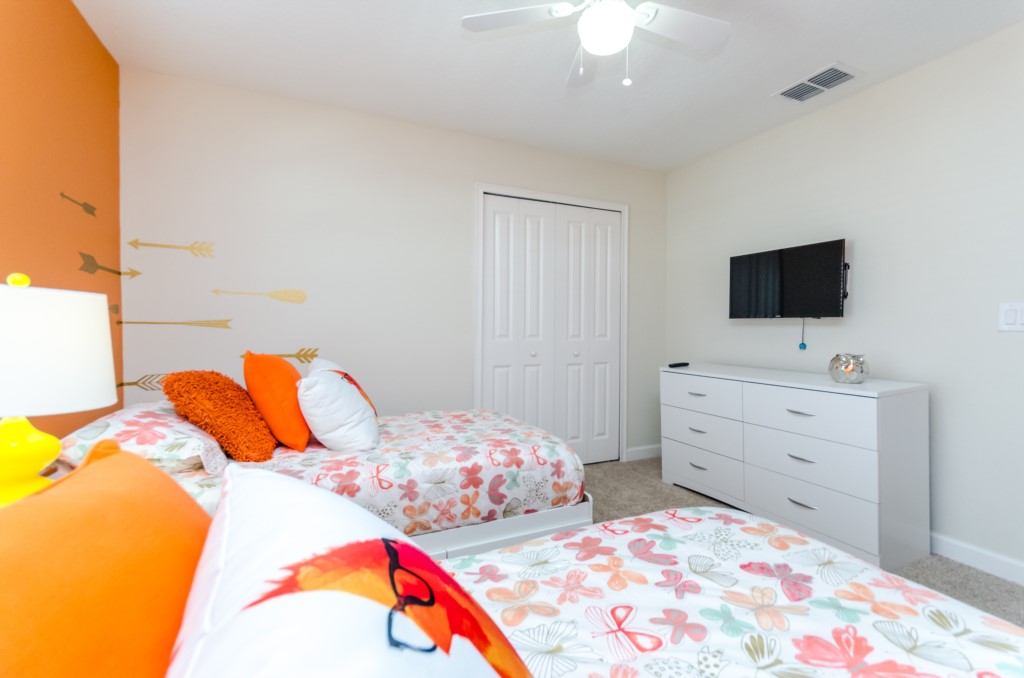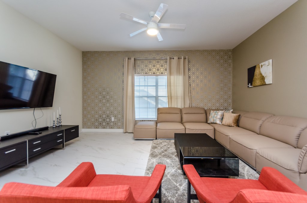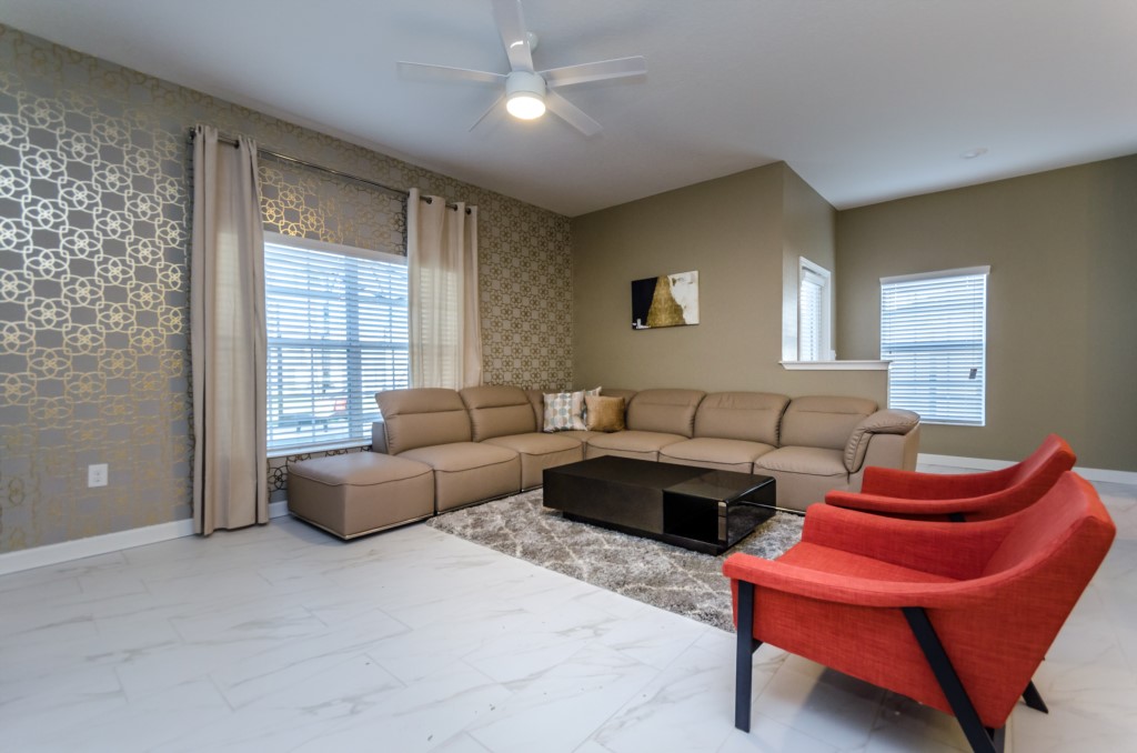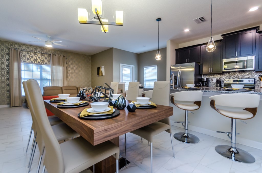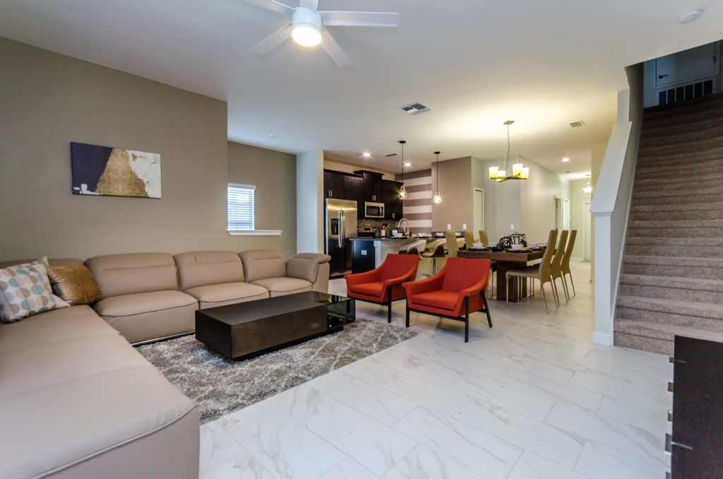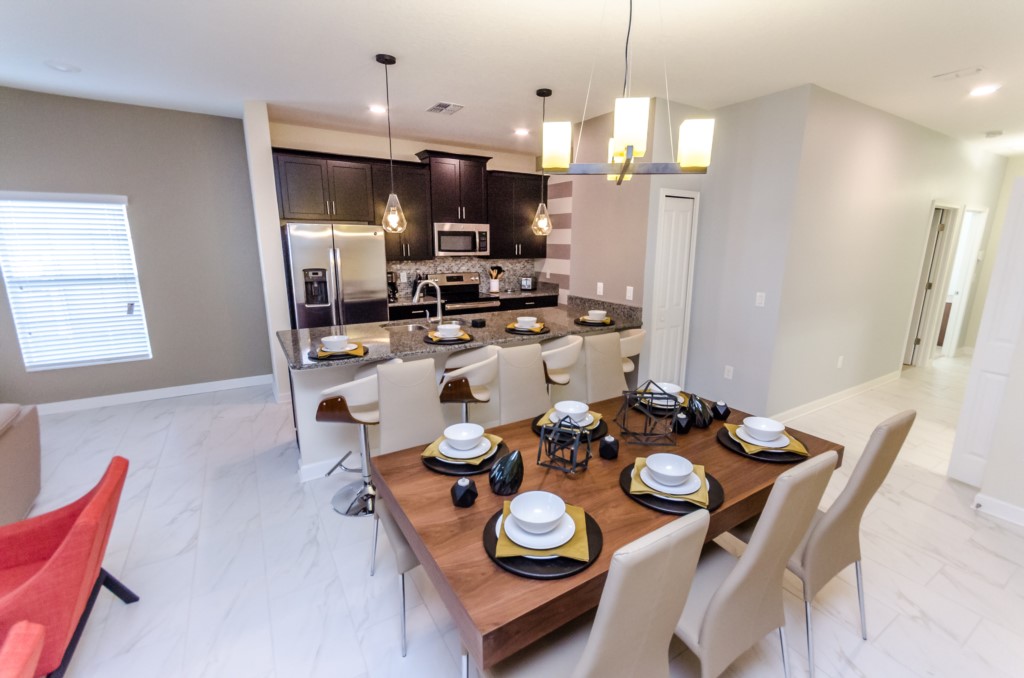 This stylish 5 bedroom townhome is a great choice for your family vacation base. With 5 bedrooms and 4 bathrooms, open floorplan, modern kitchen and plunge pool area this home offers just what you need for that at home feeling while on vacation. After a long day enjoying the theme parks and all Orlando has to offer you will be able to escape the city and truly relax at Festival of Champions townhome!