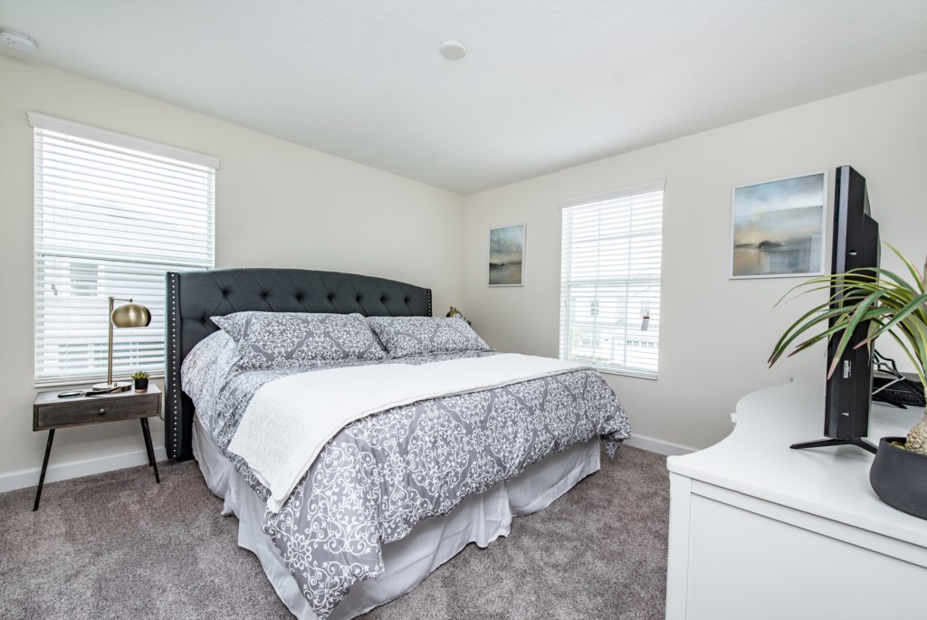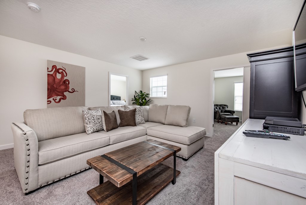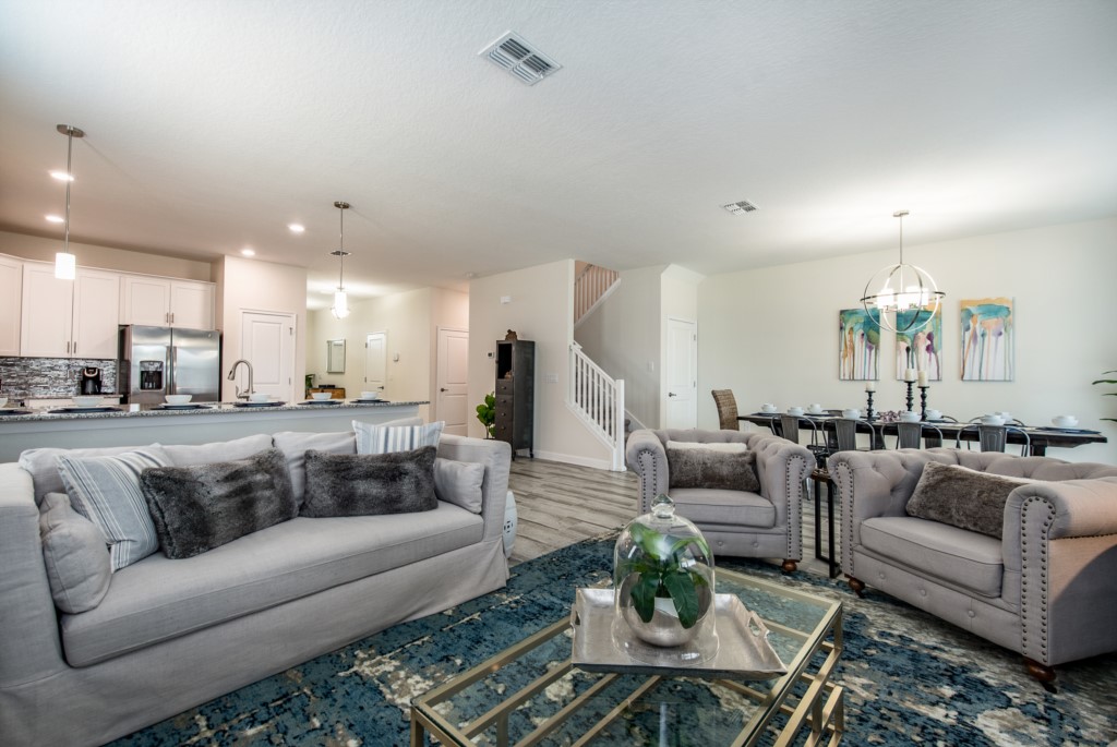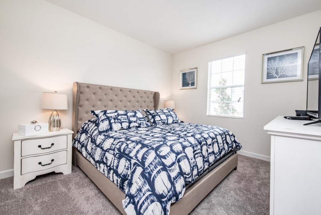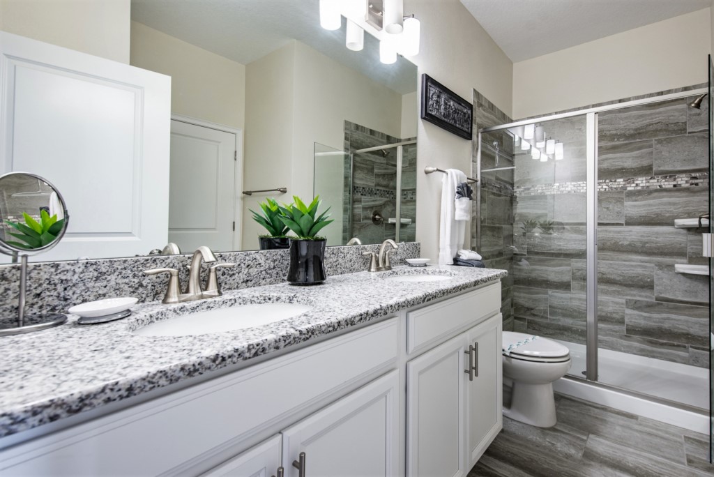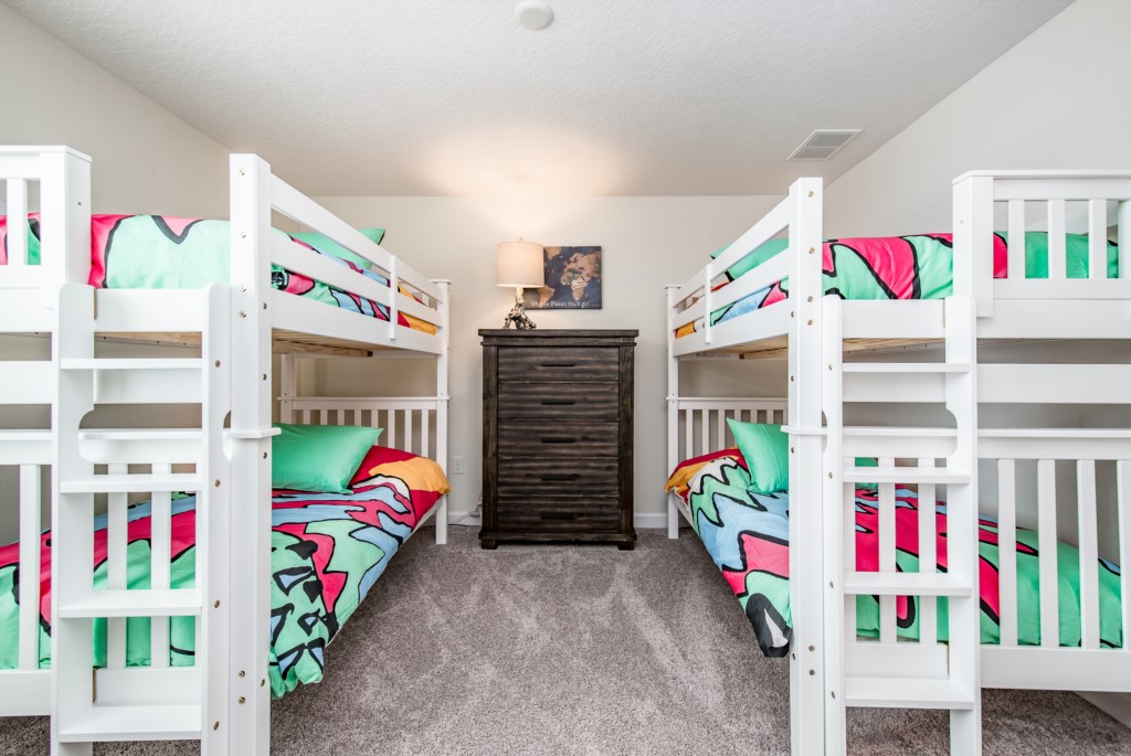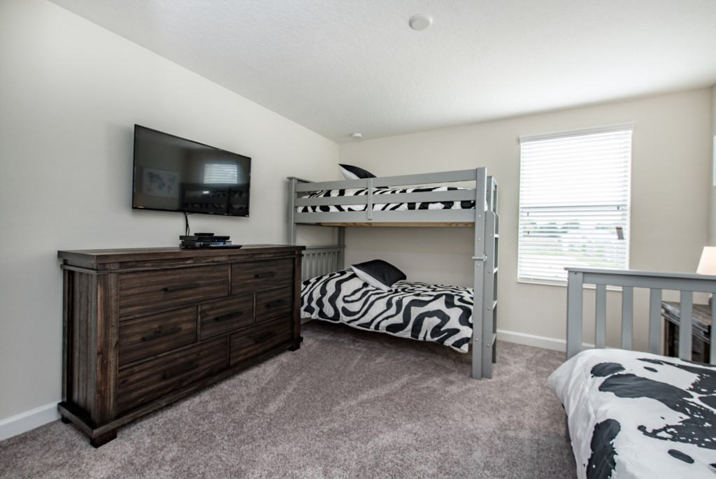 You will feel immediately relaxed as you enter our 8 bedroom, 5 bathroom executive home which sleeps up to 18 in style. We have paid great attention to every detail when we furnished this home and we hope you will enjoy it as much as we do with our own family. With 5 king bedrooms, 2 bedroom with full size bunk bed and 1 twin , 1 room with a double full size bunk bed , there is plenty of room for everyone to spread out and relax after a day out or just to stay in and take it easy. Each room has a different feel so all guests should be equally happy with their room, and all have wall mounted flat screen LED Tv’s. The dining room and living area offers plenty of space to congregate and enjoy meals together, and the bright and airy kitchen has all the appliances that you would expect in your own home. (There is also a full-size washer and dryer). This home will bring all the excitement of Orlando to you, and have the entire group talking about your trip for months to come.