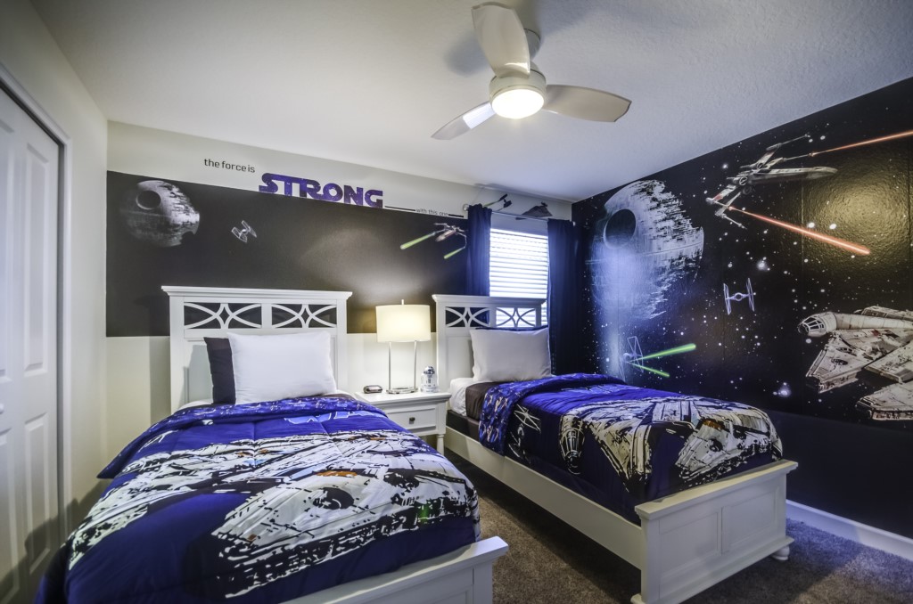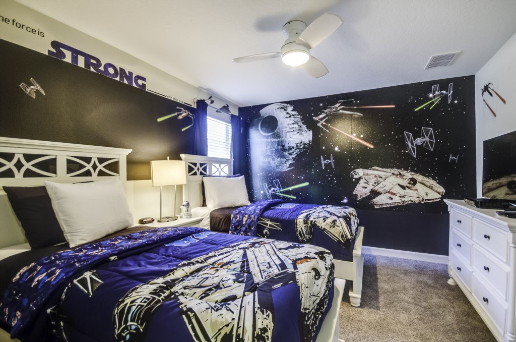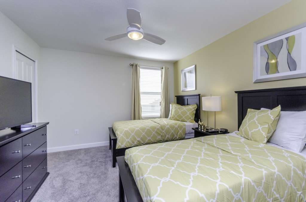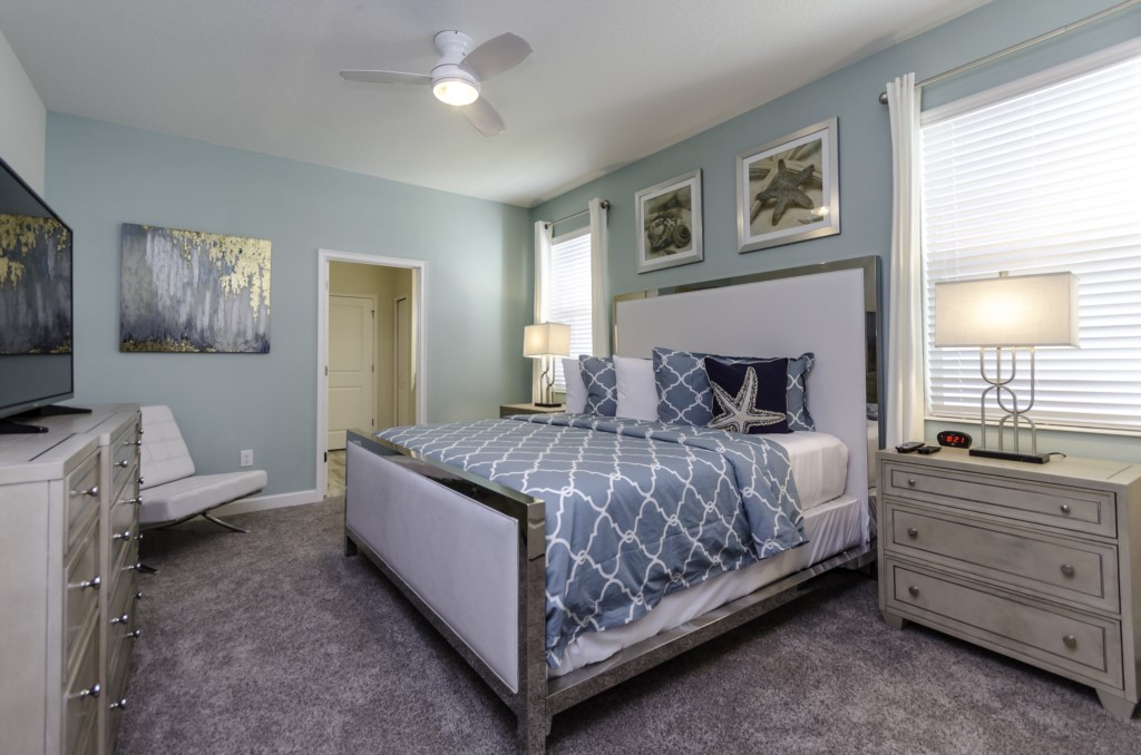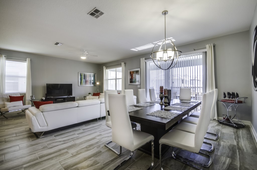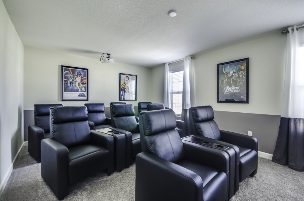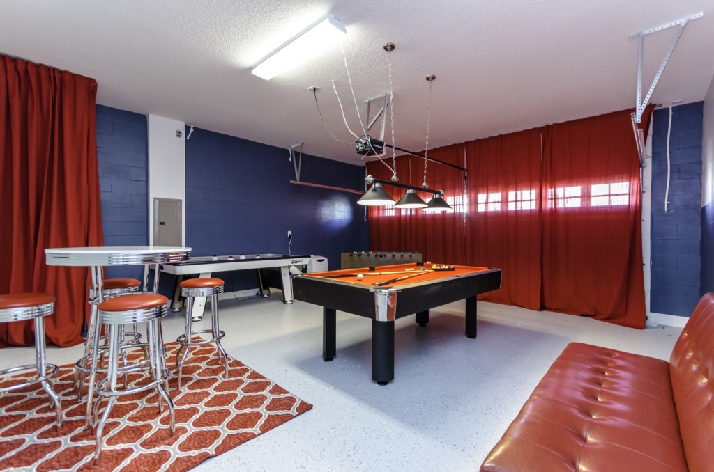 You will feel immediately relaxed as you enter our 8 bedroom, 5 bathroom executive home which sleeps up to 16 in style. We have paid great attention to every detail when we furnished this home and we hope you will enjoy it as much as we do with our own family. With 5 king bedrooms, 1 queen bedroom, 1 full bunk with twin below and 1 room with 2 twins , there is plenty of room for everyone to spread out and relax after a day out or just to stay in and take it easy. Each room has a different feel so all guests should be equally happy with their room, and all have wall mounted flat screen LED Tv’s. The dining room and living area offers plenty of space to congregate and enjoy meals together, and the bright and airy kitchen has all the appliances that you would expect in your own home. (There is also a full-size washer and dryer). You can also enjoy a game of pool in the game room, or watch a movie in the huge loft area, or leave the kids to play on the PlayStation. Or why not take a dip in the large pool or relax in the spa, even in the evening as the pool area is south facing? This home will bring all the excitement of Orlando to you, and have the entire group talking about your trip for months to come.