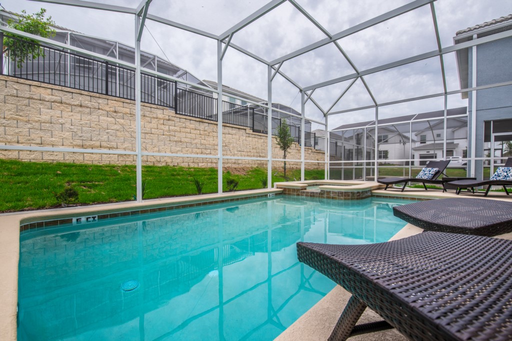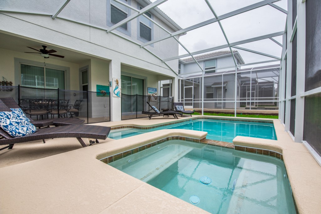 To complete your experience outside you will find an inviting deck space complete with pool and bubbling spa, as well as an outside dining table with chairs and sun loungers. With all of this and more, this home provides everything you need to relax and enjoy your Florida vacation in style.