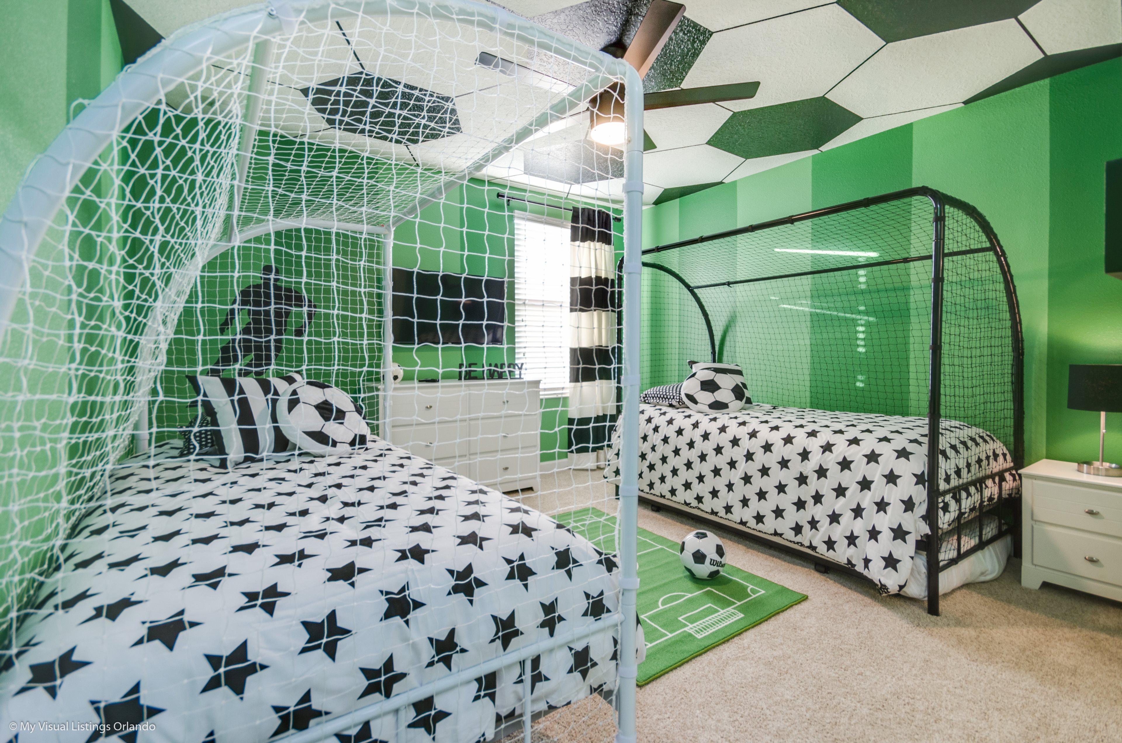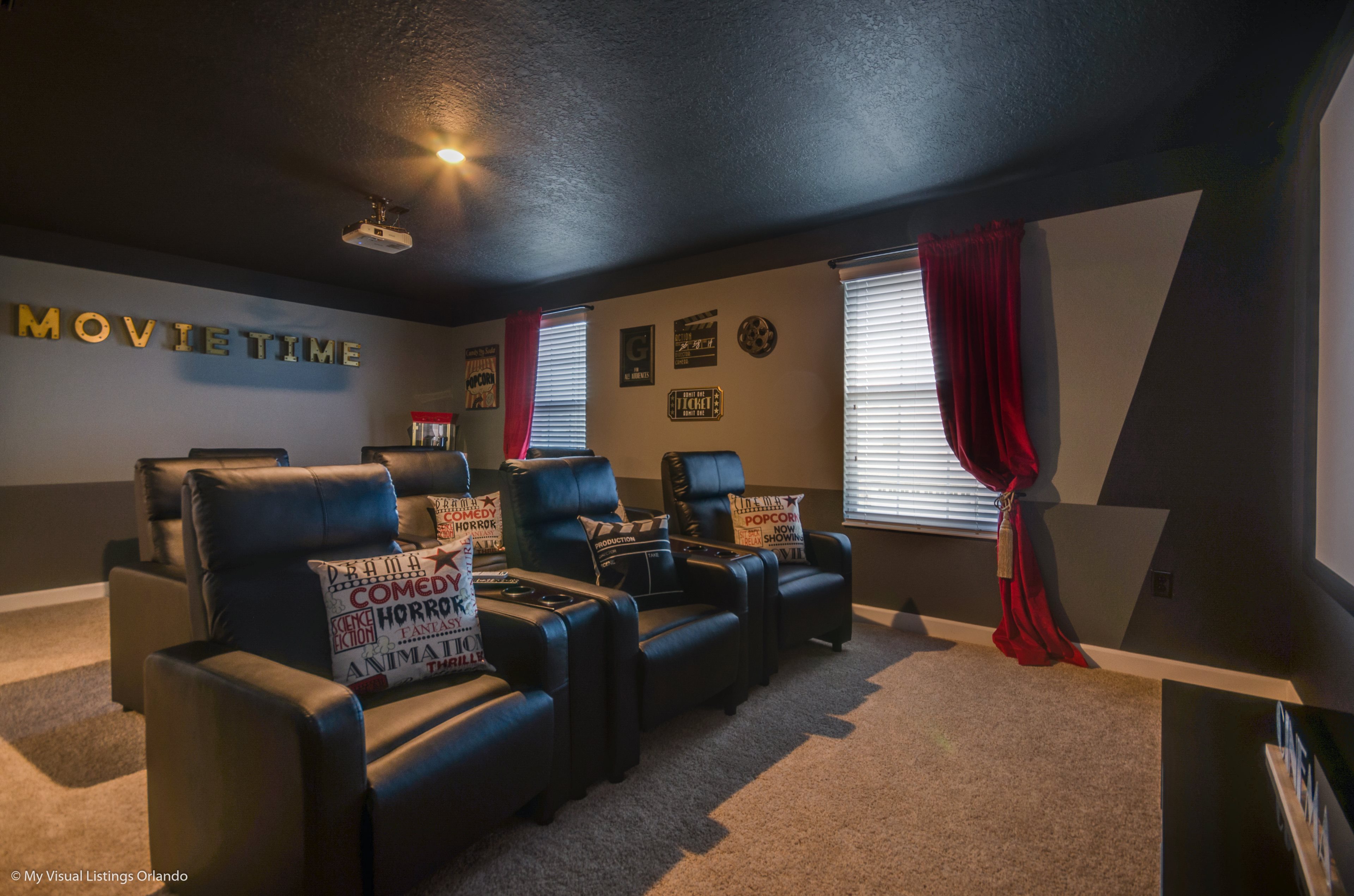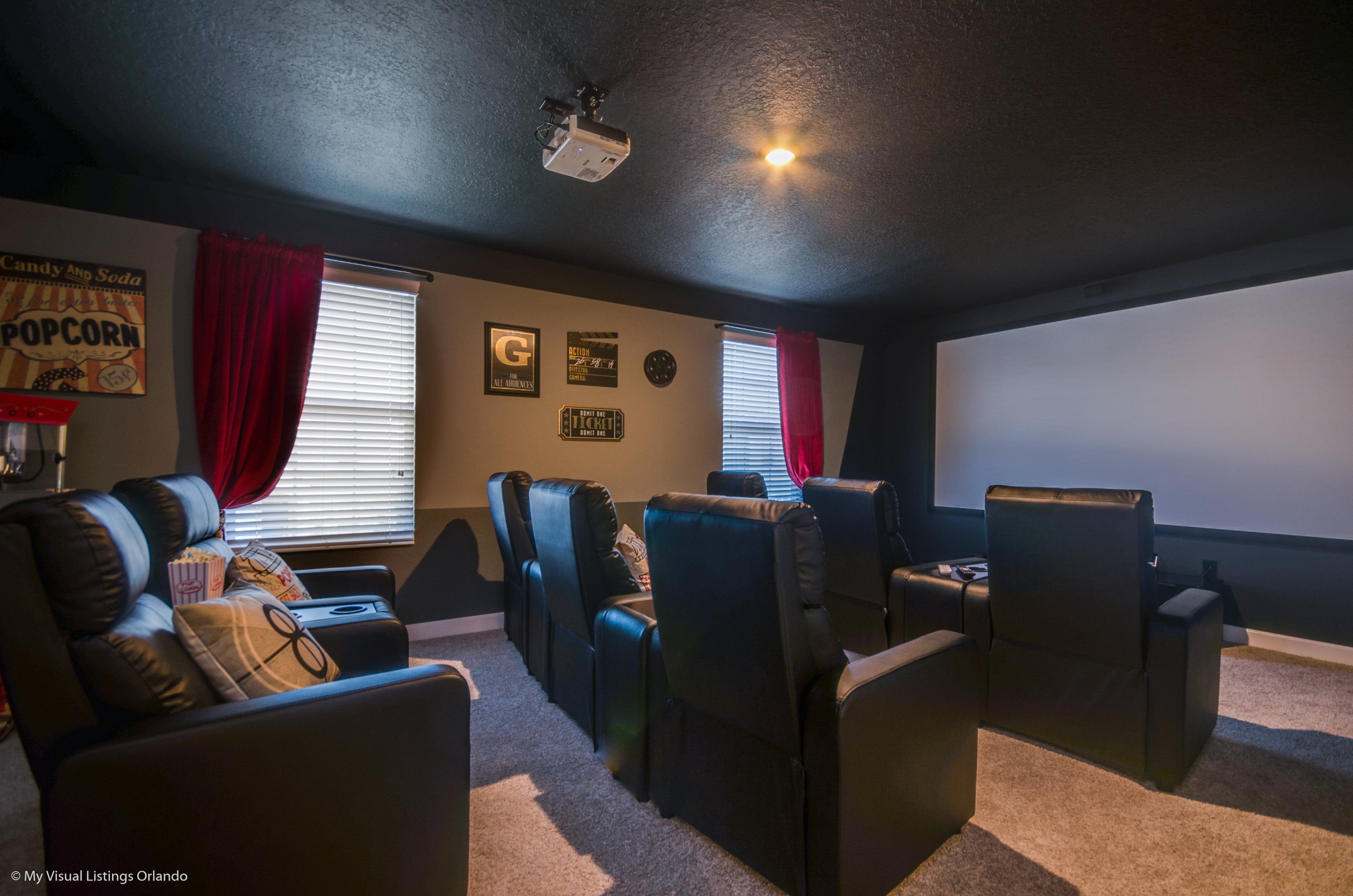 You will feel immediately relaxed as you enter our 8 bedroom, 5 bathroom executive home which sleeps up to 16 in style. We have paid great attention to every detail when we furnished this home and we hope you will enjoy it as much as we do with our own family. With 5 king bedrooms, 1 queen bedroom, 1 full bunk with twin below and 1 room with 2 twins , there is plenty of room for everyone to spread out and relax after a day out or just to stay in and take it easy. Each room has a different feel so all guests should be equally happy with their room, and all have wall mounted flat screen LED Tv’s. The dining room and living area offers plenty of space to congregate and enjoy meals together, and the bright and airy kitchen has all the appliances that you would expect in your own home. (There is also a full-size washer and dryer). You can also enjoy a game of pool in the game room, or watch a movie in the huge loft area, or leave the kids to play on the PlayStation. Or why not take a dip in the large pool or relax in the spa, even in the evening as the pool area is south facing? This home will bring all the excitement of Orlando to you, and have the entire group talking about your trip for months to come.