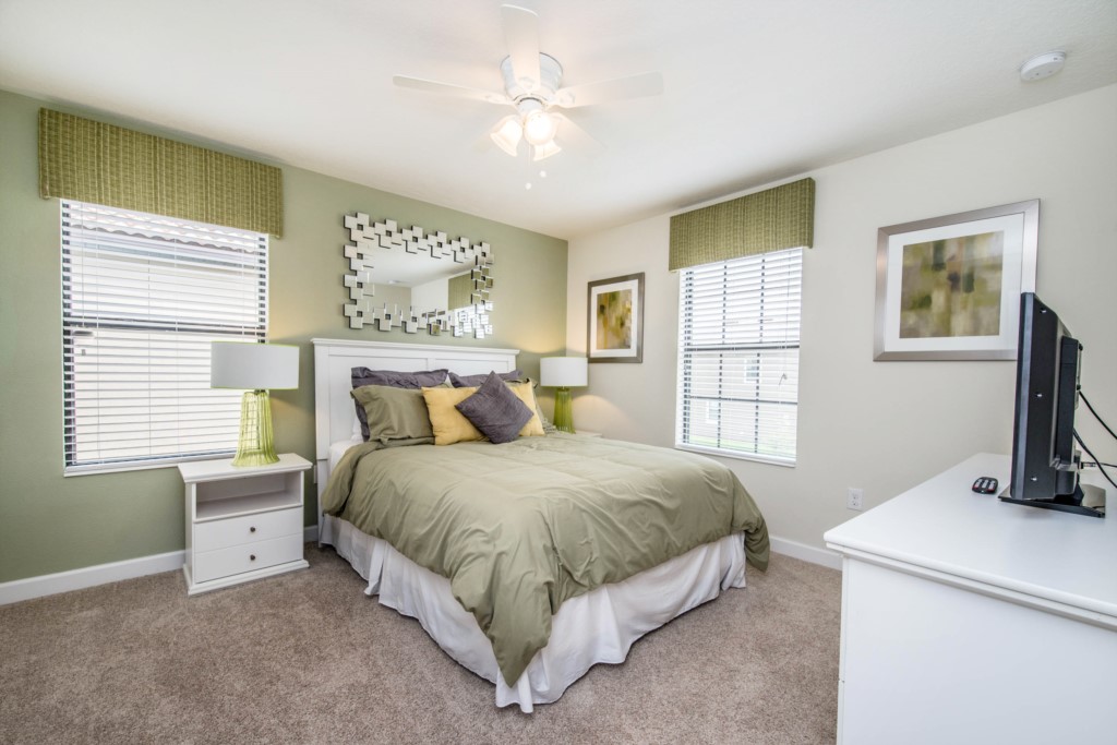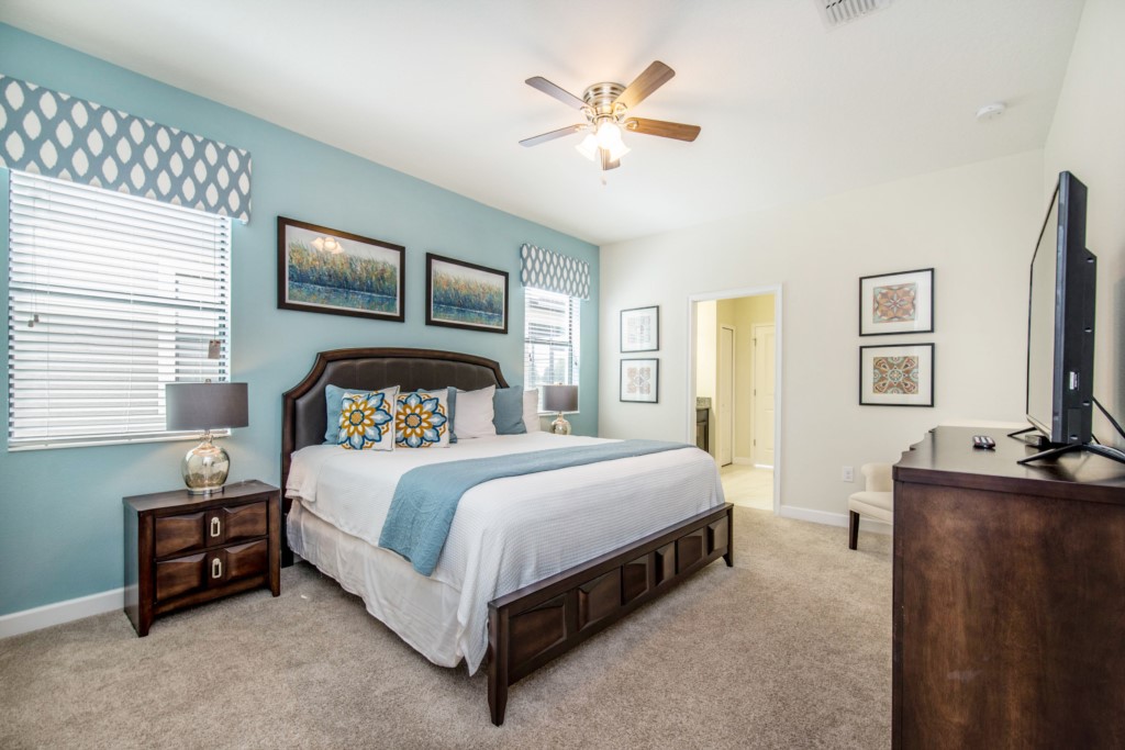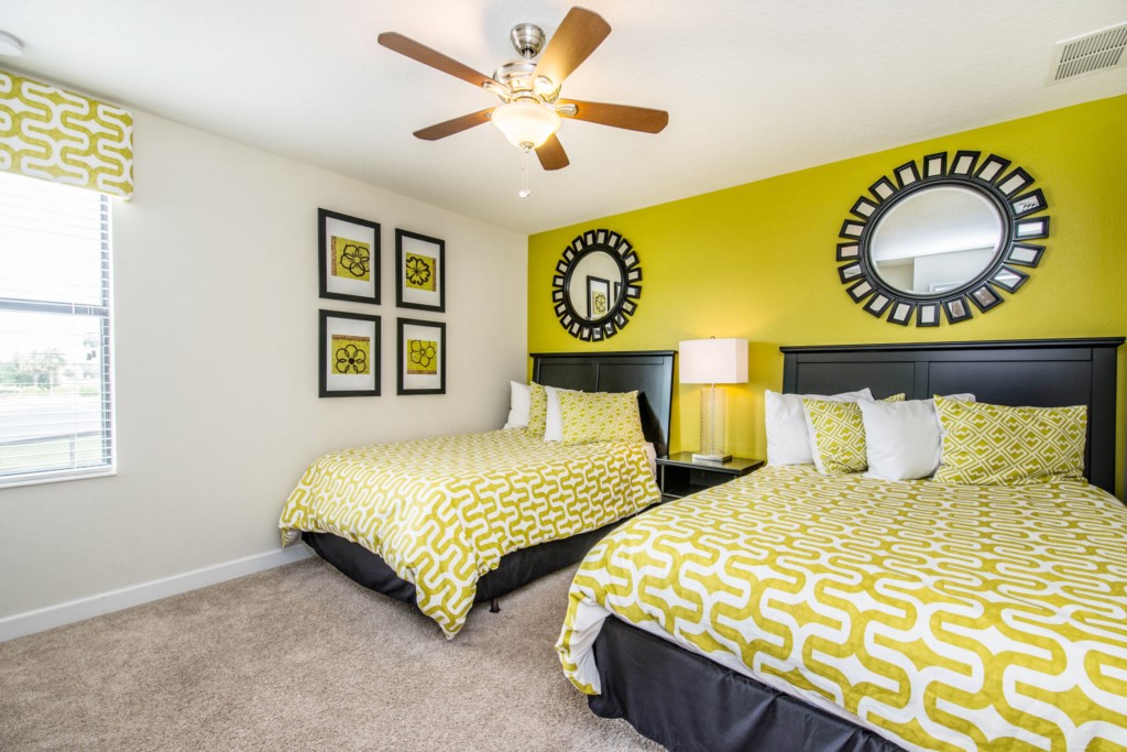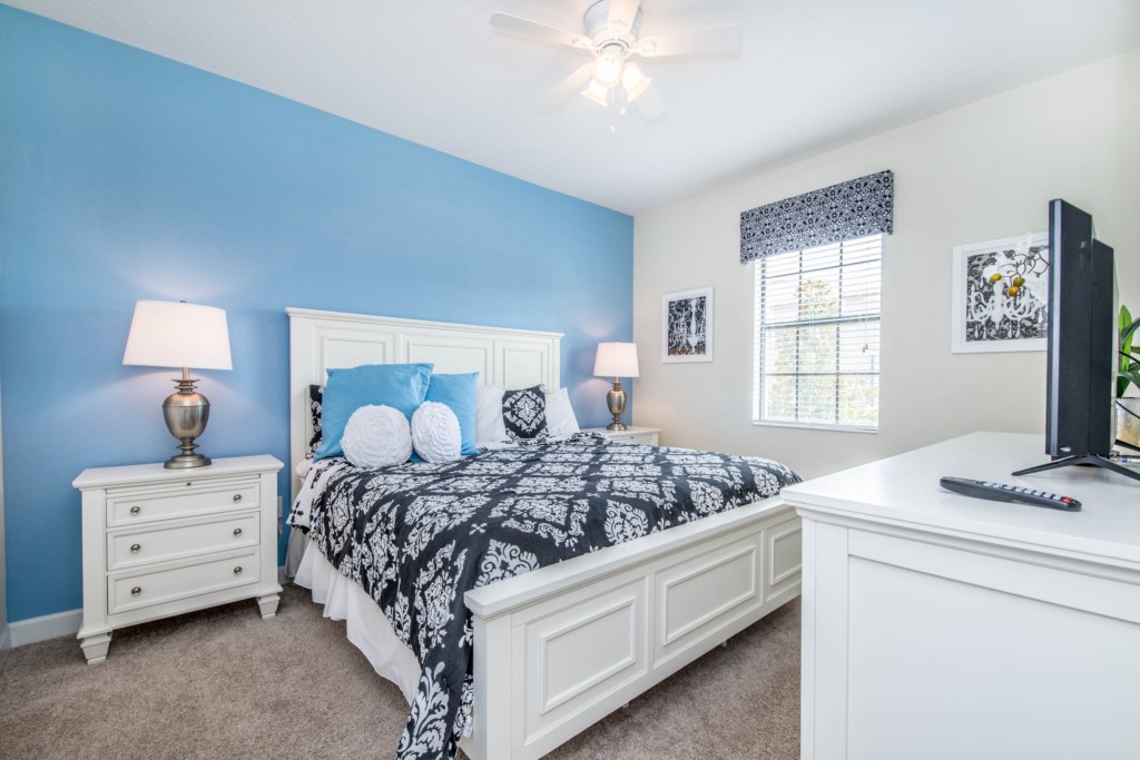 The home is professionally decorated and features luxurious amenities such as a leather furniture package, a 55-inch flat screen TV in the living area and a 43’’ flat screen TV in the upstairs living area, both have blu-ray. AND, there is a separate movie theatre featuring 7 movie-theater style lounge chairs. The kitchen includes granite countertops, stainless steel appliances and upgraded cabinetry and backsplash. The large dining room and kitchen bar seats many so all can dine together.