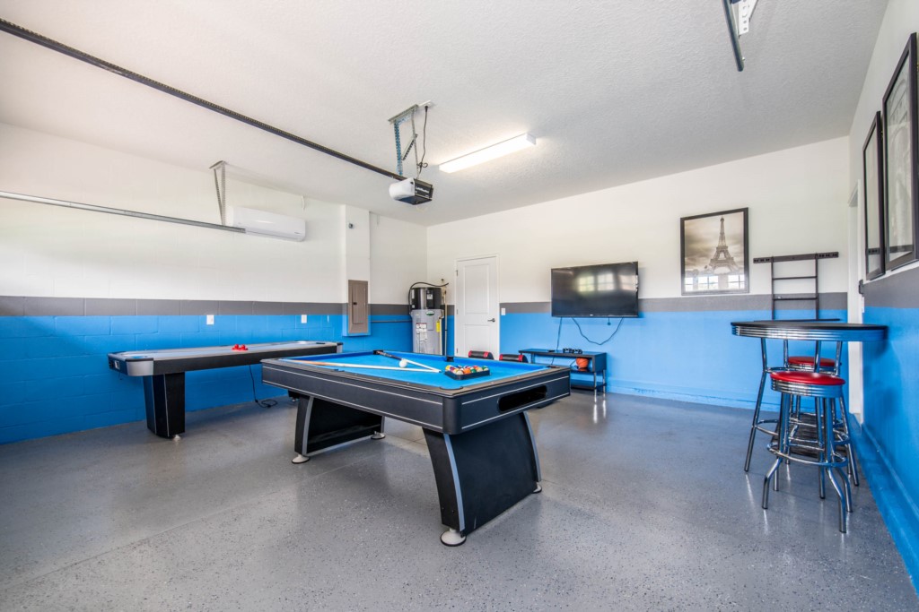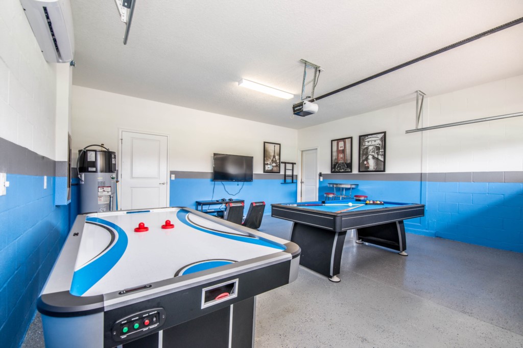 If you want to cool off, hop in the large pool or unwind in the hot-tub. There is also plenty of seating out on the lanai for pool-side dining along with chaise loungers for relaxing. There is even an air-conditioned game room featuring billiards, air hockey, a 43-inch flat screen and a PS3. This home has attained the prestigious Grand Collections status and has FREE WIFI and a full-size washer and dryer.