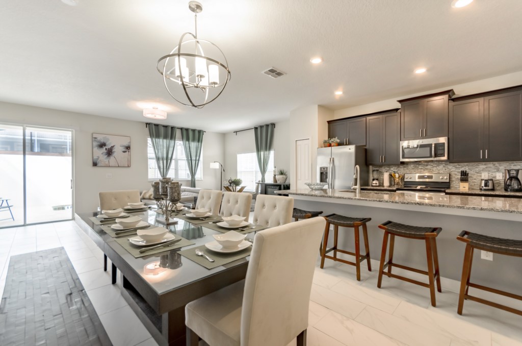 This stylish 5 bedroom townhome is a great choice for your family vacation base. With 5 bedrooms and 4 bathrooms, open floorplan, modern kitchen and plunge pool area this home offers just what you need for that at home feeling while on vacation. After a long day enjoying the theme parks and all Orlando has to offer you will be able to escape the city and truly relax at Festival of Champions townhome!