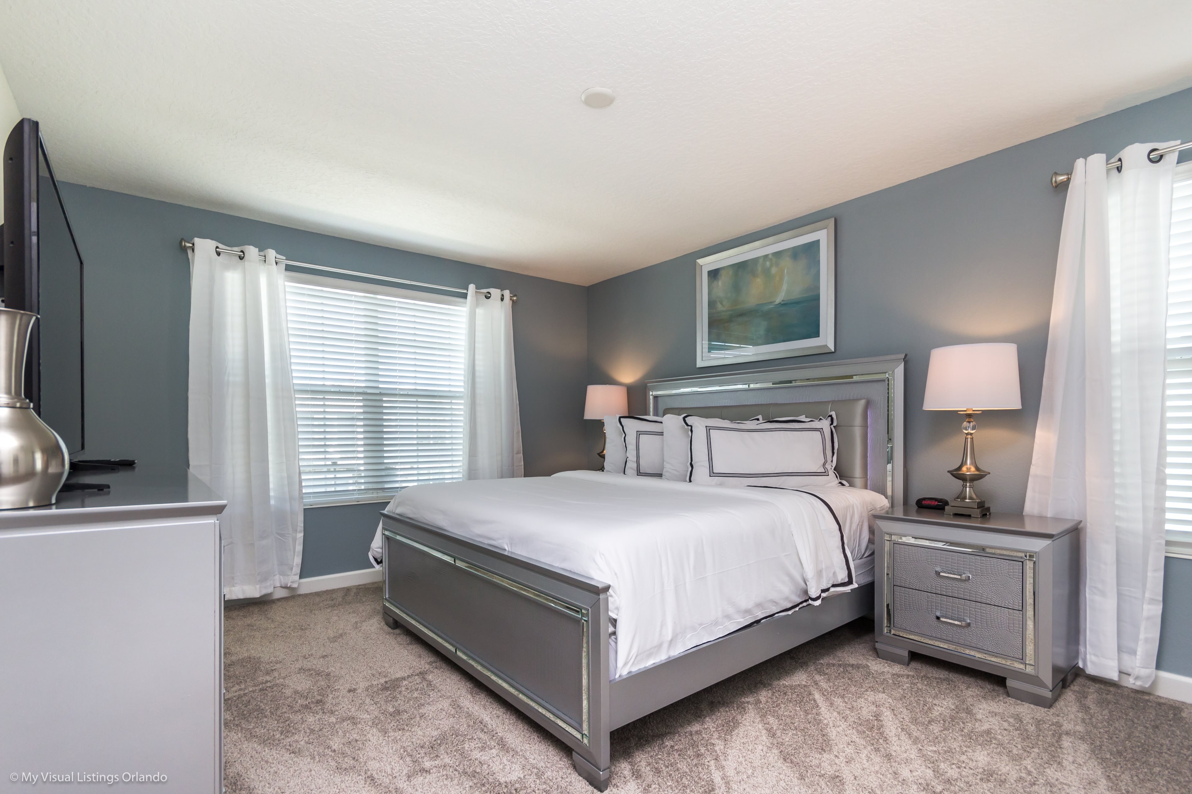 The villa has 3 King Bedrooms 1 Queen Bedrooms and 2 room with twin beds and alll rooms have cable tv and flatscreen tvs