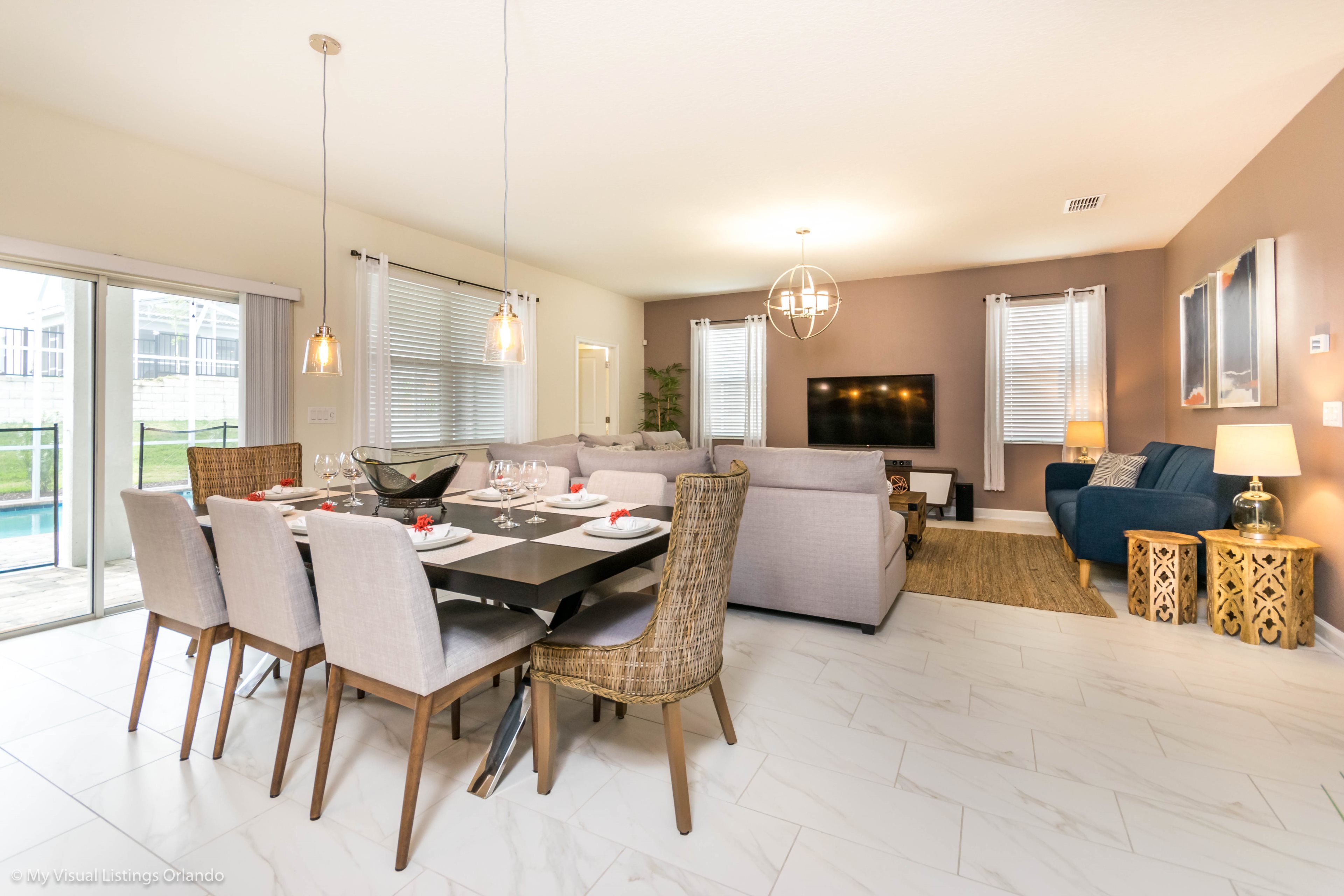 This spacious 6 bedroom, 6 bath pool home offers luxurious and spacious living for families visiting the Orlando area theme parks - it's only a short, 8 mile drive away from Mickey and all his friends, located on the fabulous ChampionsGate Resort.
