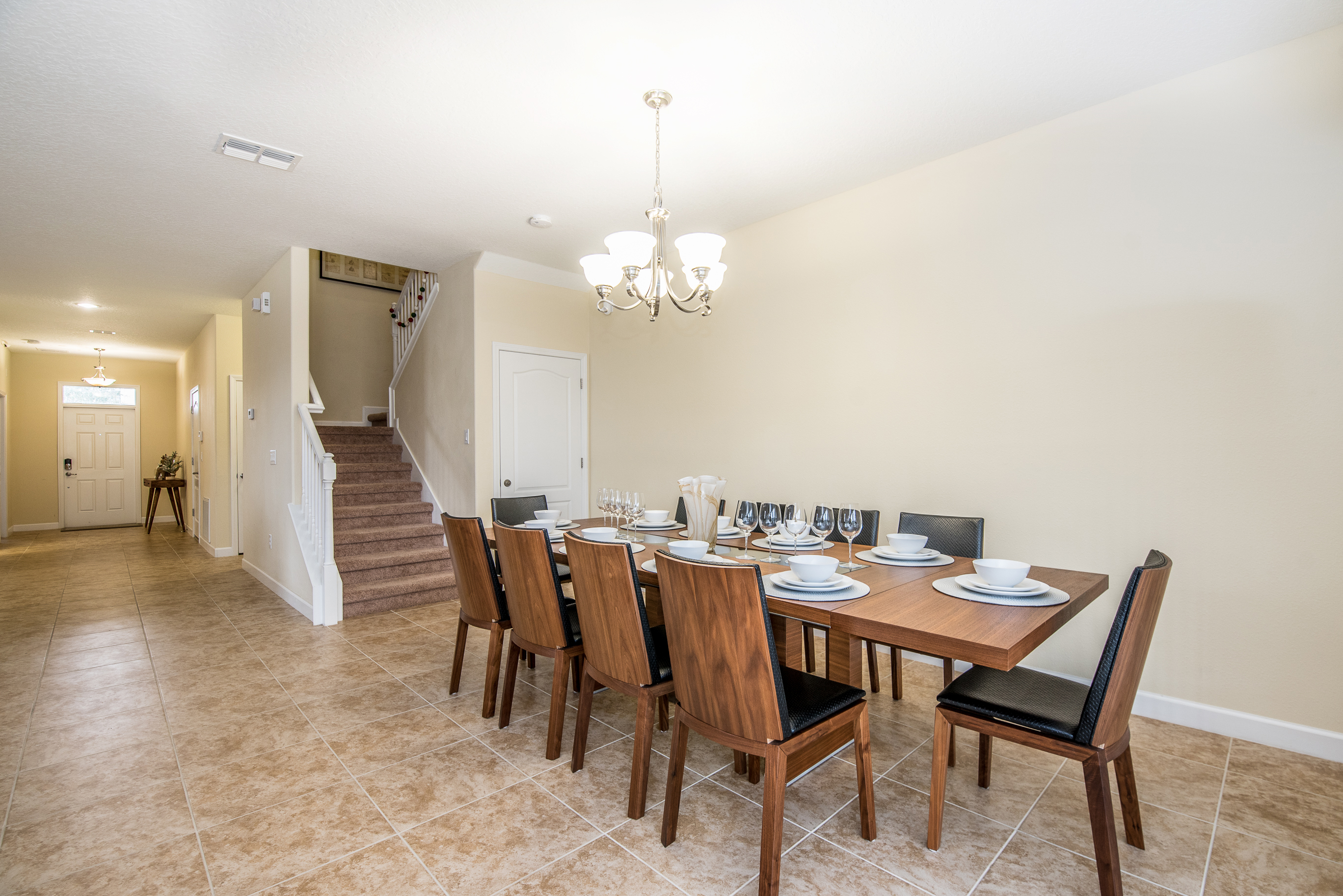 You will feel immediately relaxed as you enter our 8 bedroom, 5 bathroom executive home which sleeps up to 16 in style. We have paid great attention to every detail when we furnished this home and we hope you will enjoy it as much as we do with our own family. With 4 king bedrooms, 2 queen bedroom 2 twins rooms , there is plenty of room for everyone to spread out and relax after a day out or just to stay in and take it easy. Each room has a different feel so all guests should be equally happy with their room, and all have wall mounted flat screen LED Tv’s. The dining room and living area offers plenty of space to congregate and enjoy meals together, and the bright and airy kitchen has all the appliances that you would expect in your own home. (There is also a full-size washer and dryer). You can also enjoy a game of pool in the game room, or watch a movie in the huge loft area, or leave the kids to play on the PlayStation. Or why not take a dip in the large pool or relax in the spa, even in the evening as the pool area is south facing? This home will bring all the excitement of Orlando to you, and have the entire group talking about your trip for months to come.