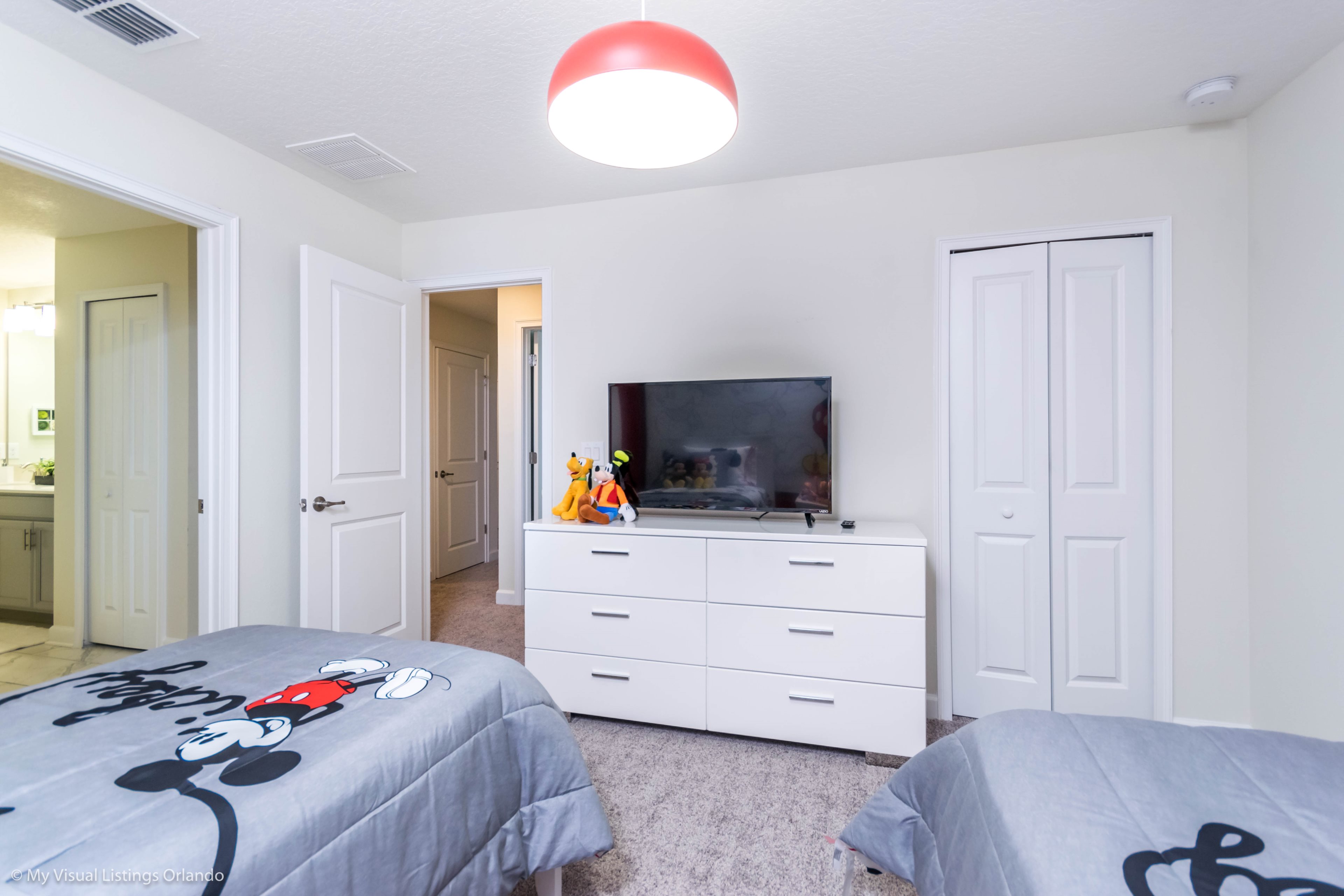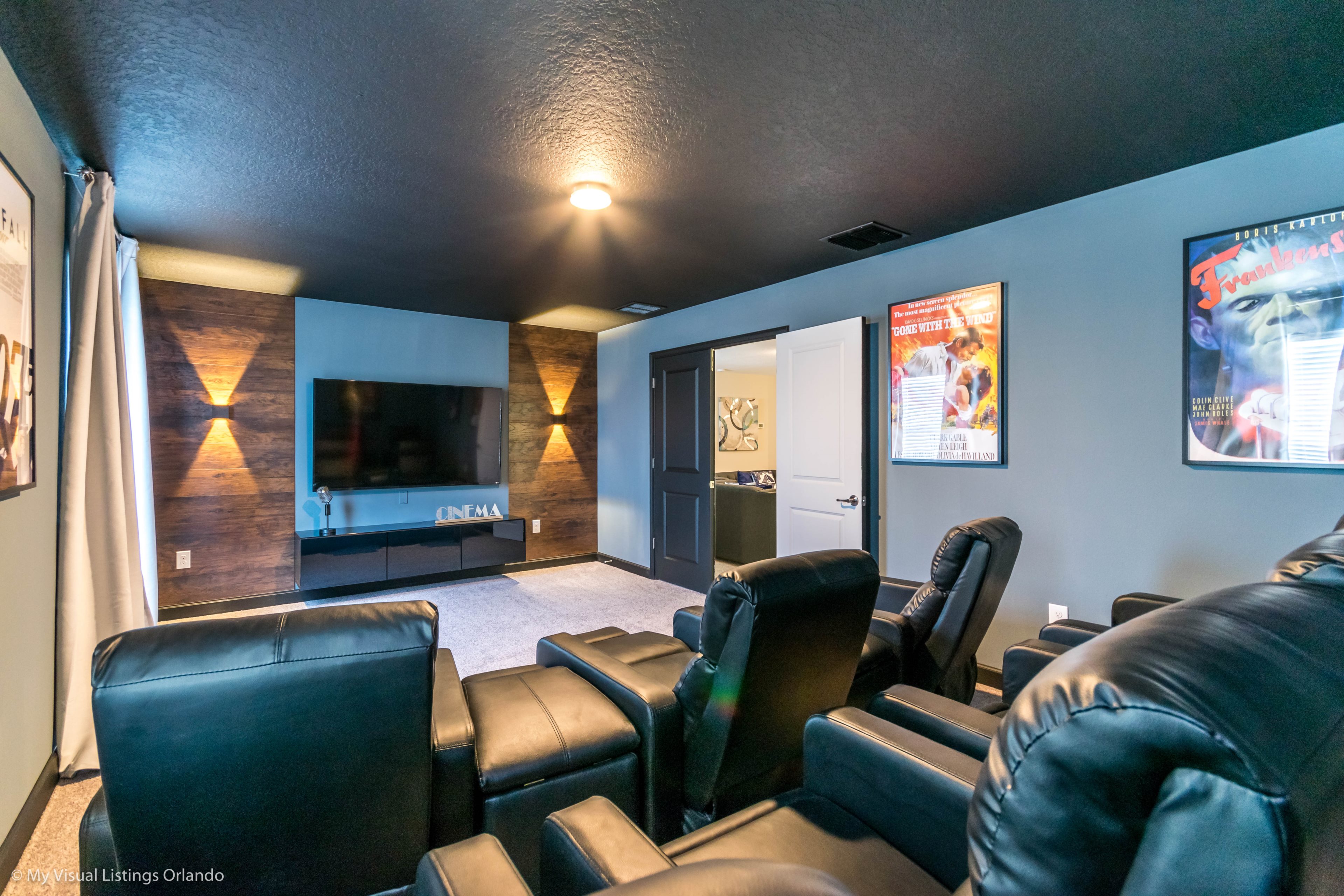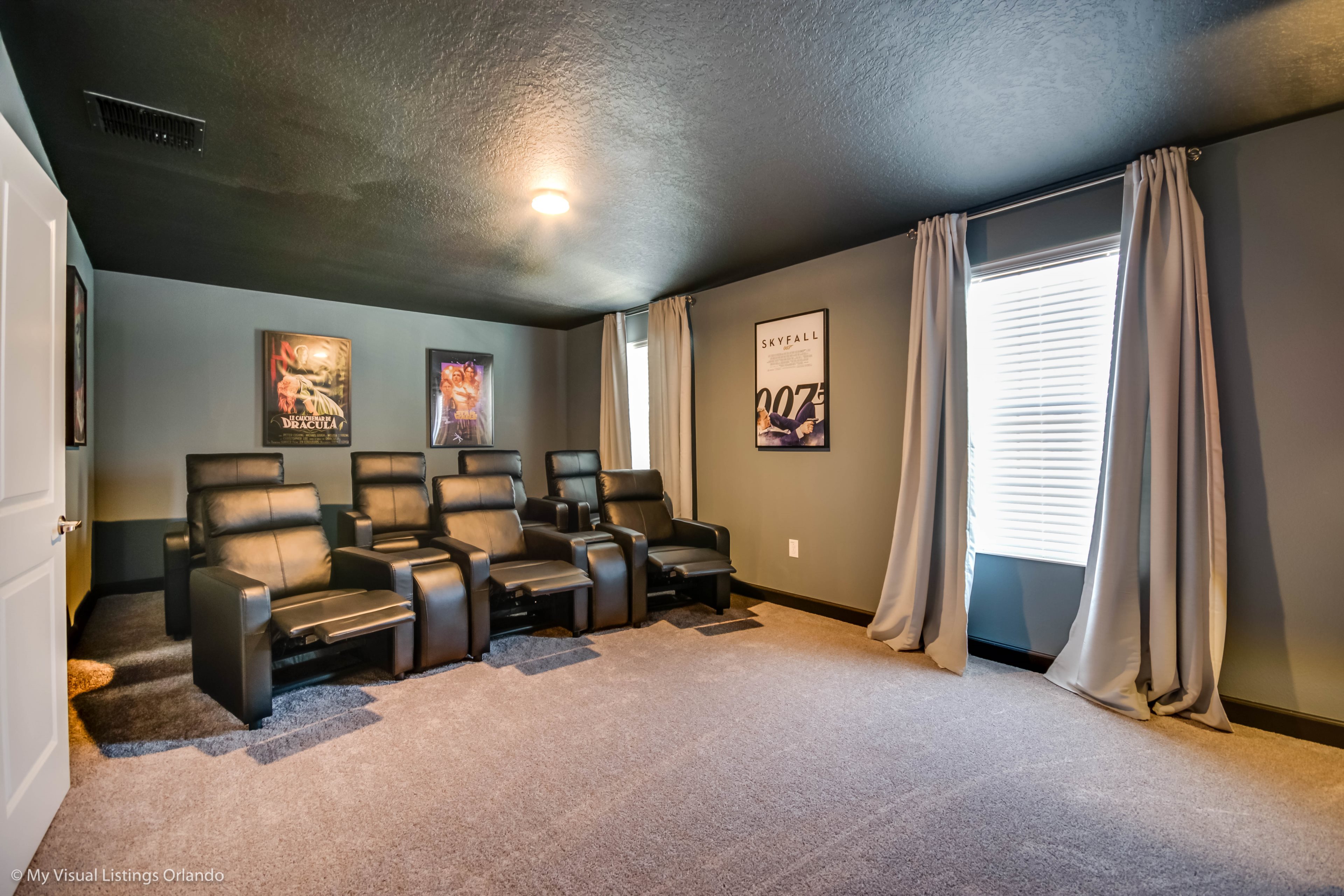 You will feel immediately relaxed as you enter our 8 bedroom, 5 bathroom executive home which sleeps up to 16 in style. We have paid great attention to every detail when we furnished this home and we hope you will enjoy it as much as we do with our own family. With 2 king bedrooms, 2 queen bedroom 2 twins rooms 1 room with 2 doubles , there is plenty of room for everyone to spread out and relax after a day out or just to stay in and take it easy. Each room has a different feel so all guests should be equally happy with their room, and all have wall mounted flat screen LED Tv’s. The dining room and living area offers plenty of space to congregate and enjoy meals together, and the bright and airy kitchen has all the appliances that you would expect in your own home. (There is also a full-size washer and dryer). You can also enjoy a game of pool in the game room, or watch a movie in the huge loft area, or leave the kids to play on the PlayStation. Or why not take a dip in the large pool or relax in the spa, even in the evening as the pool area is south facing? This home will bring all the excitement of Orlando to you, and have the entire group talking about your trip for months to come.