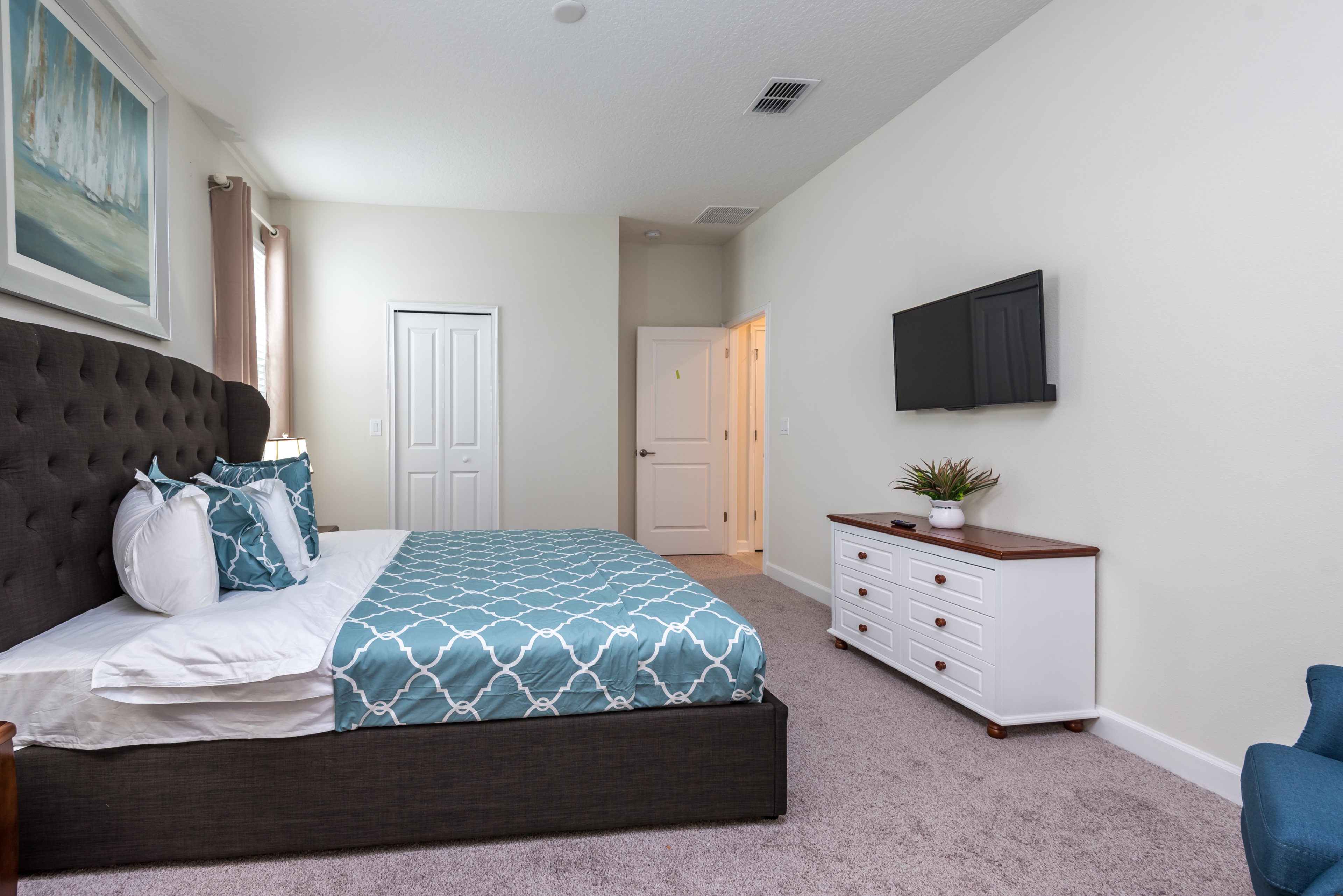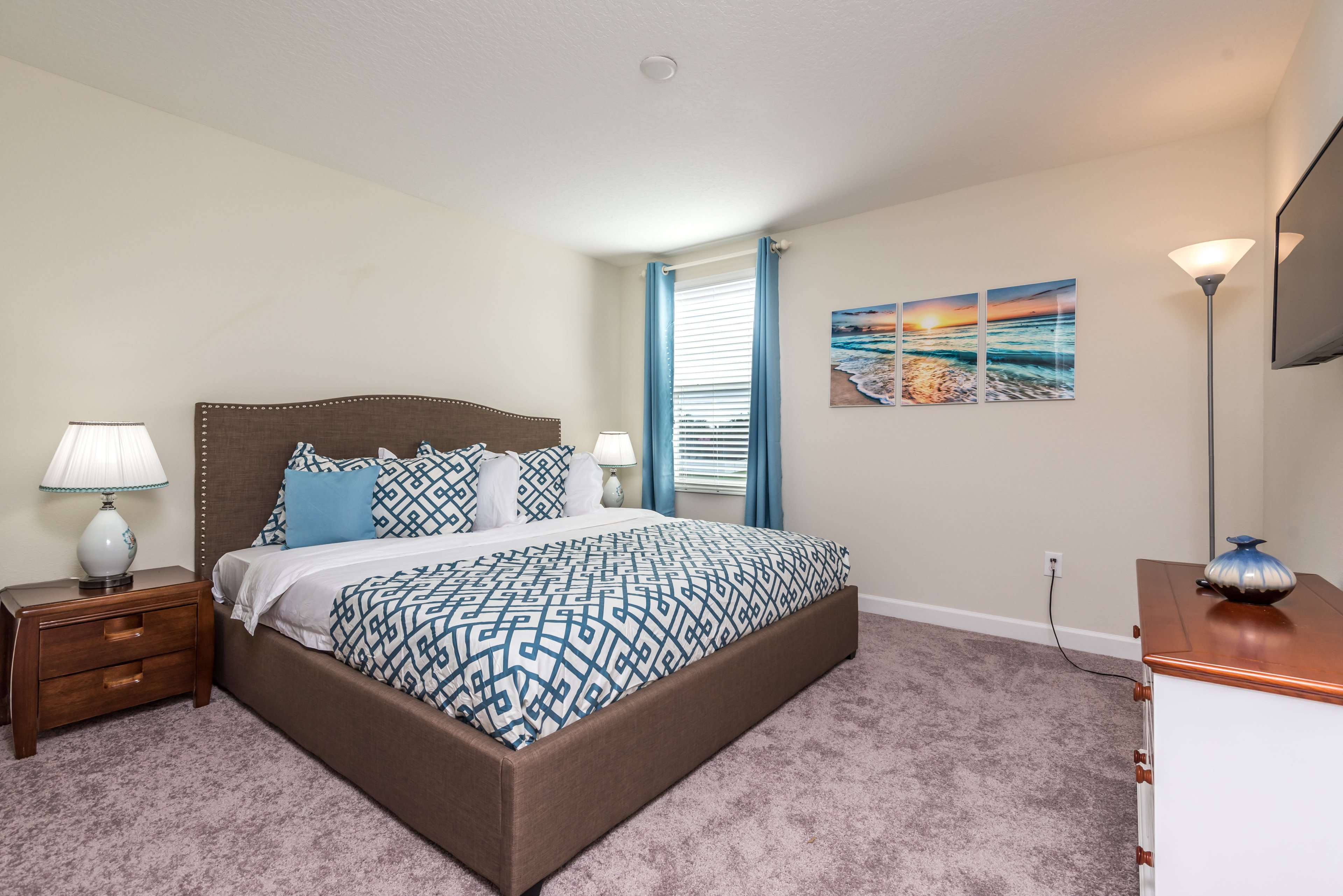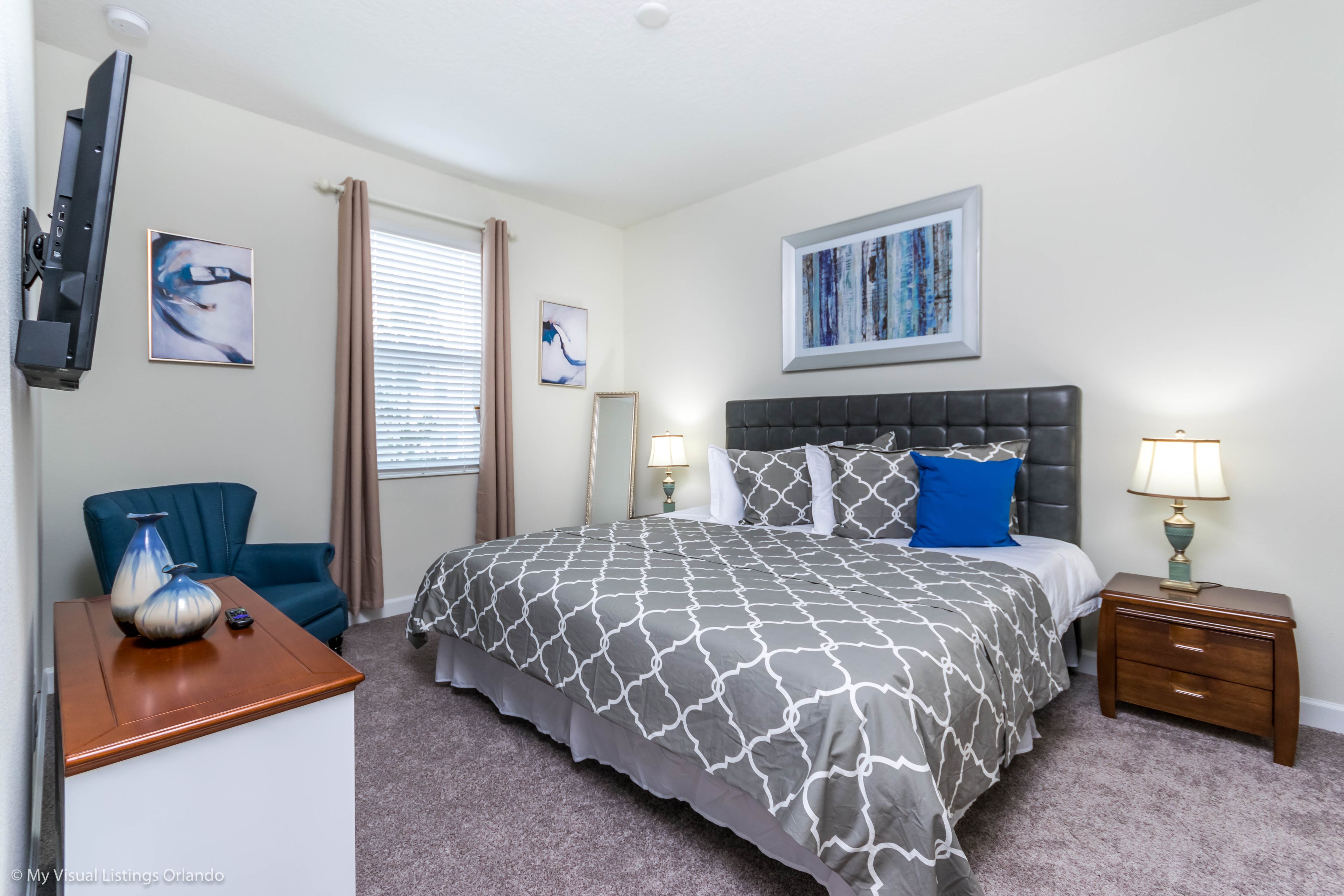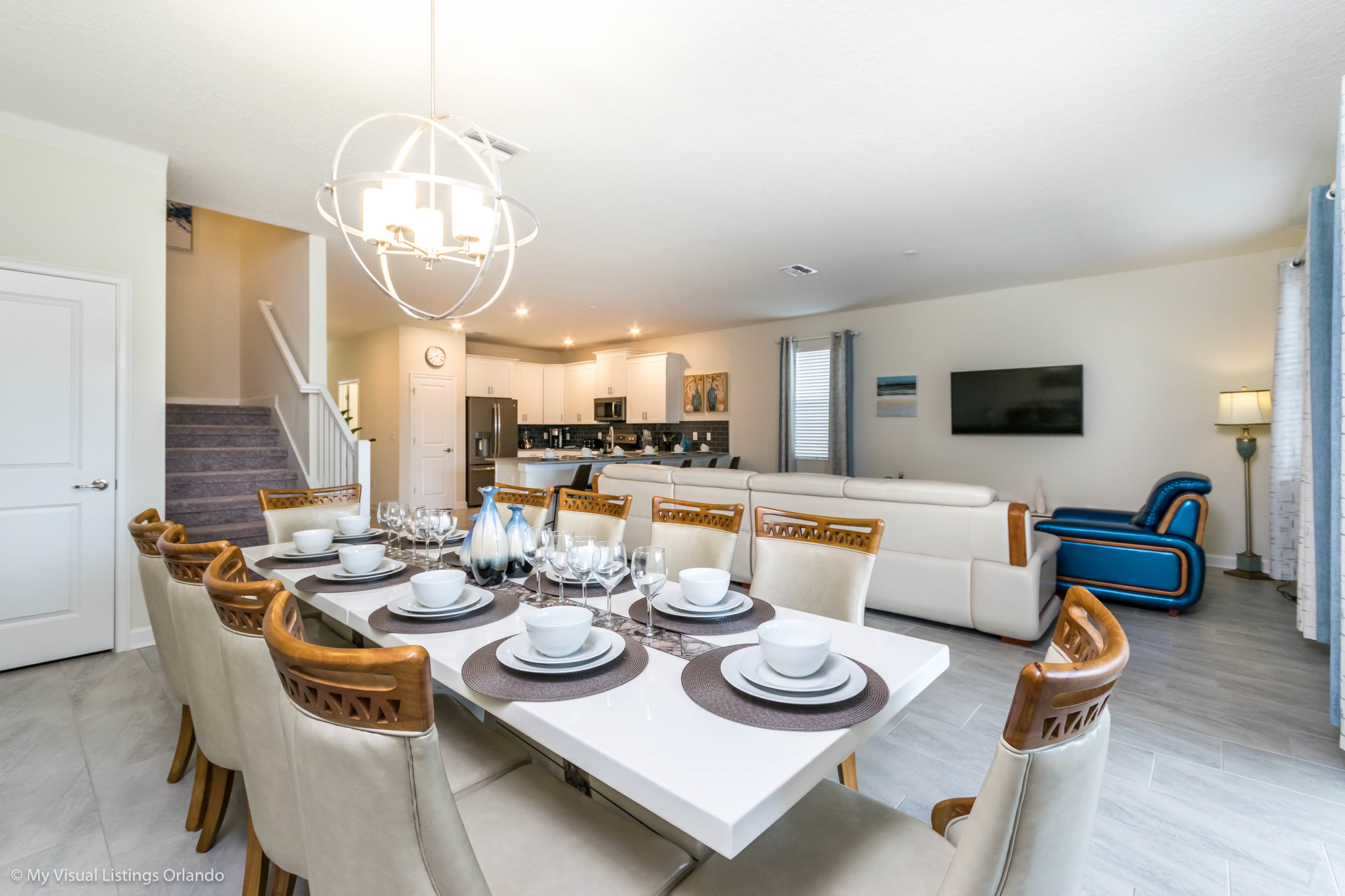 You will feel immediately relaxed as you enter our 8 bedroom, 5 bathroom executive home which sleeps up to 16 in style. We have paid great attention to every detail when we furnished this home and we hope you will enjoy it as much as we do with our own family. With 4 king bedrooms, 2 queen bedroom 2 twins rooms , there is plenty of room for everyone to spread out and relax after a day out or just to stay in and take it easy. Each room has a different feel so all guests should be equally happy with their room, and all have wall mounted flat screen LED Tv’s. The dining room and living area offers plenty of space to congregate and enjoy meals together, and the bright and airy kitchen has all the appliances that you would expect in your own home. (There is also a full-size washer and dryer). You can also enjoy a game of pool in the game room, or watch a movie in the huge loft area, or leave the kids to play on the PlayStation. Or why not take a dip in the large pool or relax in the spa, even in the evening as the pool area is south facing? This home will bring all the excitement of Orlando to you, and have the entire group talking about your trip for months to come.