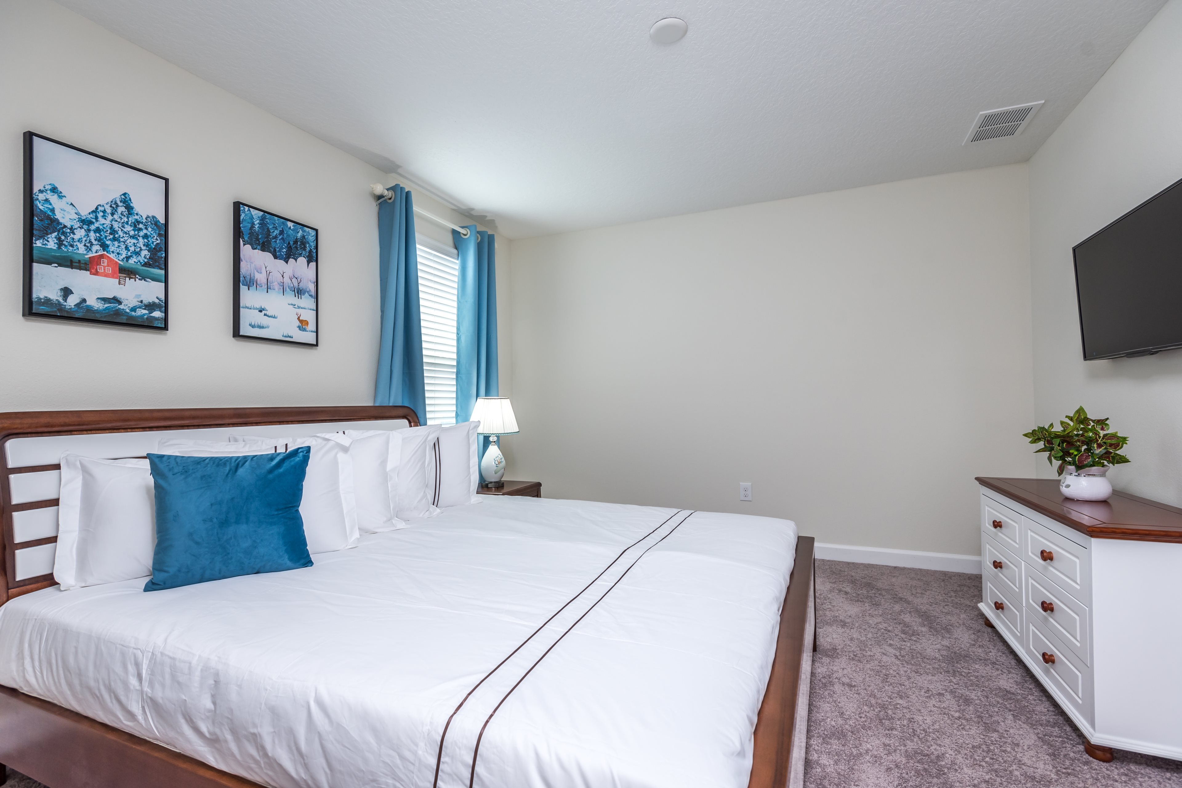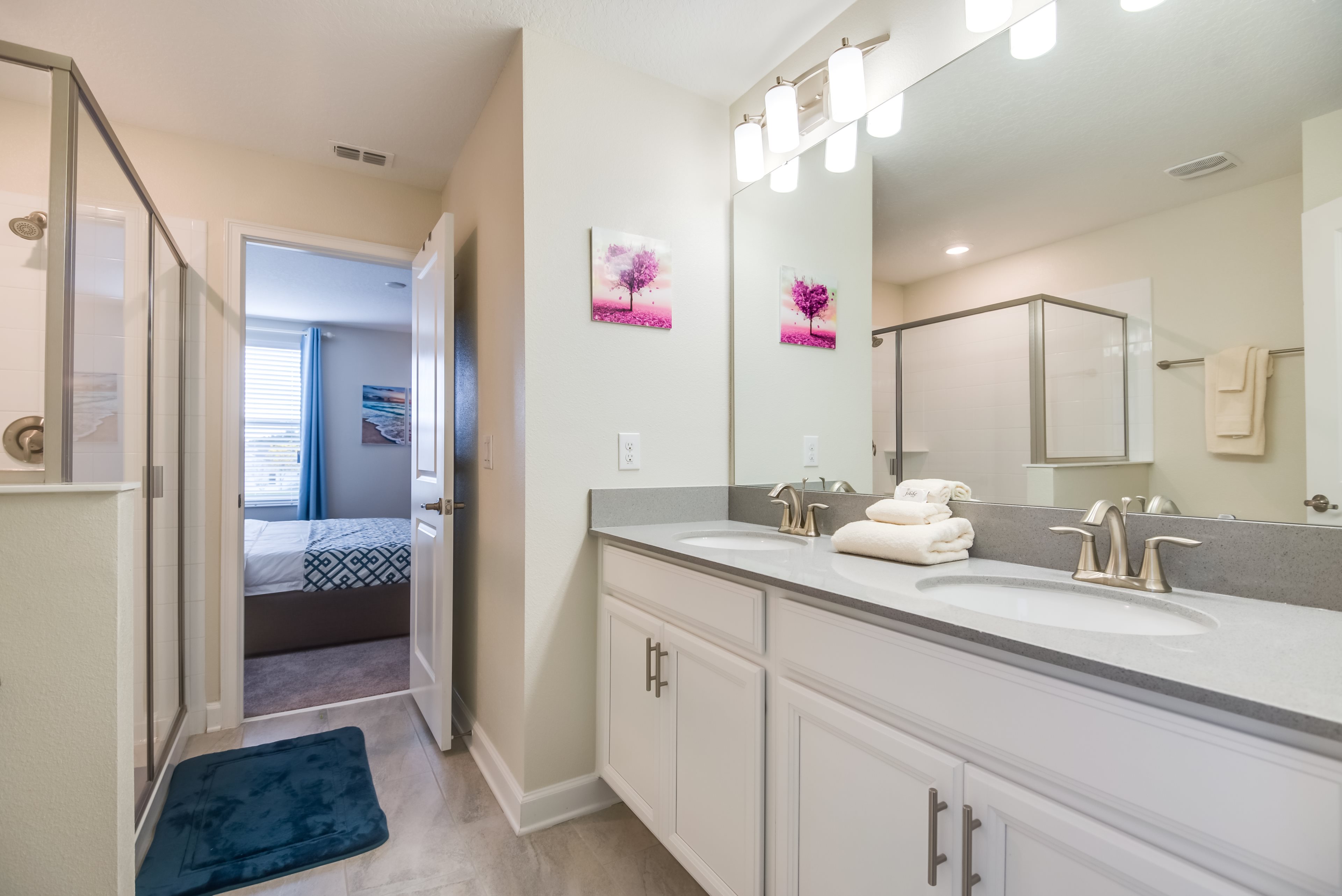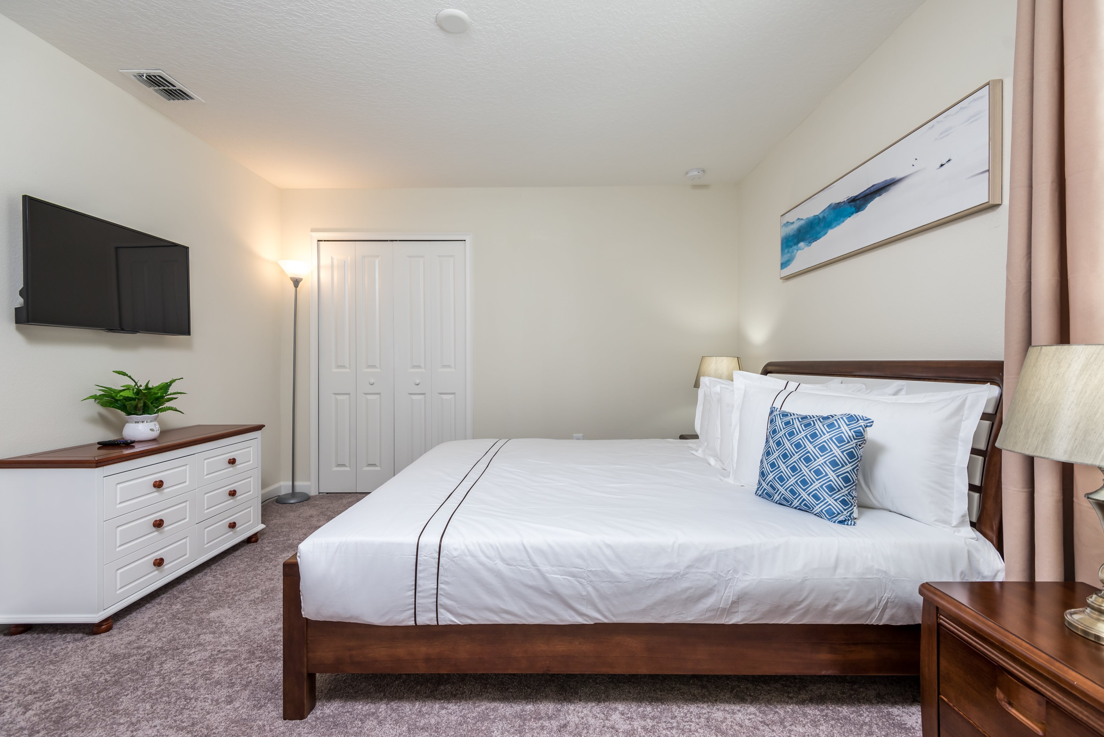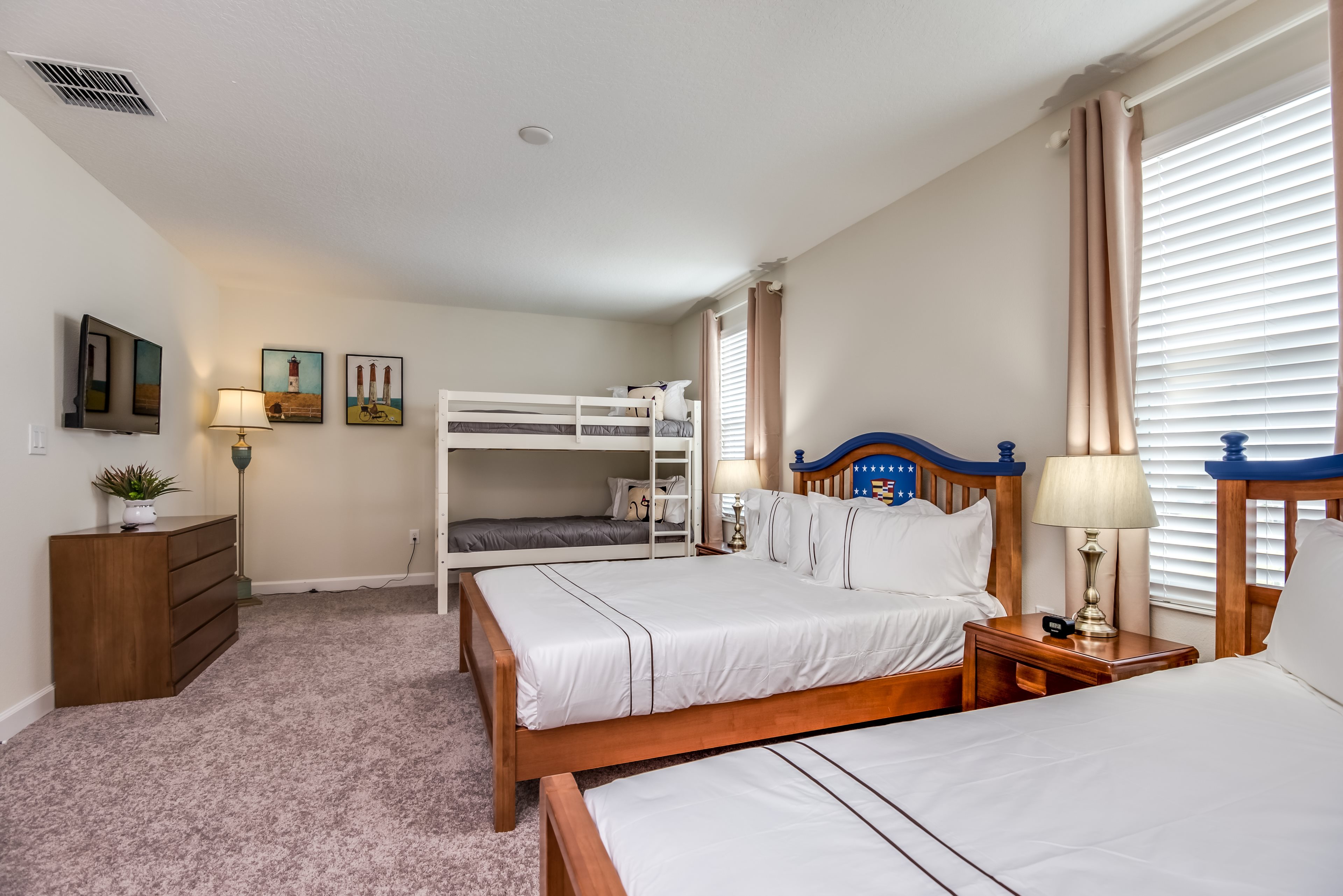 You will feel immediately relaxed as you enter our 8 bedroom, 5 bathroom executive home which sleeps up to 16 in style. We have paid great attention to every detail when we furnished this home and we hope you will enjoy it as much as we do with our own family. With 4 king bedrooms, 2 queen bedroom 2 twins rooms , there is plenty of room for everyone to spread out and relax after a day out or just to stay in and take it easy. Each room has a different feel so all guests should be equally happy with their room, and all have wall mounted flat screen LED Tv’s. The dining room and living area offers plenty of space to congregate and enjoy meals together, and the bright and airy kitchen has all the appliances that you would expect in your own home. (There is also a full-size washer and dryer). You can also enjoy a game of pool in the game room, or watch a movie in the huge loft area, or leave the kids to play on the PlayStation. Or why not take a dip in the large pool or relax in the spa, even in the evening as the pool area is south facing? This home will bring all the excitement of Orlando to you, and have the entire group talking about your trip for months to come.