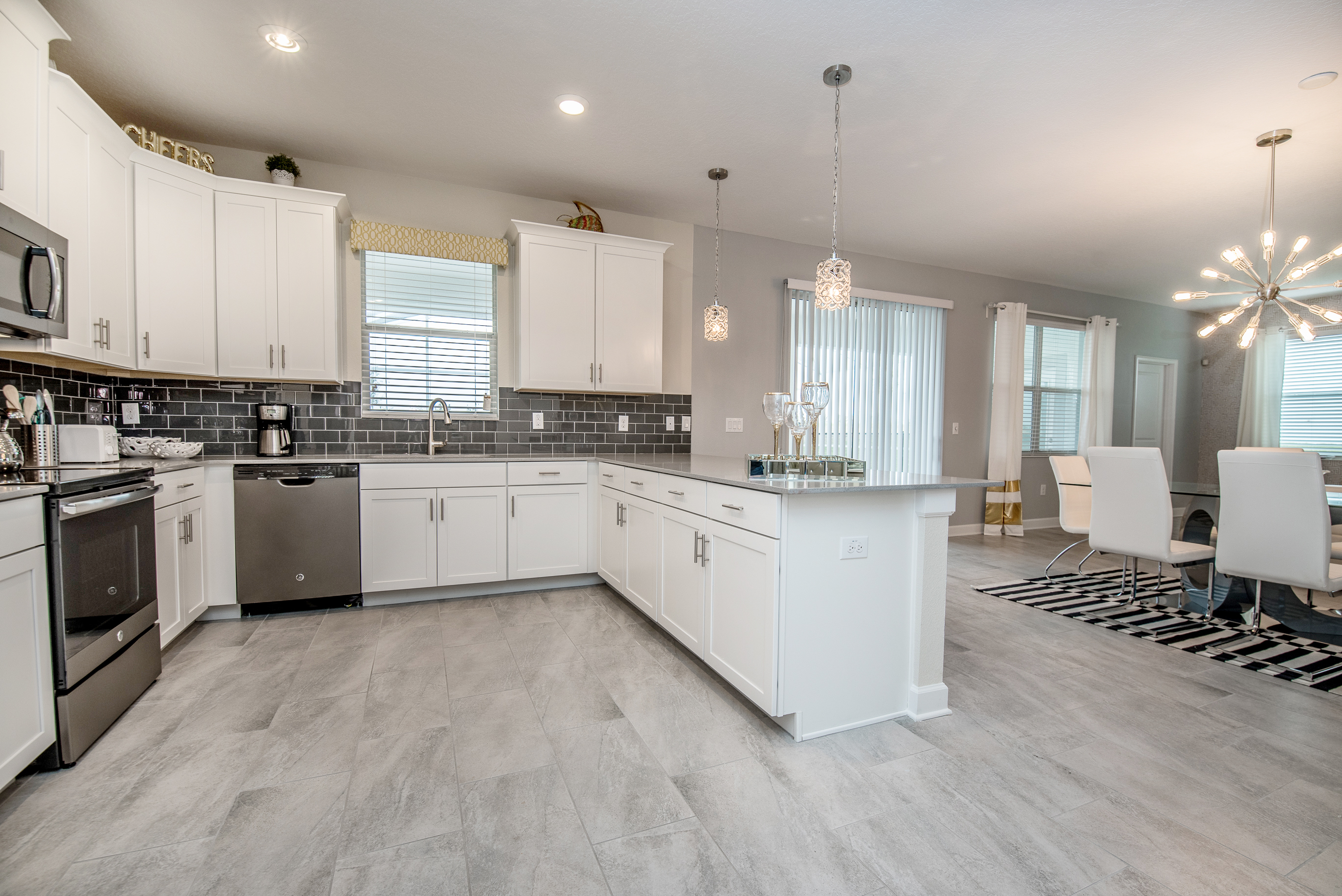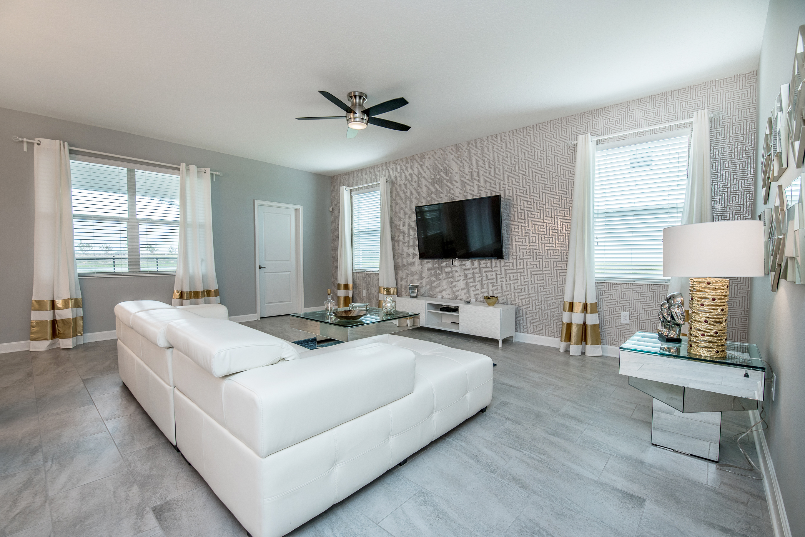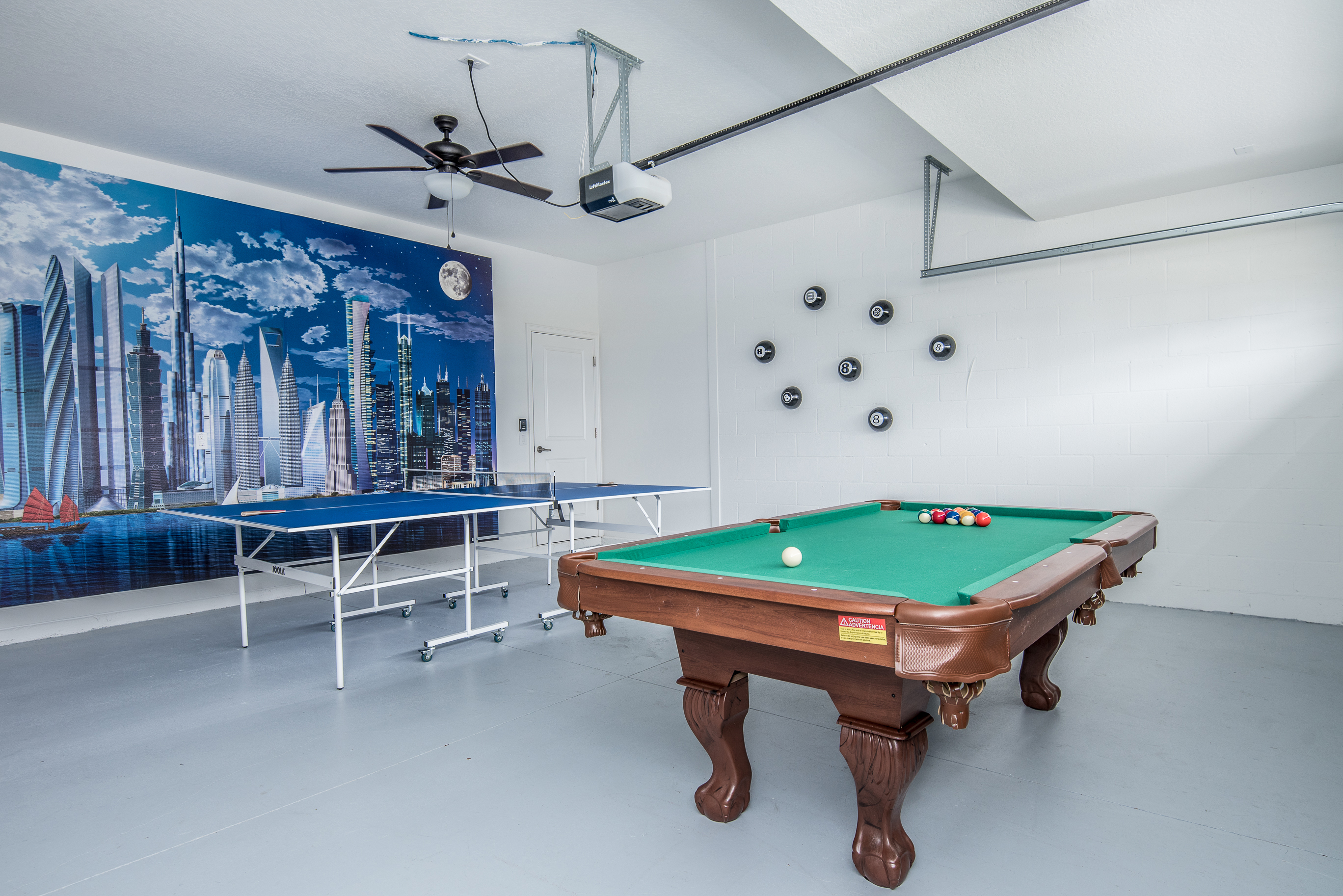 You will feel immediately relaxed as you enter our 6 bedroom, 5 bathroom executive home which sleeps up to 12 in style. We have paid great attention to every detail when we furnished this home and we hope you will enjoy it as much as we do with our own family. With 2 king bedrooms, 2 queen bedroom 2 twins rooms , there is plenty of room for everyone to spread out and relax after a day out or just to stay in and take it easy. Each room has a different feel so all guests should be equally happy with their room, and all have wall mounted flat screen LED Tv’s. The dining room and living area offers plenty of space to congregate and enjoy meals together, and the bright and airy kitchen has all the appliances that you would expect in your own home. (There is also a full-size washer and dryer). You can also enjoy a game of pool in the game room, or watch a movie in the huge loft area, or leave the kids to play on the PlayStation. Or why not take a dip in the large pool or relax in the spa, even in the evening as the pool area is south facing? This home will bring all the excitement of Orlando to you, and have the entire group talking about your trip for months to come.