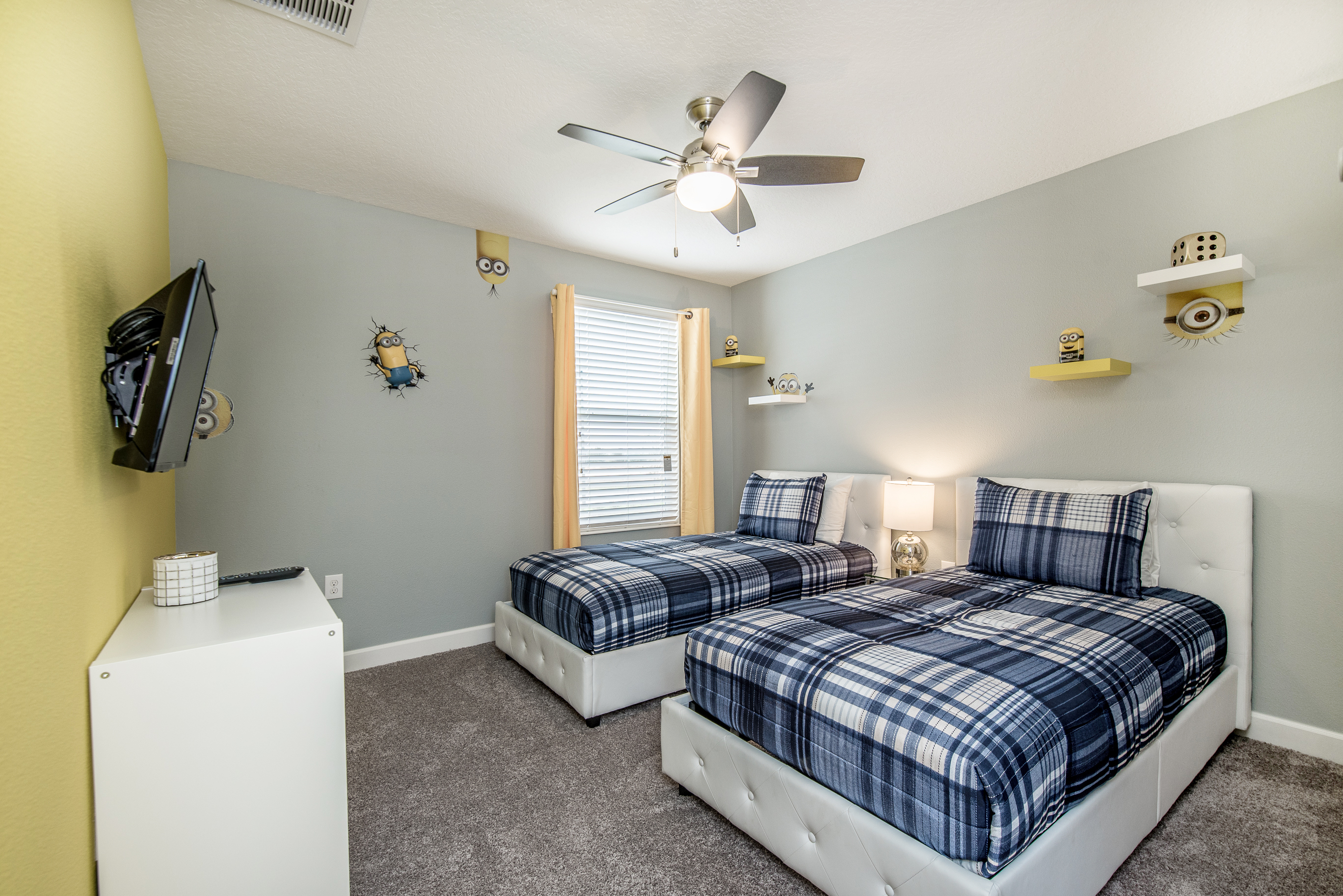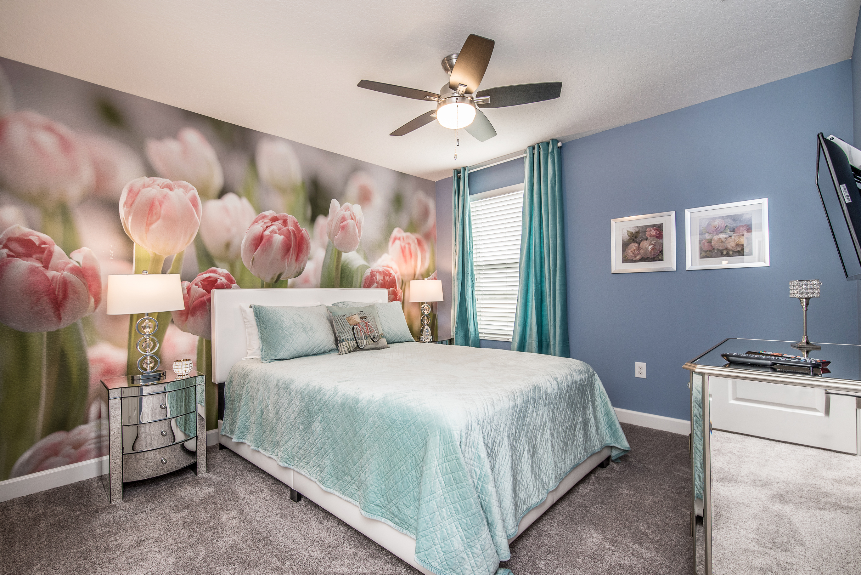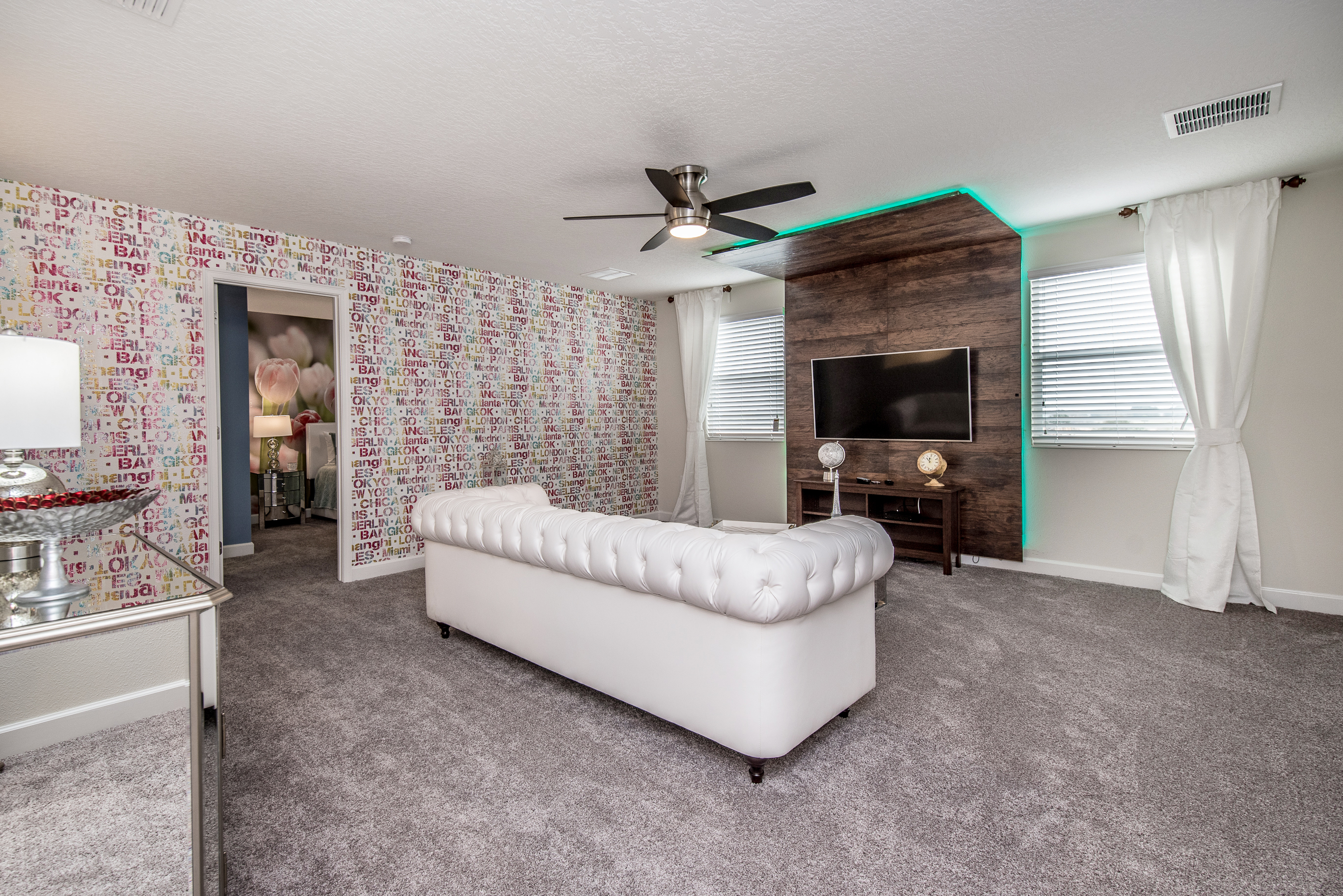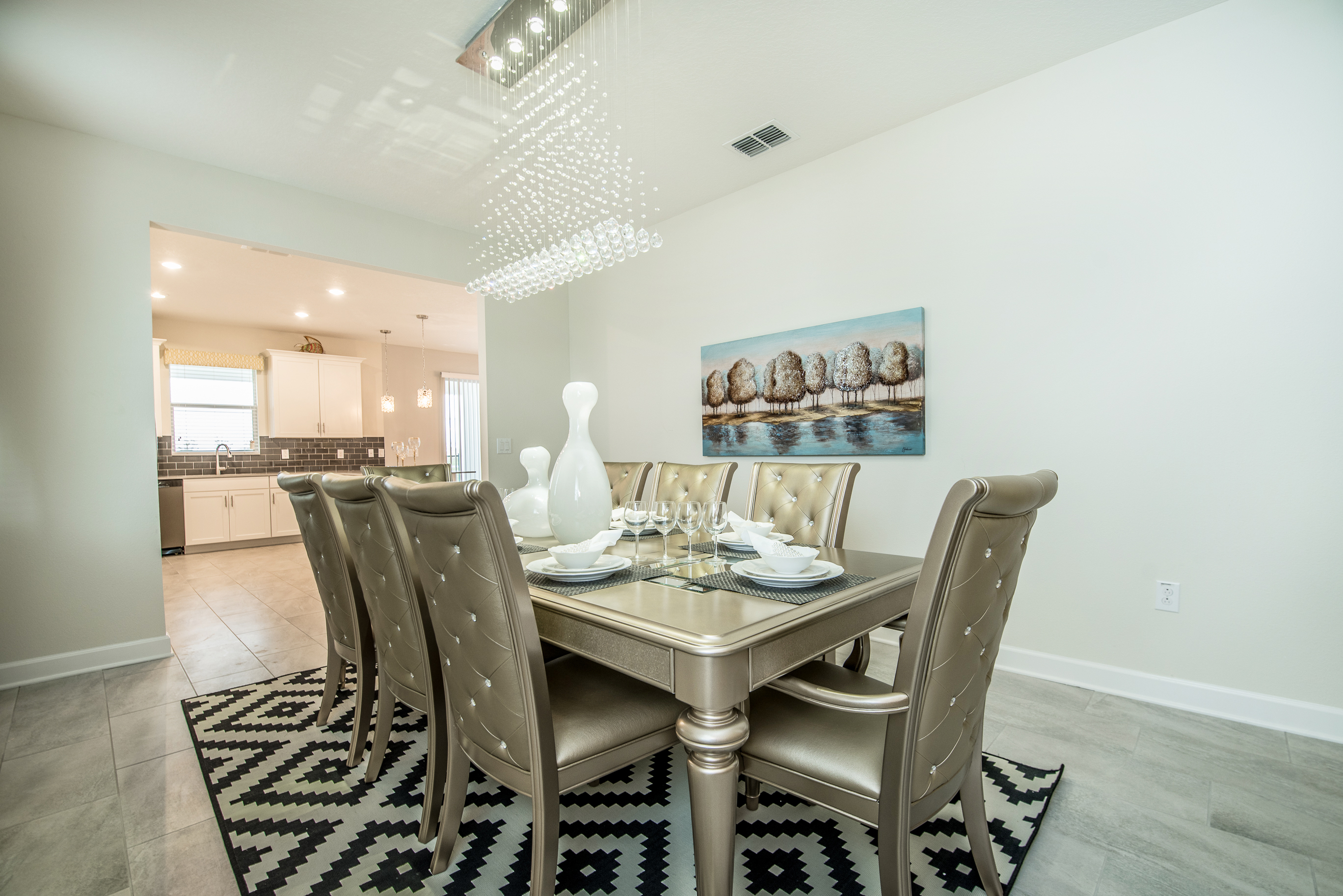 You will feel immediately relaxed as you enter our 6 bedroom, 5 bathroom executive home which sleeps up to 12 in style. We have paid great attention to every detail when we furnished this home and we hope you will enjoy it as much as we do with our own family. With 2 king bedrooms, 2 queen bedroom 2 twins rooms , there is plenty of room for everyone to spread out and relax after a day out or just to stay in and take it easy. Each room has a different feel so all guests should be equally happy with their room, and all have wall mounted flat screen LED Tv’s. The dining room and living area offers plenty of space to congregate and enjoy meals together, and the bright and airy kitchen has all the appliances that you would expect in your own home. (There is also a full-size washer and dryer). You can also enjoy a game of pool in the game room, or watch a movie in the huge loft area, or leave the kids to play on the PlayStation. Or why not take a dip in the large pool or relax in the spa, even in the evening as the pool area is south facing? This home will bring all the excitement of Orlando to you, and have the entire group talking about your trip for months to come.