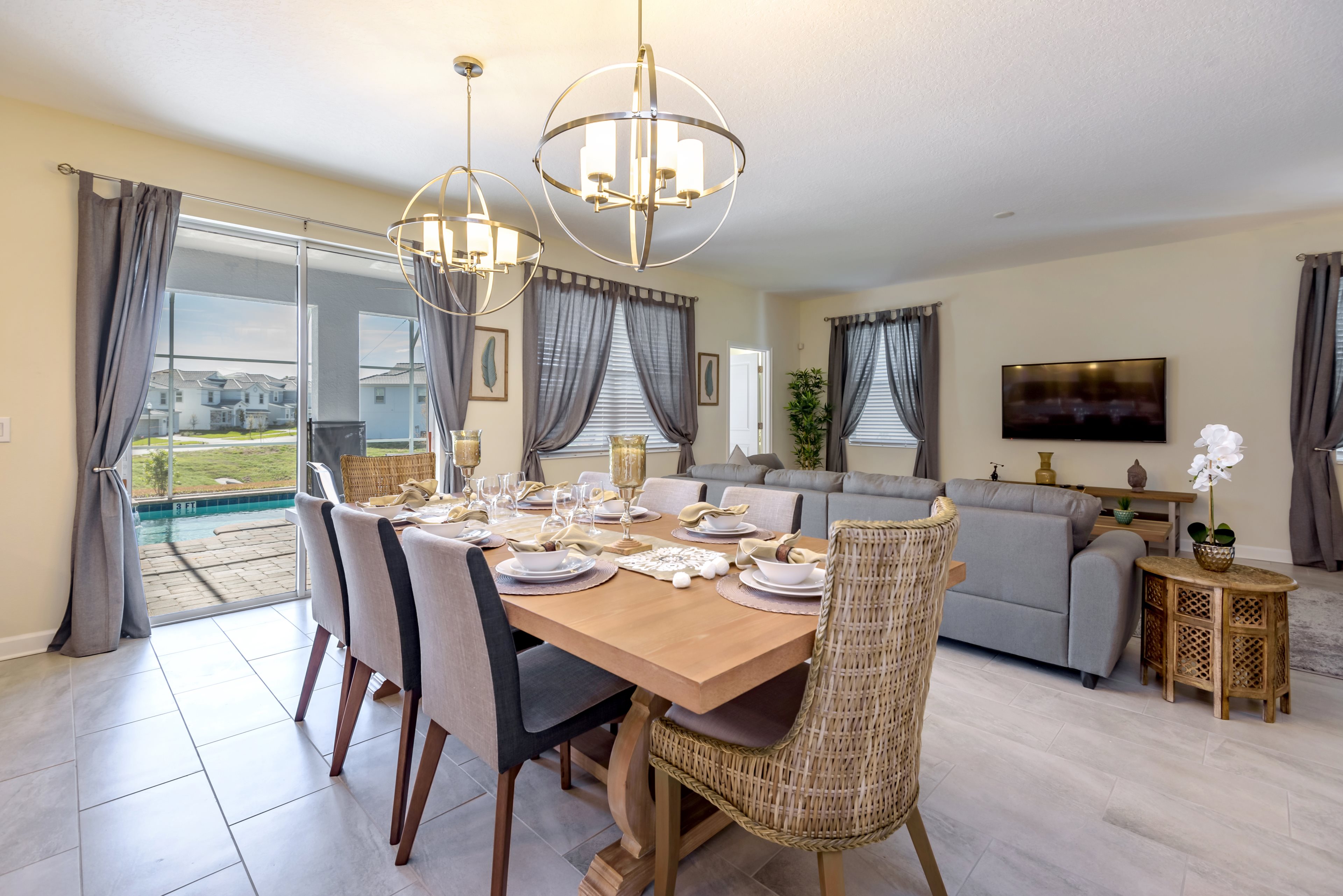 This spacious 6 bedroom, 6 bath pool home offers luxurious and spacious living for families visiting the Orlando area theme parks - it's only a short, 8 mile drive away from Mickey and all his friends, located on the fabulous ChampionsGate Resort.