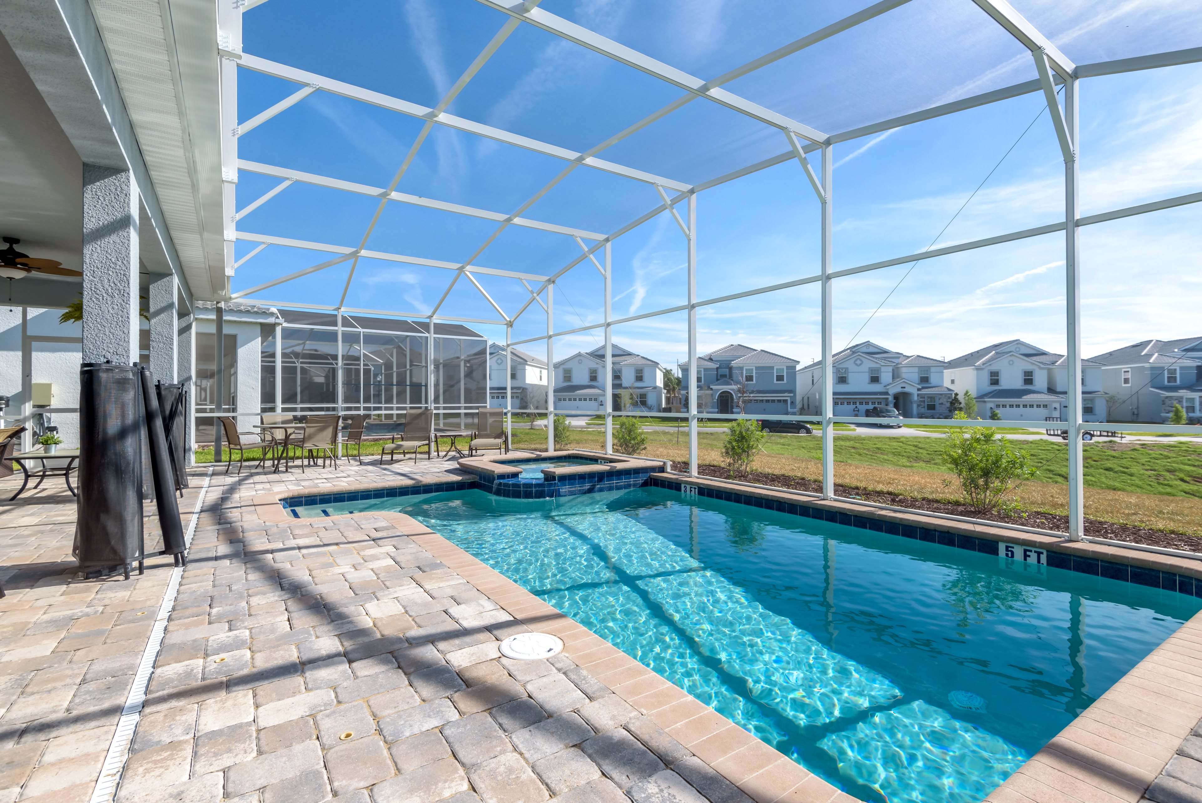 Spend days relaxing on vacation alongside the sparkling clear pool, or step inside to cool down in this fully air-conditioned family vacation home - with games room! Make memories with your family to last a lifetime without breaking the bank!