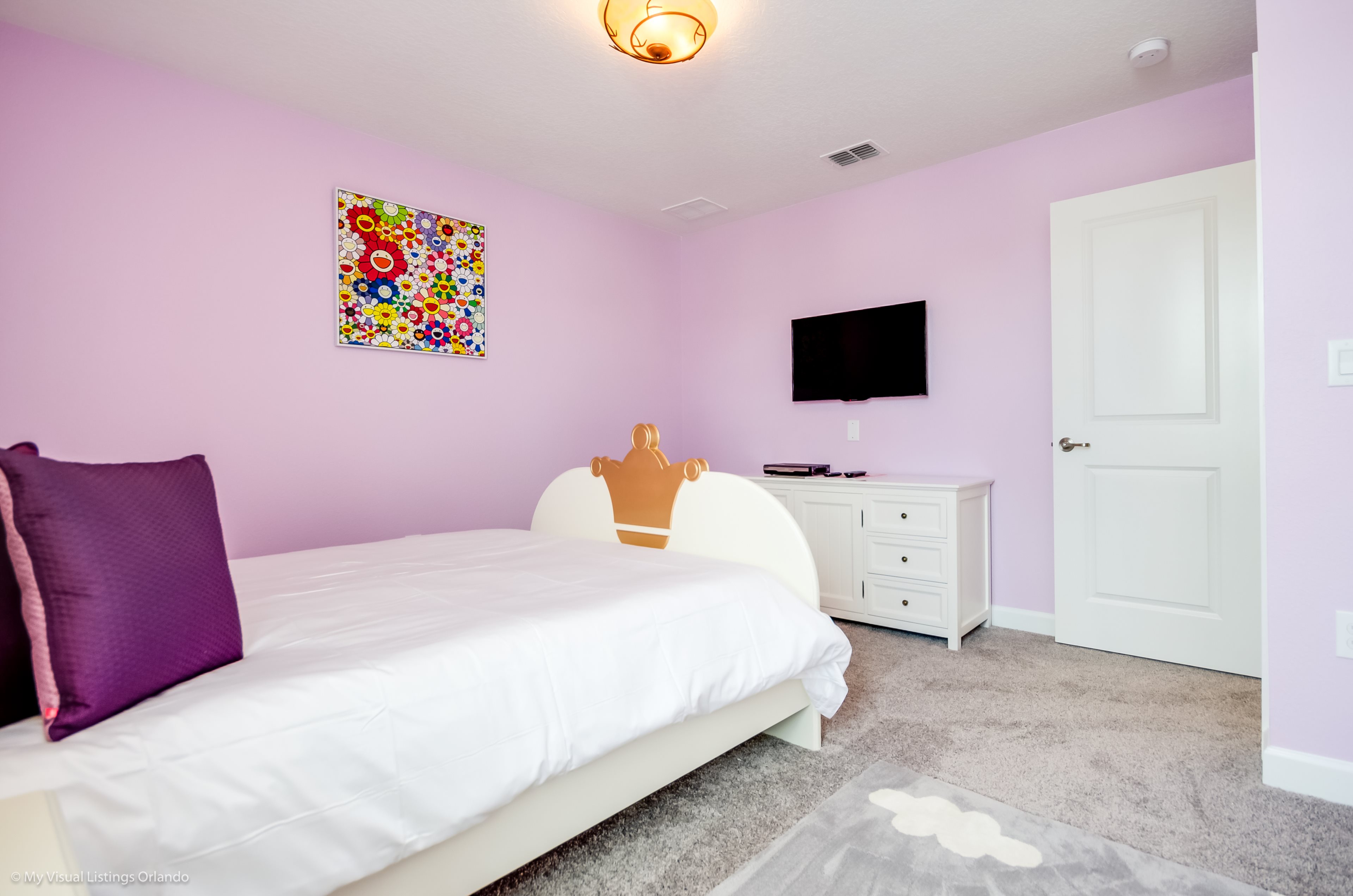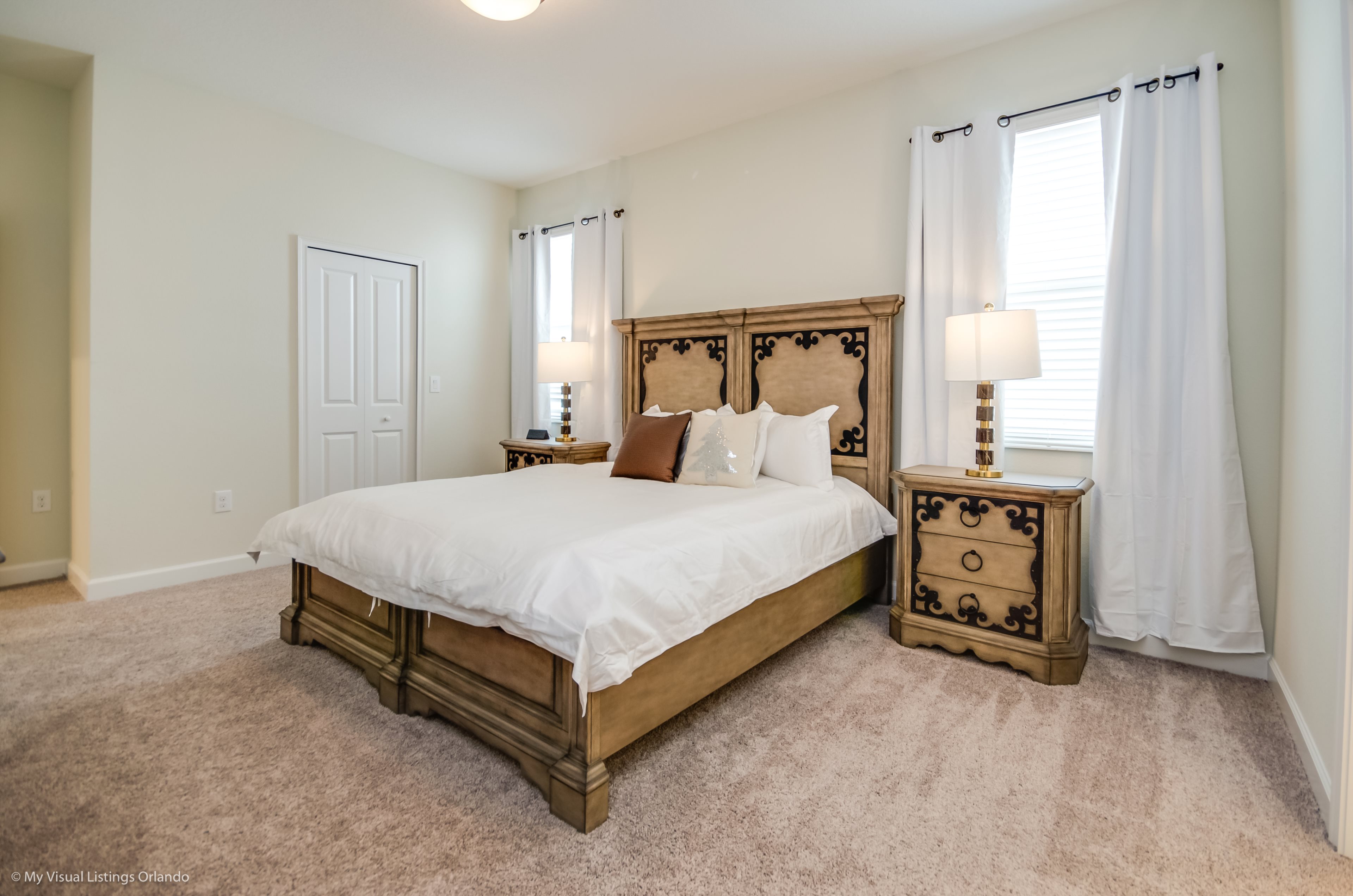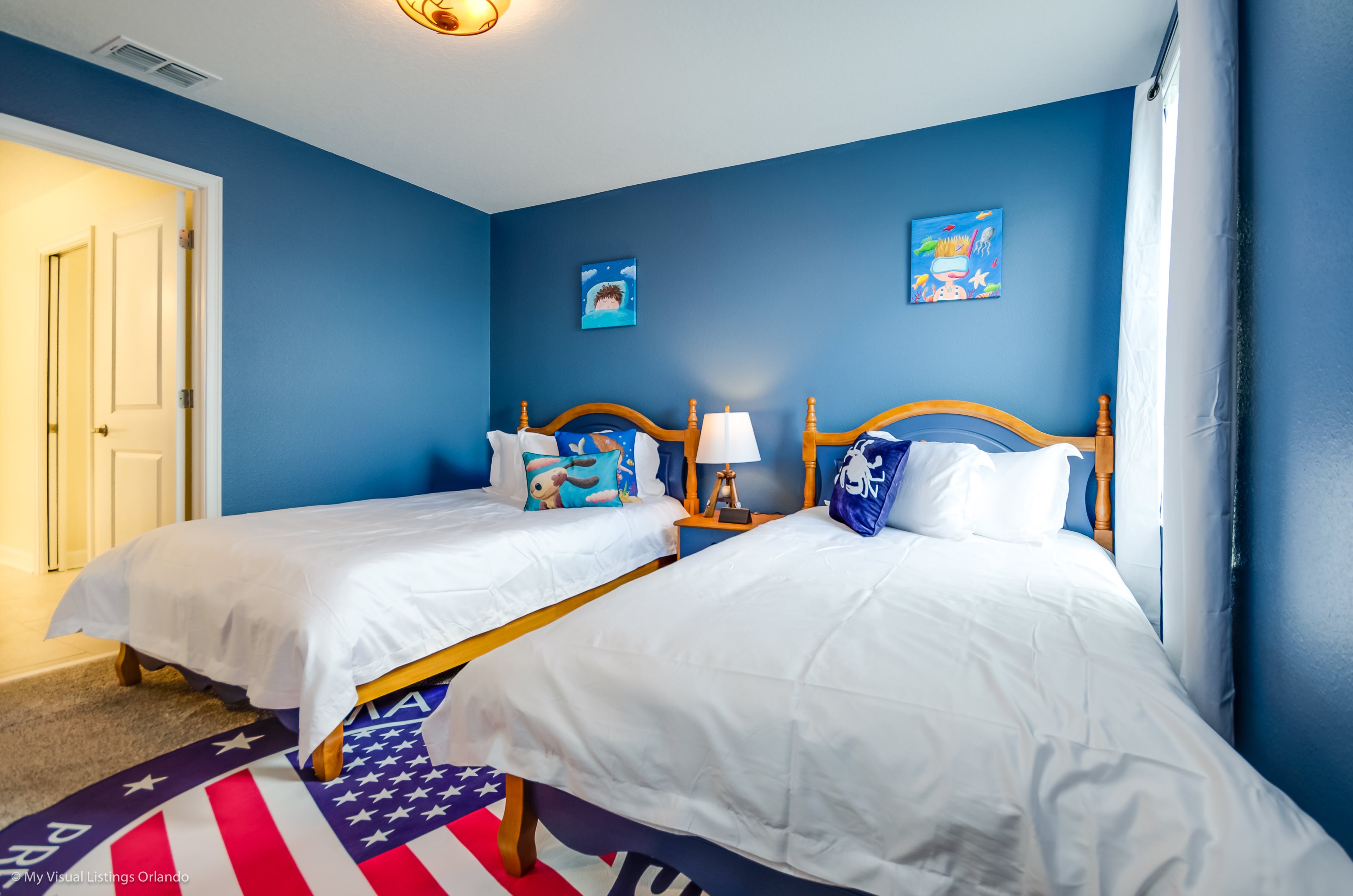 You will feel immediately relaxed as you enter our 8 bedroom, 5 bathroom executive home which sleeps up to 16 in style. We have paid great attention to every detail when we furnished this home and we hope you will enjoy it as much as we do with our own family. With 4 king bedrooms, 2 Queen and 2 Bedrooms with 2 twins beds , there is plenty of room for everyone to spread out and relax after a day out or just to stay in and take it easy. Each room has a different feel so all guests should be equally happy with their room, and all have wall mounted flat screen LED Tv’s. The dining room and living area offers plenty of space to congregate and enjoy meals together, and the bright and airy kitchen has all the appliances that you would expect in your own home. (There is also a full-size washer and dryer). You can also enjoy a game of pool in the game room, or watch a movie in the huge loft area, or leave the kids to play on the PlayStation. Or why not take a dip in the large pool or relax in the spa, even in the evening as the pool area is south facing? This home will bring all the excitement of Orlando to you, and have the entire group talking about your trip for months to come.