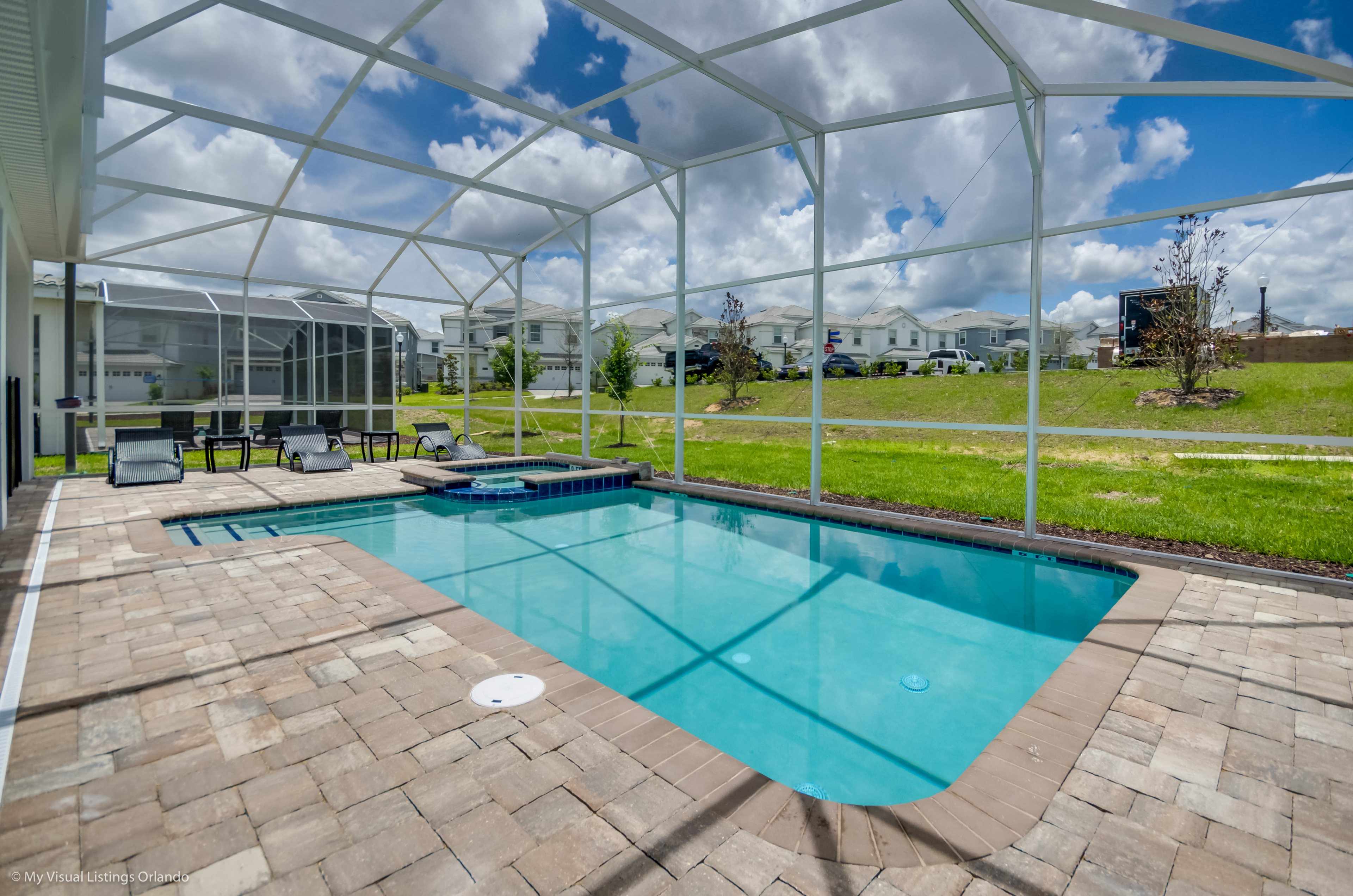 We invite you to enjoy our wonderful home on your next trip to Orlando. Absolutely perfect for multi-family groups, or golf groups, this property features all the comforts of home and more! Book your vacation now at this beautiful home with pool and spa.