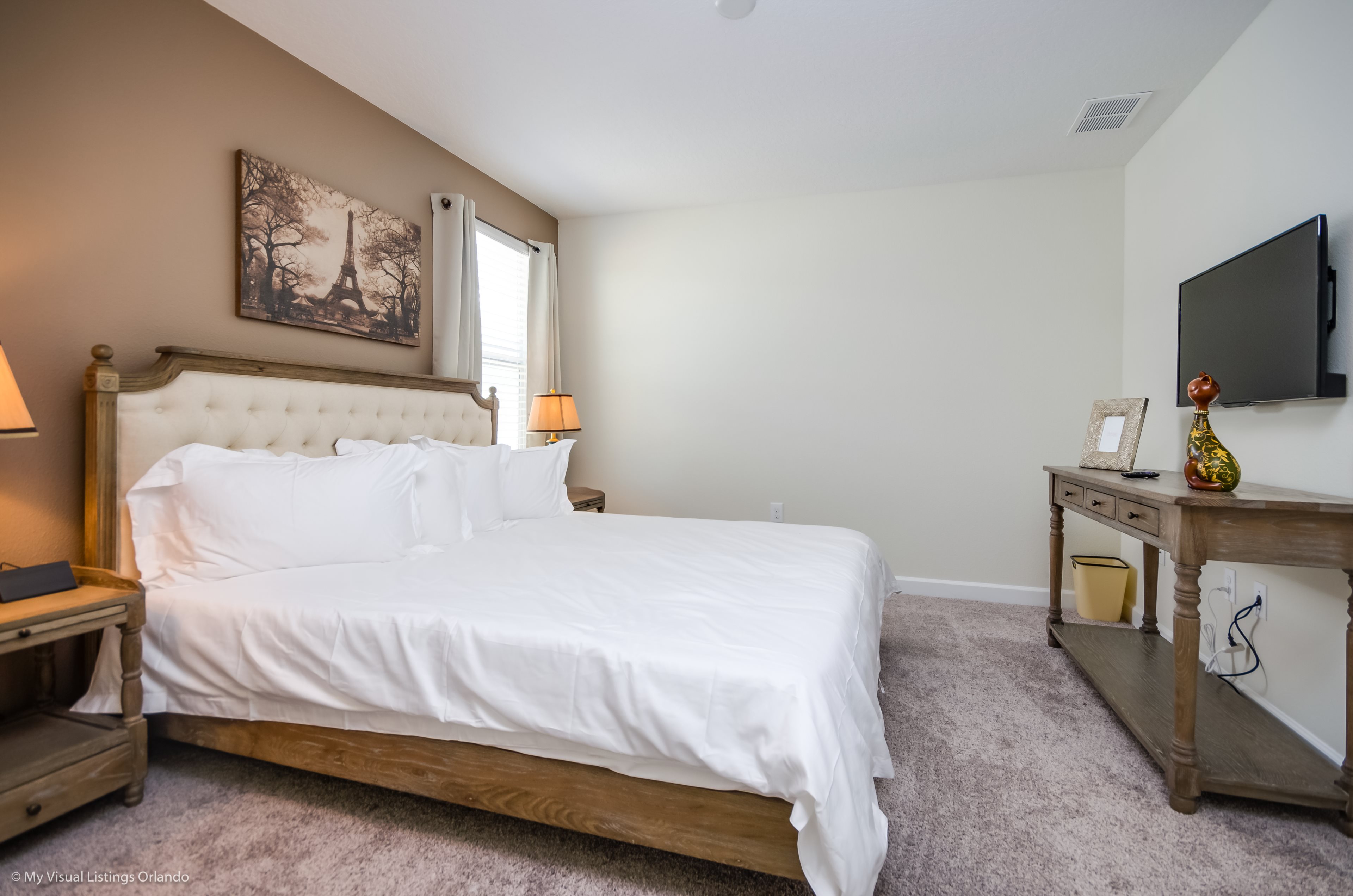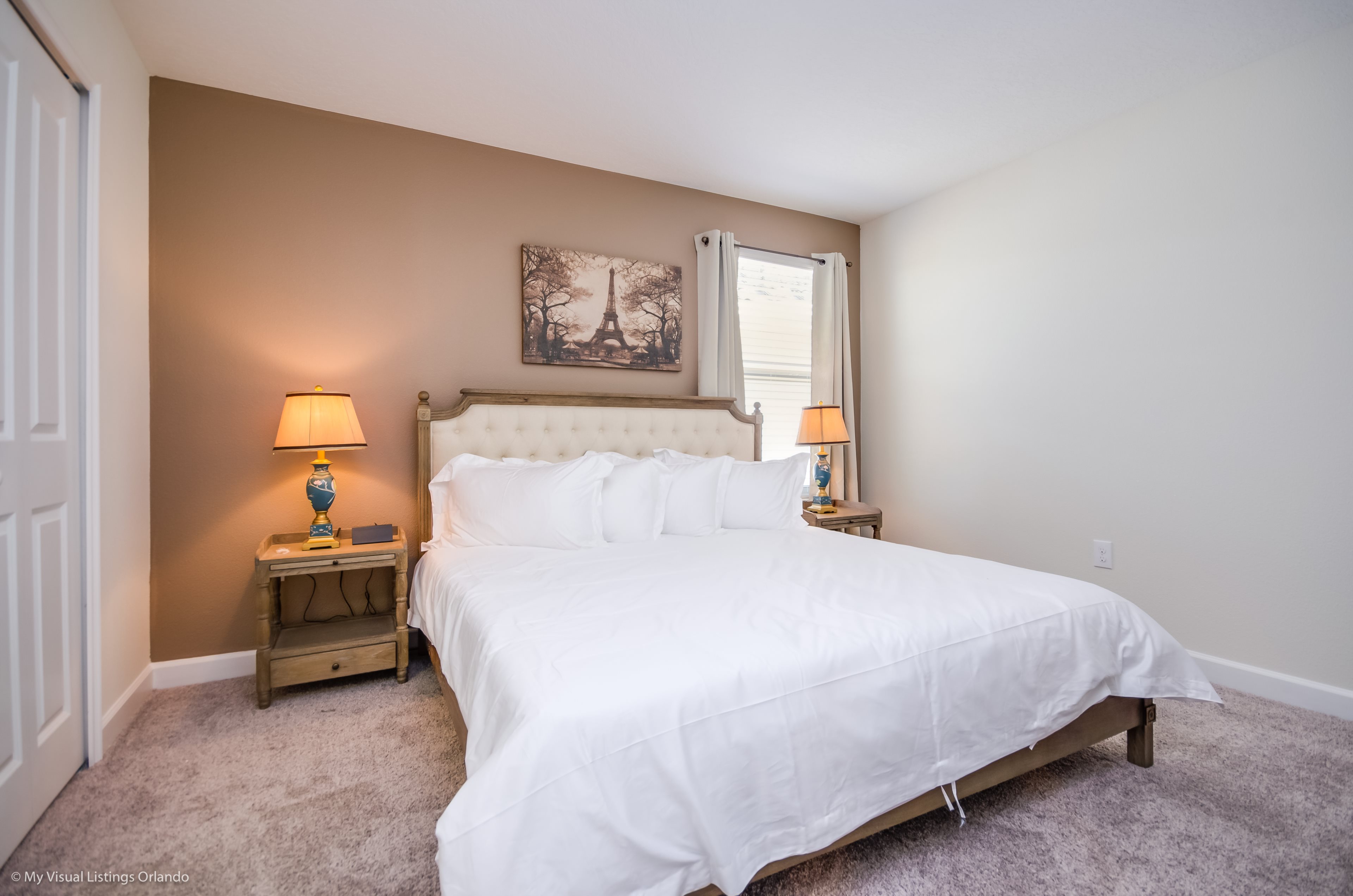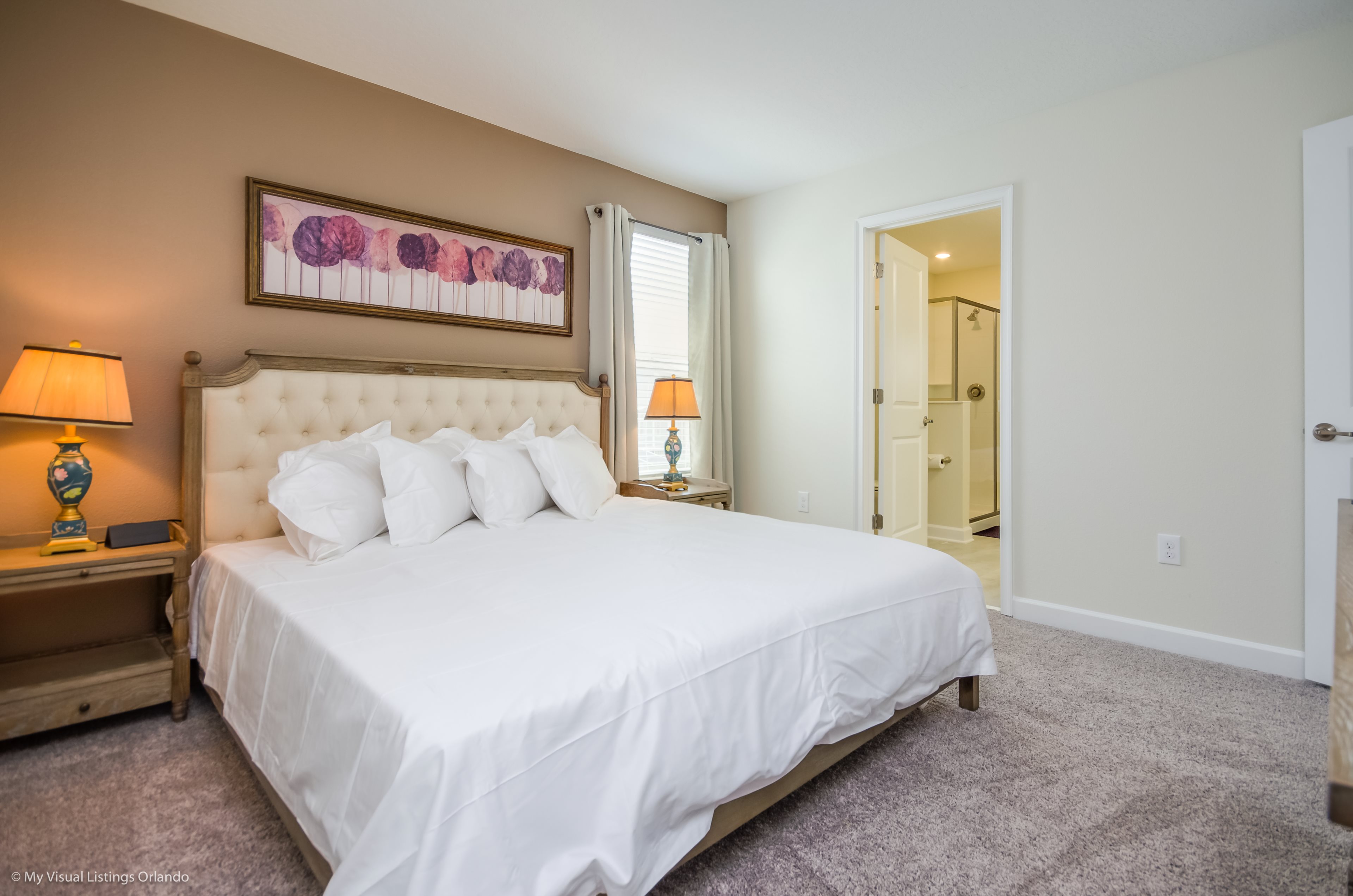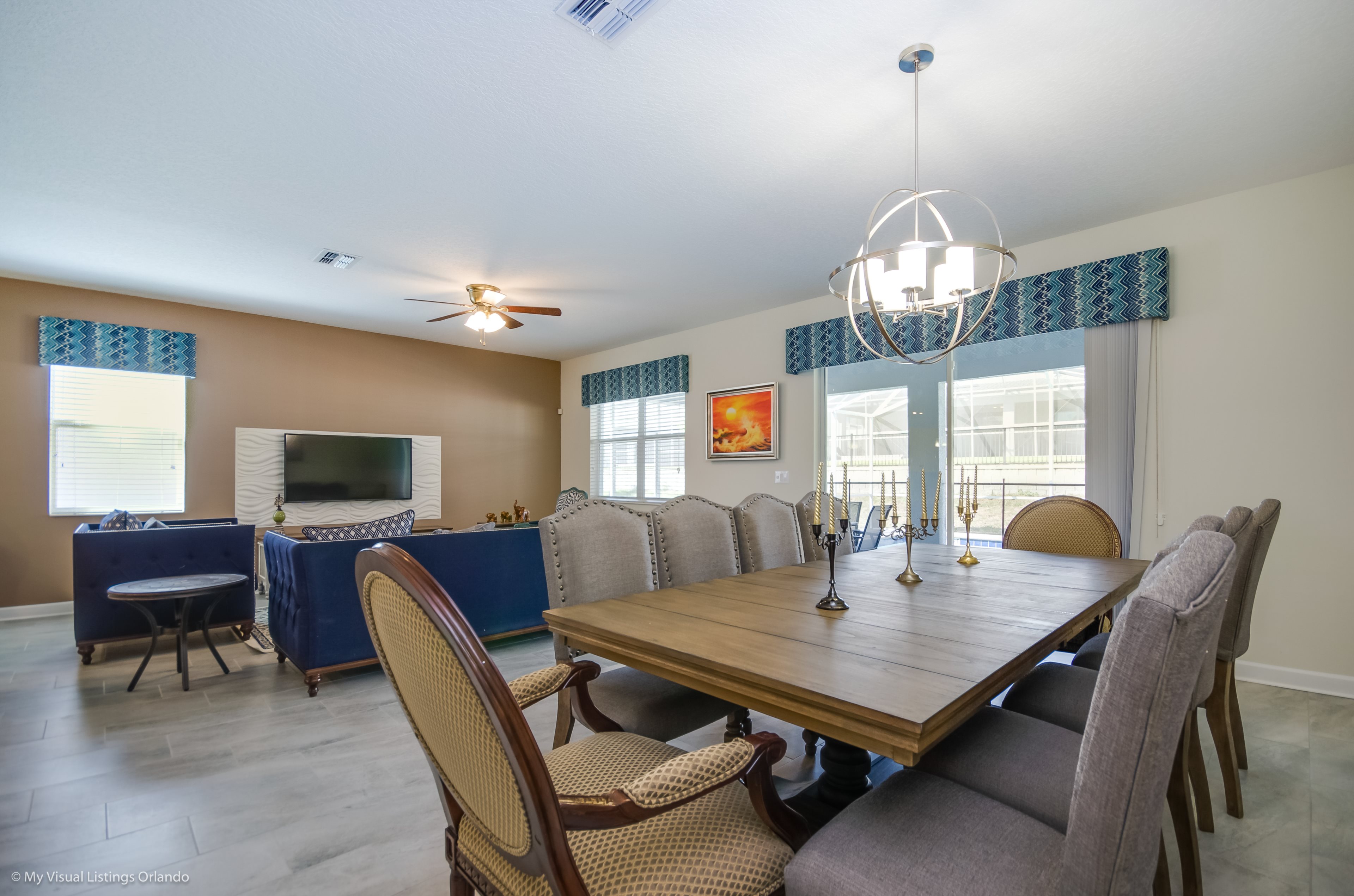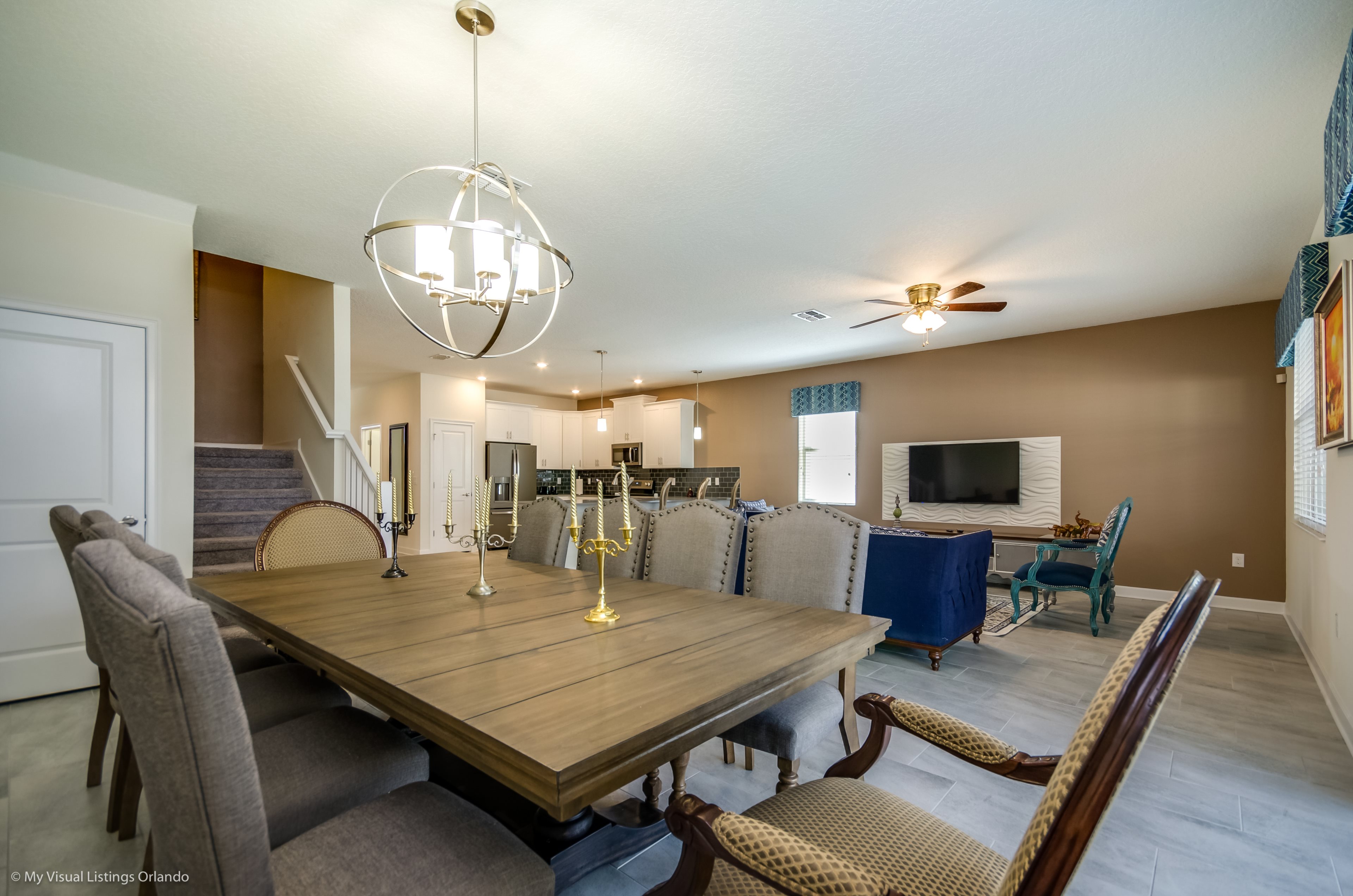 You will feel immediately relaxed as you enter our 8 bedroom, 5 bathroom executive home which sleeps up to 16 in style. We have paid great attention to every detail when we furnished this home and we hope you will enjoy it as much as we do with our own family. With 4 king bedrooms, 2 Queen and 2 Bedrooms with 2 twins beds , there is plenty of room for everyone to spread out and relax after a day out or just to stay in and take it easy. Each room has a different feel so all guests should be equally happy with their room, and all have wall mounted flat screen LED Tv’s. The dining room and living area offers plenty of space to congregate and enjoy meals together, and the bright and airy kitchen has all the appliances that you would expect in your own home. (There is also a full-size washer and dryer). You can also enjoy a game of pool in the game room, or watch a movie in the huge loft area, or leave the kids to play on the PlayStation. Or why not take a dip in the large pool or relax in the spa, even in the evening as the pool area is south facing? This home will bring all the excitement of Orlando to you, and have the entire group talking about your trip for months to come.